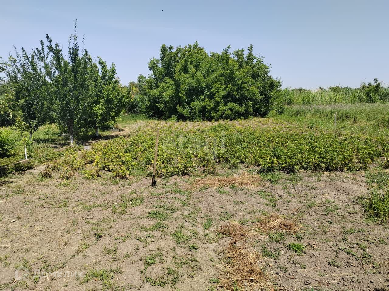 На участке растет картошка, в конце участка растет орех. Хорошая почва для садоводства и выращивание овощных культур!