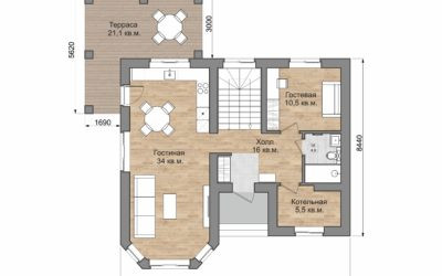 - гостевую комнату и террасу - 21,1 кв.м.