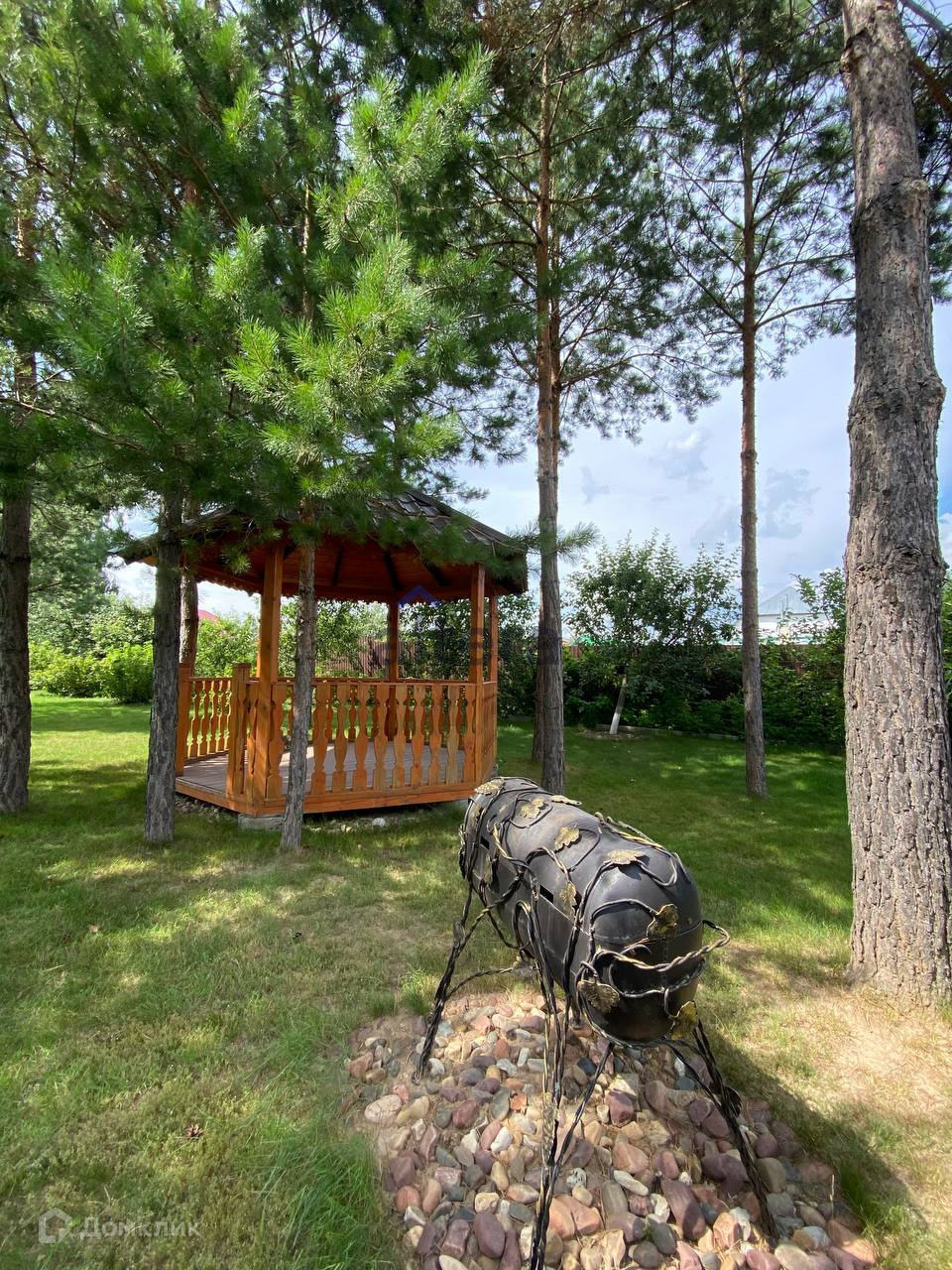 На территории беседка: зона барбекю и пространство для отдыха, пристроенный гараж с автоматическими воротами.