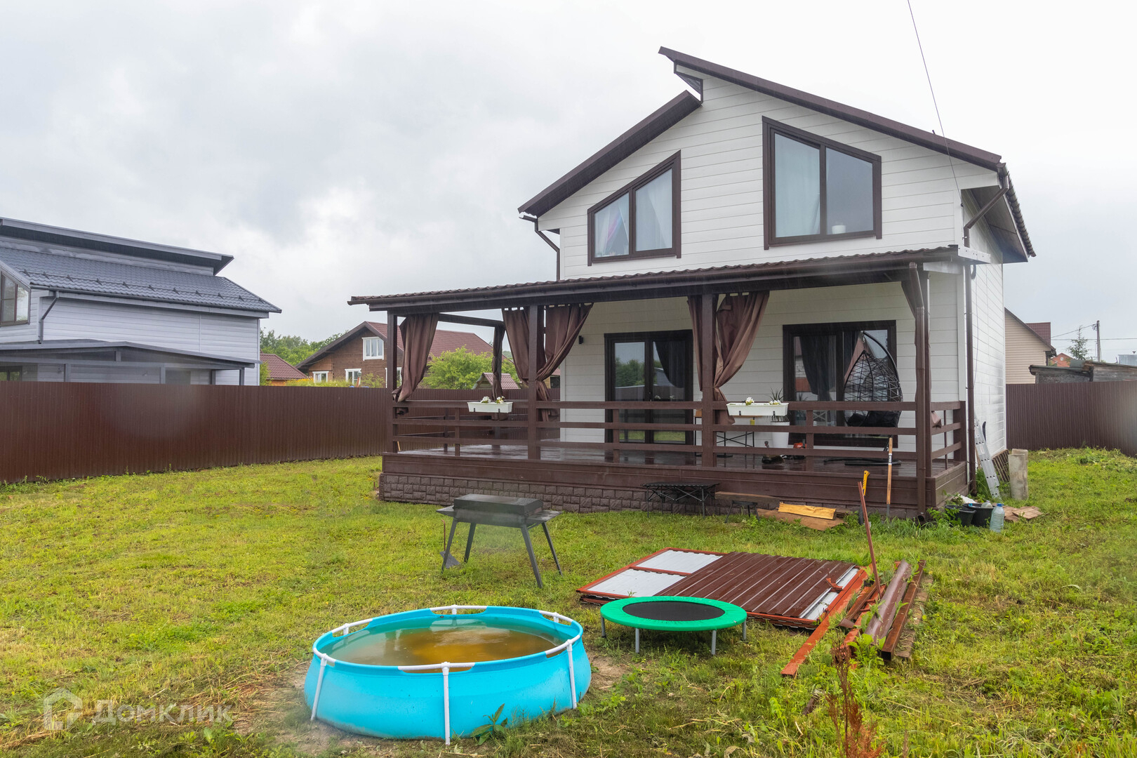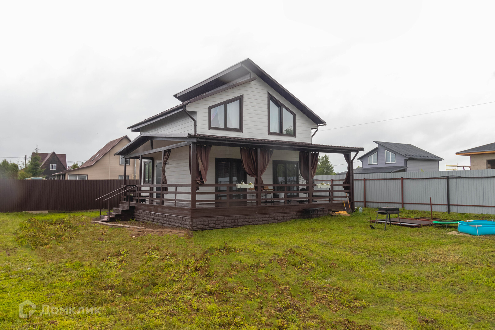 Дом построен по каркасной технологии с использованием качественных материалов, обработан огнеобиозащитой.