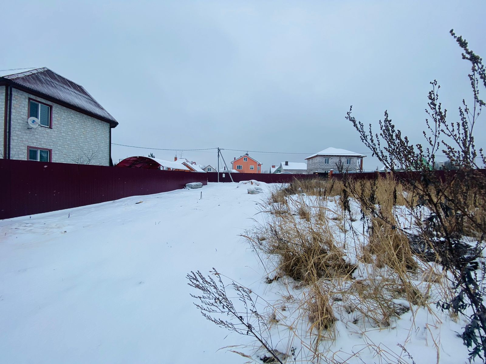 Коммуникации: электричество и газ по границе участка. Ночью улицы освещены. Зимой дороги чистят. В д. Пешково есть сетевые и фермерские магазины, заправка.