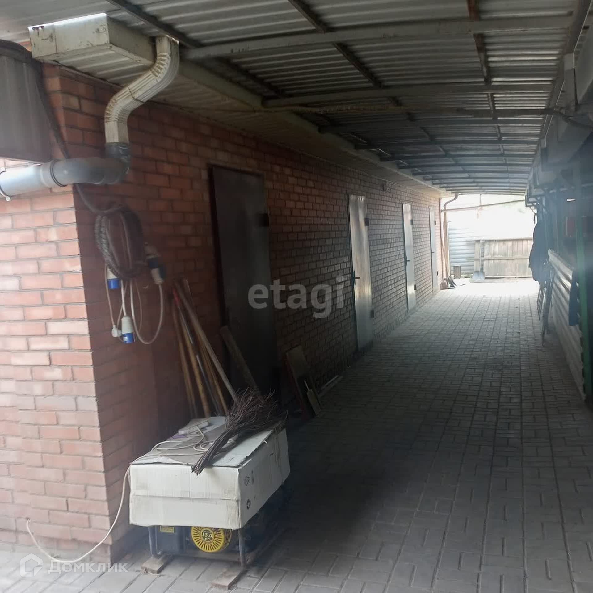 гараж кирпичный , есть подсобные помещения , кирпичный туалет на улице, коптильня так же из кирпича, вольер с крышей забетонирован.
