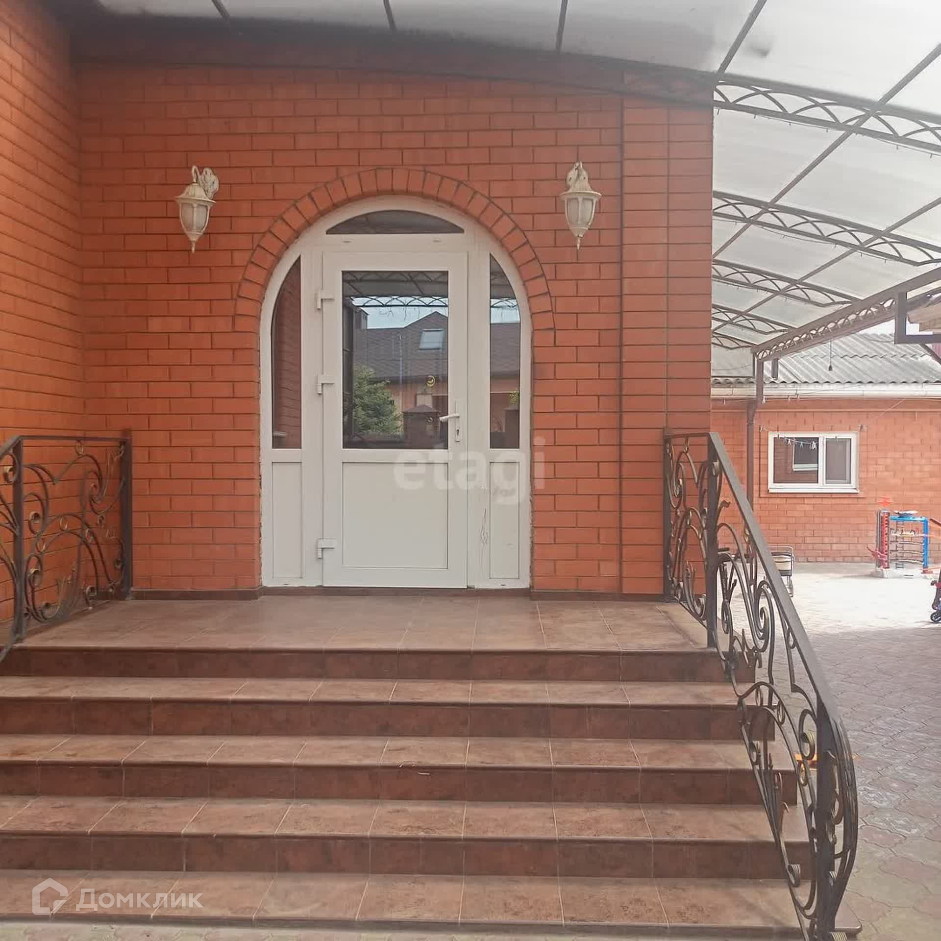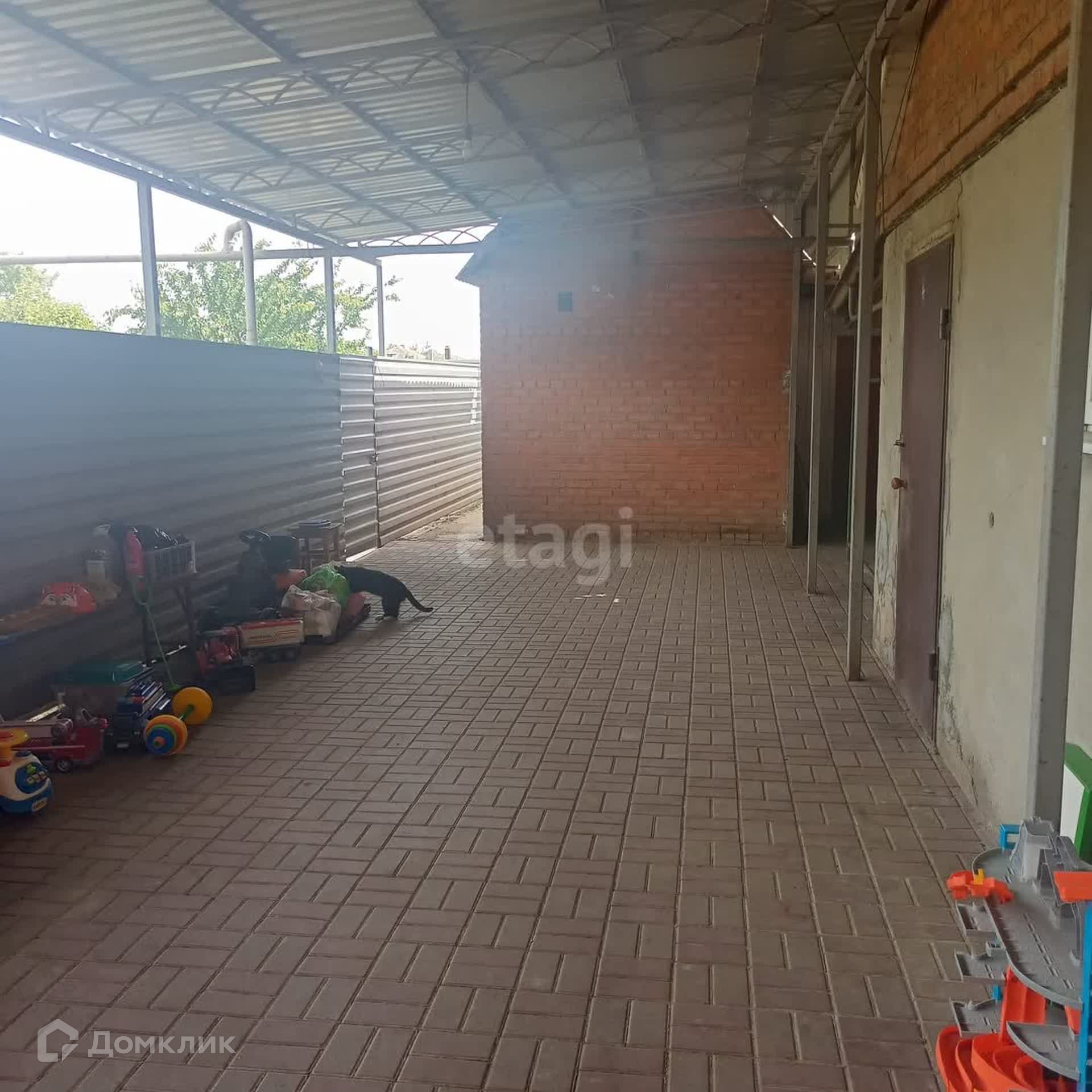 Весь двор и хоз постройки накрыты навесами поликарбонатом с фасада и металлопрофиль остальное. Двор уложен тротуарной плиткой и хоз двор тоже, есть скважина для полива и для животных.