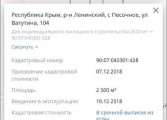 Продается земельный участок 15 соток с. Песочное ул. Кирова. До моря 1,5 км. Рядом продается участок 15 соток - можно объединить. кад номера участков 90:07:040301:345, 90:07:040301:362. |