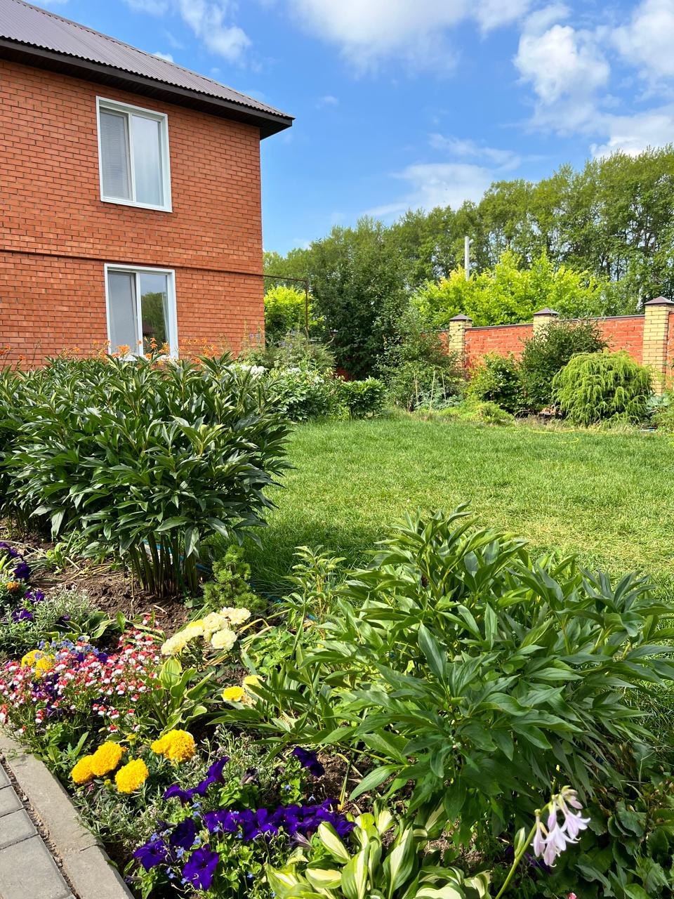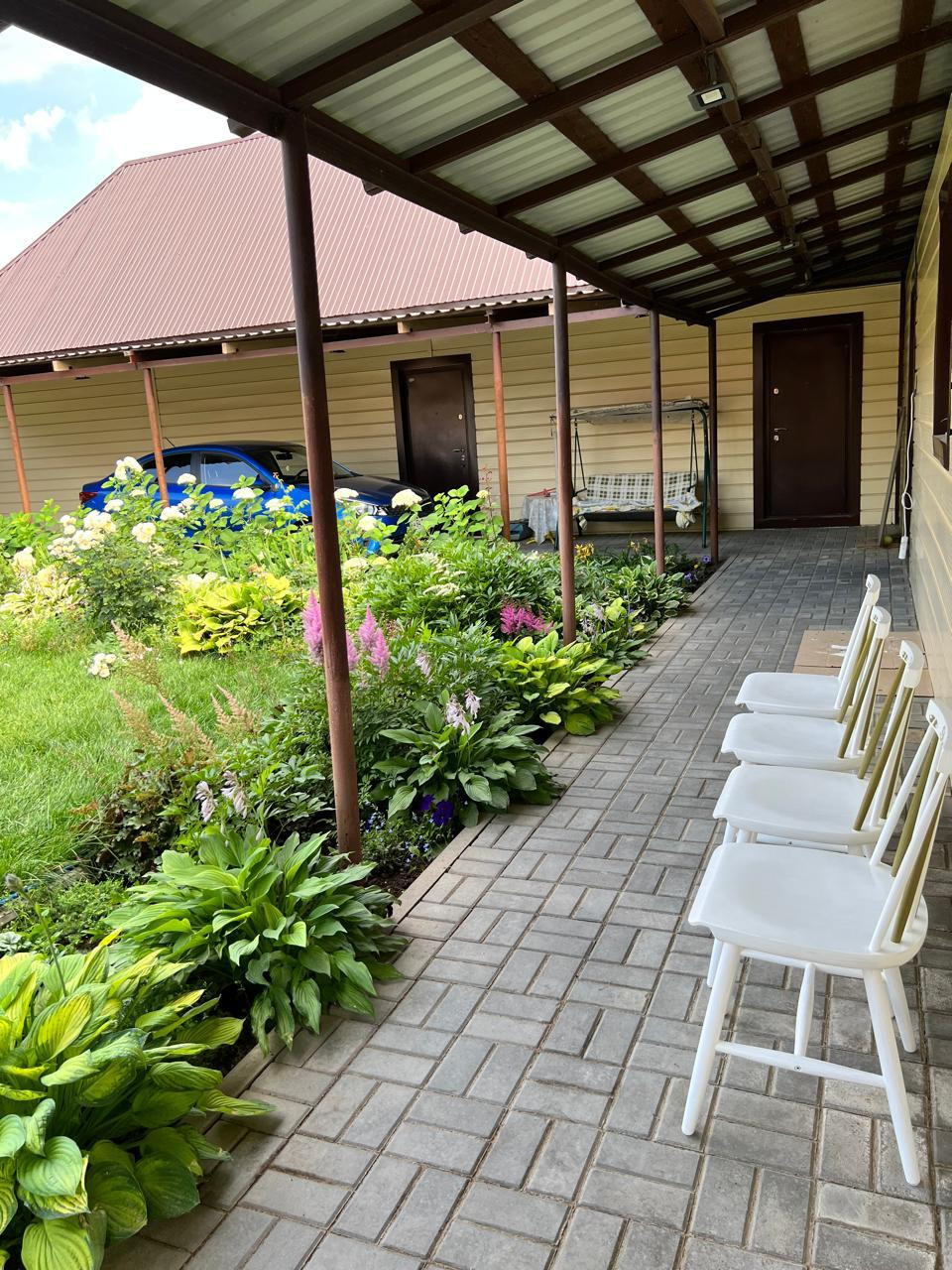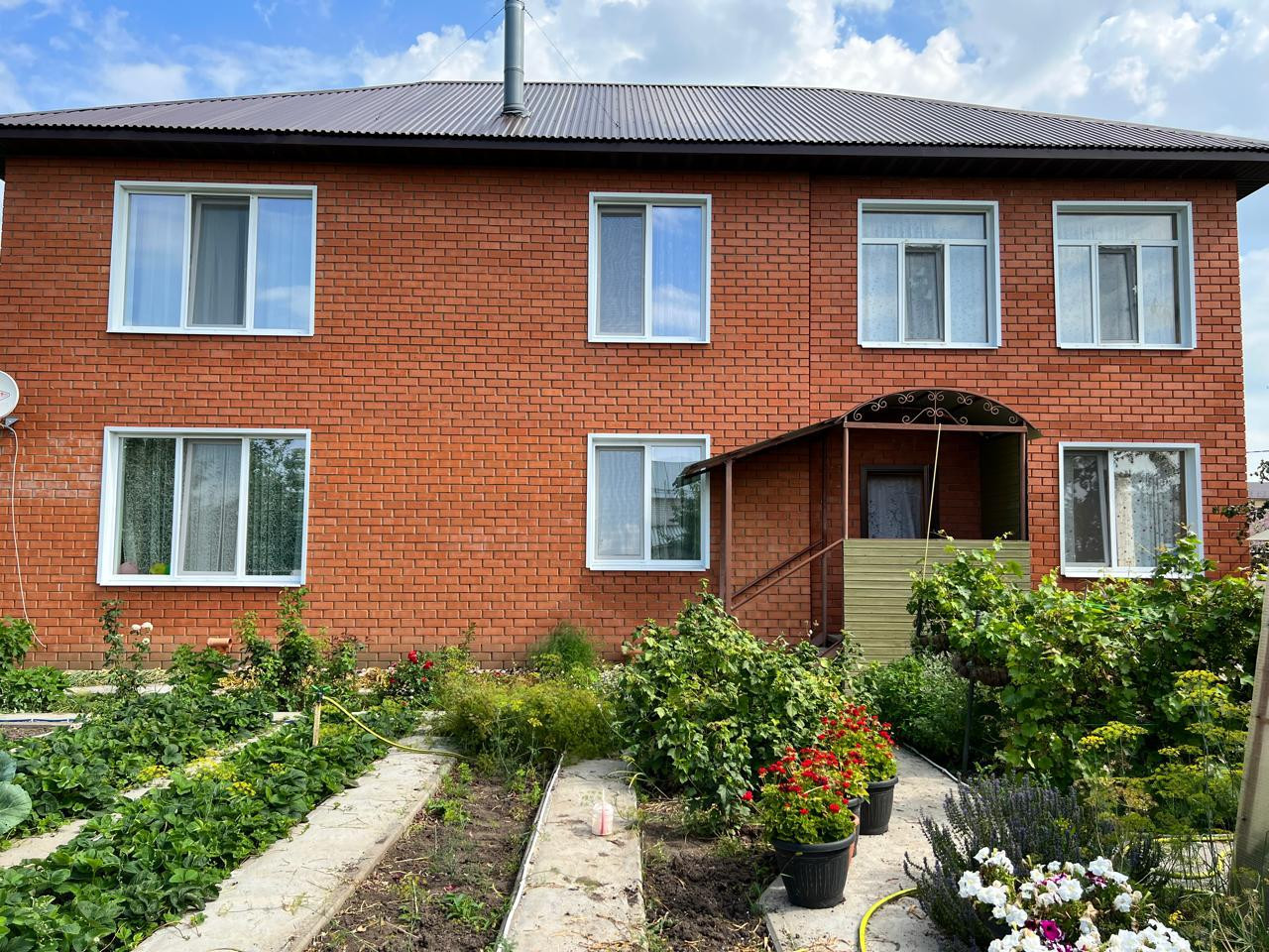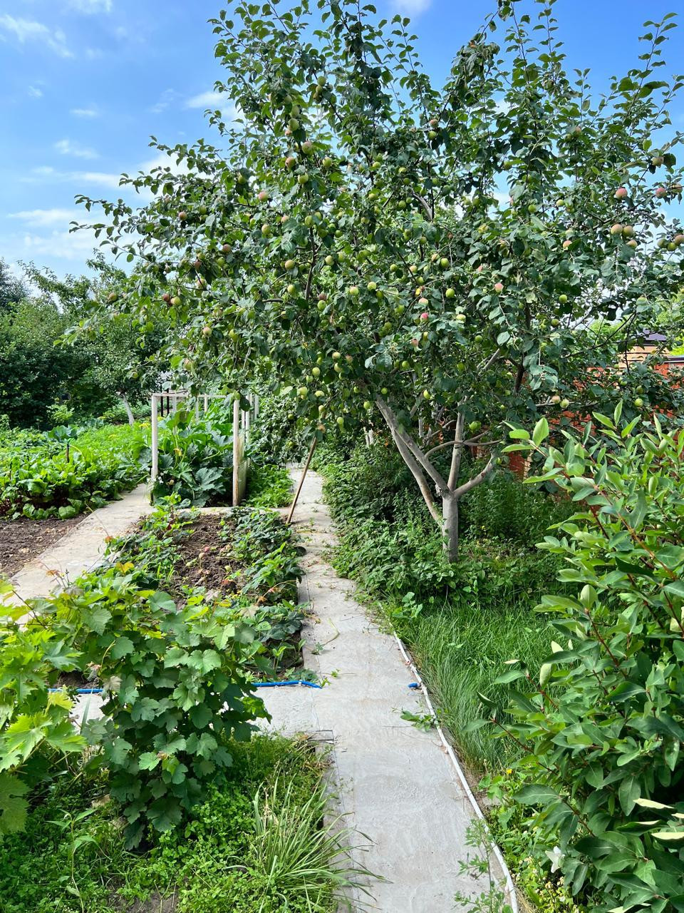 С одной стороны дома ухоженные грядки. Выращивая разнообразные овощи ,Вы можете радовать продуктами с грядки, своих родных и близких. Очень много плодоносящих деревьев и кустарников.