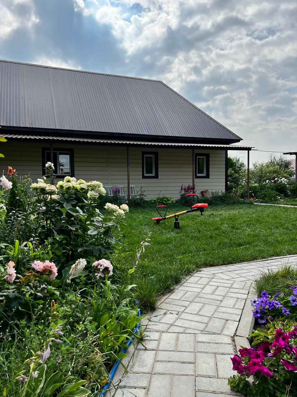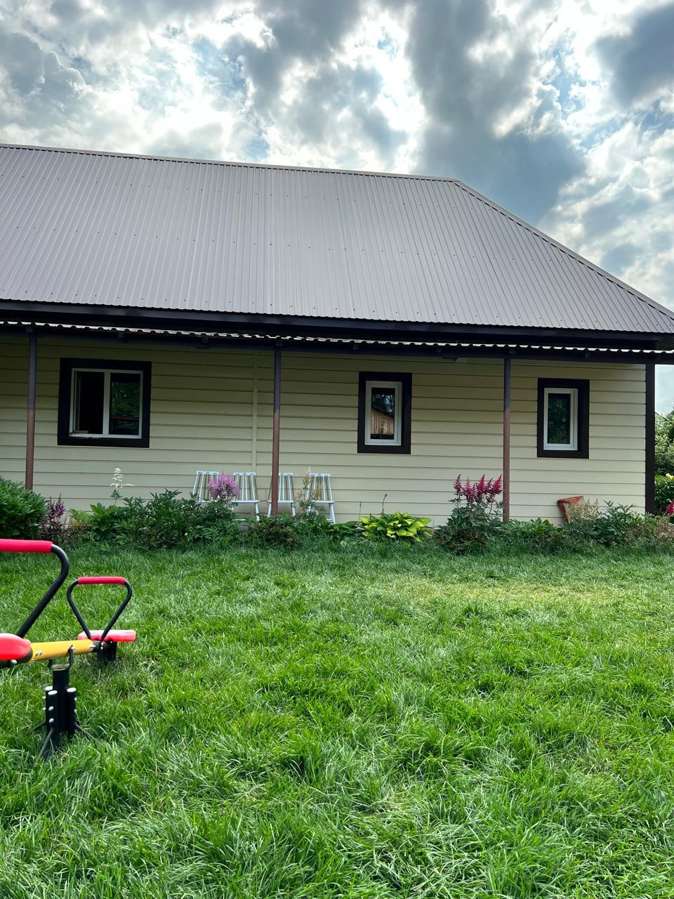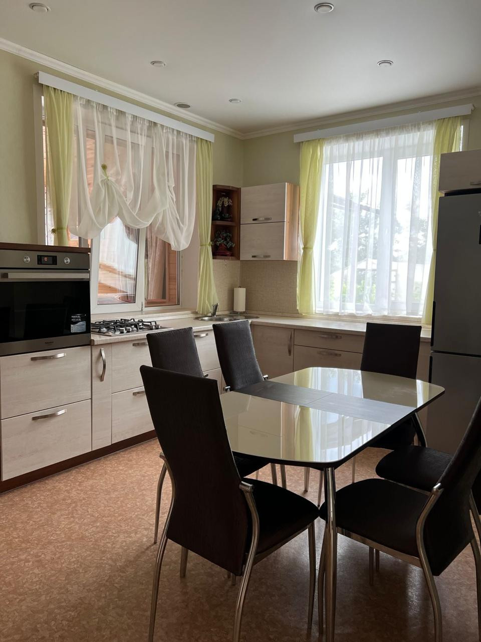 Продается уютный дом  для большой семьи в красивом экологически чистом районе. Еще даже не заходя в ворота этого удивительного дома вы понимаете, что попали в райский уголок. Вдоль большого кирпичного забора растет декоративная сирень с пышными тяжелыми гроздьями, орешники, которые плодоносят, каштаны, елочки, обрамляют дом с разных сторон. И вот мы заходим в красивые ворота и действительно оказываемся в сказке! Множество цветов, зелени, все благоухает и цветет, начиная весной и заканчивая поздней осенью! Газонная трава так и манит снять обувь и побегать по ней наслаждаясь ее прохладой и мягкостью. Также здесь имеется детский домик для детей, а может и внуков. Большой просторный светлый дом с прекрасной аурой и доброй энергетикой. Дом был построен для себя, поэтому все продумано до мелочей. Просторный коридор ведет нас в большую уютную кухню, что очень важно для хозяйки. Также имеется большая закрытая веранда, где Вы можете проводить время в теплое время года, наслаждаясь вкусными завтраками, обедами и ужинами и любуясь прекрасными видами из окна. А в зимнее время Вы можете посидеть у настоящего камина и наслаждаться прекрасной атмосферой,  слушая потрескивание дров. На втором этаж ведет добротная деревянная лестница из дуба. Здесь Вы можете отдохнуть  в любой из трех спален и спокойно поработать в своем  кабинете. А из кабинета Вы попадаете на огромный панорамный балкон. Это просто удивительное зрелище, когда Вы любуетесь этими закатами и рассветами!