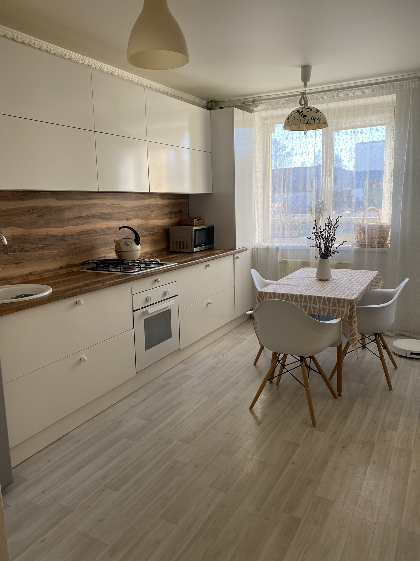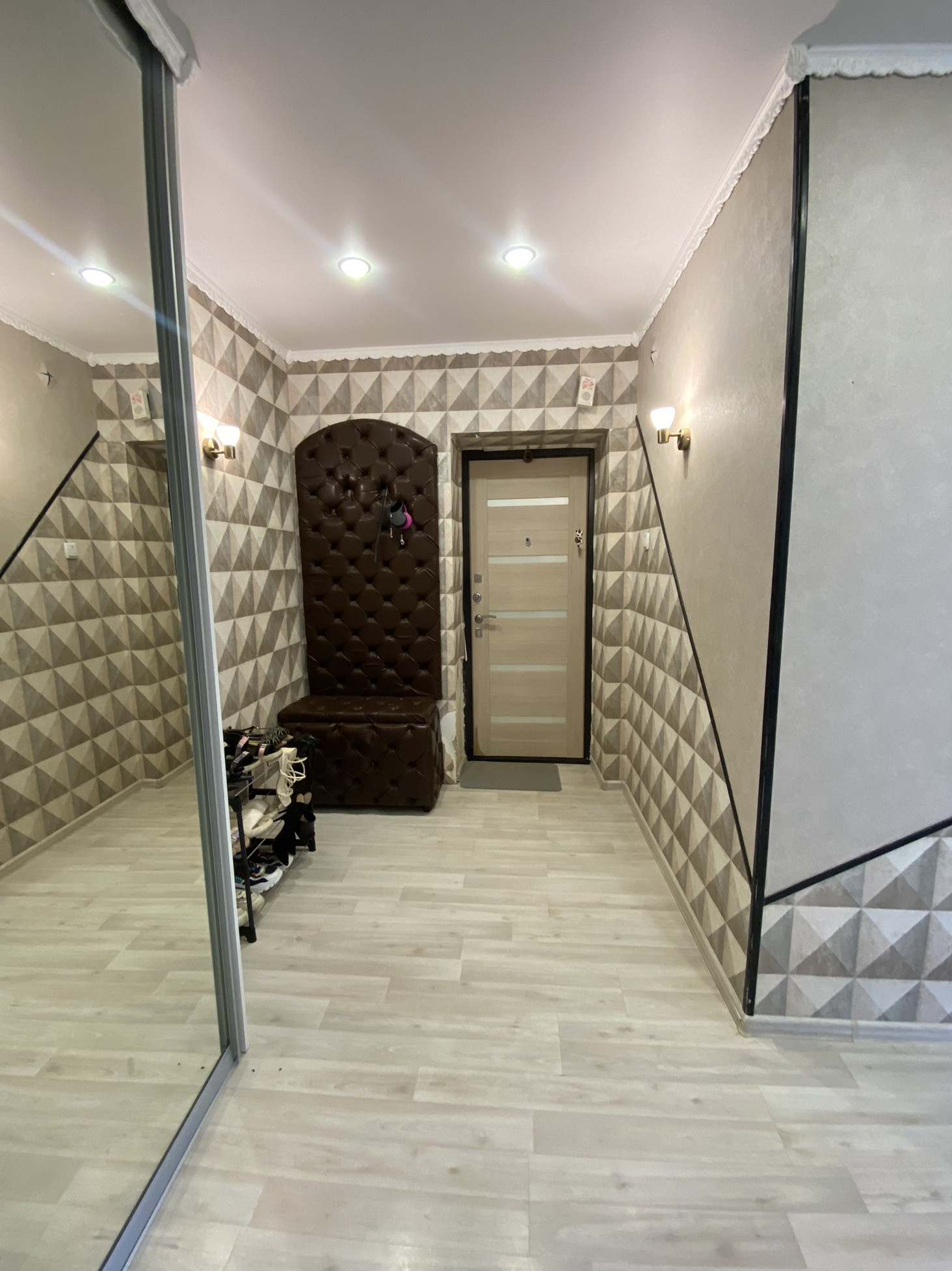 В квартире сделан ремонт, поклеины в этом году обои, на полу ламинат, в каждой комнате натяжные потолки, новый котел, в санузле стеновые панели ,новая акриловая ванная, замена входная дверь. Установлен новый кухонный гарнитур, остается после продажи. Также остается зеркальный шкаф-купе в прихожей.