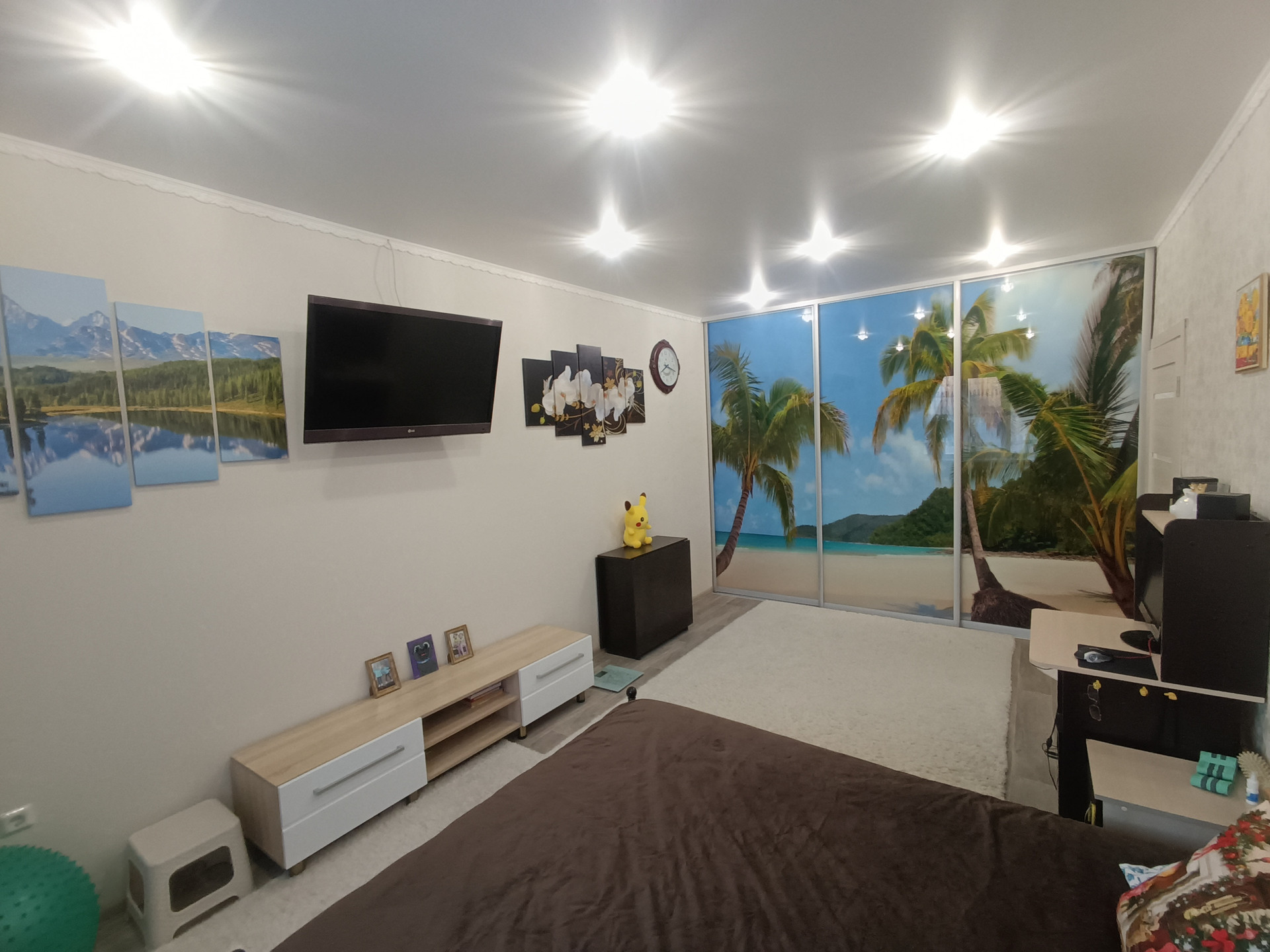 В квартире сделан шикарный дизайнерский ремонт. Установлены качественные входные и межкомнатные двери, пластиковые окна, газовый двухконтурный котел индивидуального отопления. На полах уложен дорогой линолеум, потолки натяжные. Стены украшены декоративными коллонами и натуральной гипсовой лепниной. Ванная комната в дорогом кафеле и с "теплым полом". Лоджия обшита деревом и оборудована встроенными шкафами для хранения повседневных вещей.