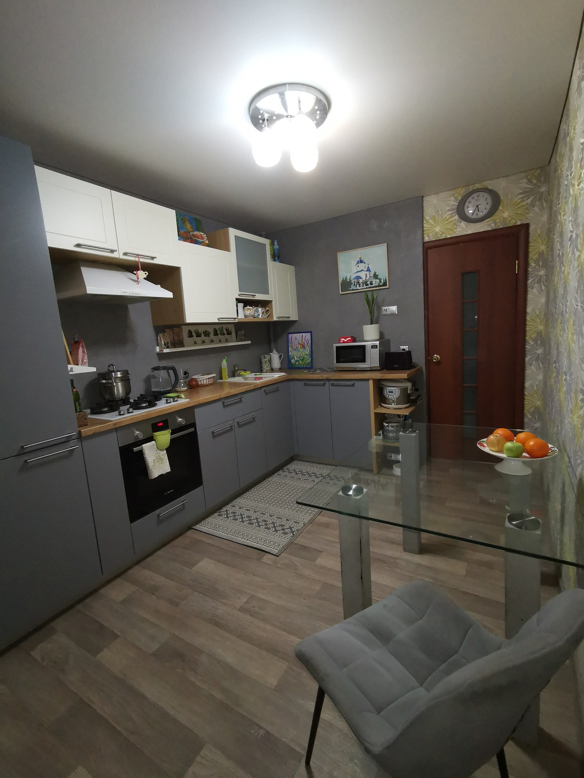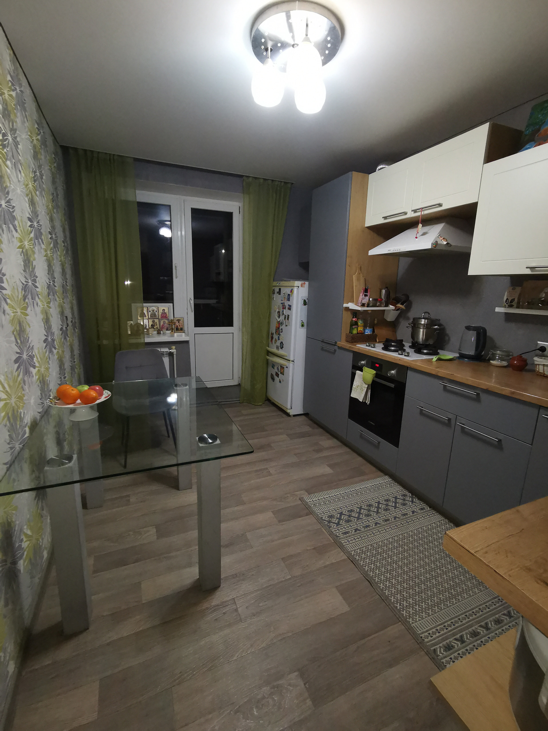 Большая кухня. Новым собственникам остается кухонный гарнитур и шкаф-купе в подарок. Кроме того, за квартирой закреплено место в подвале для хранения.