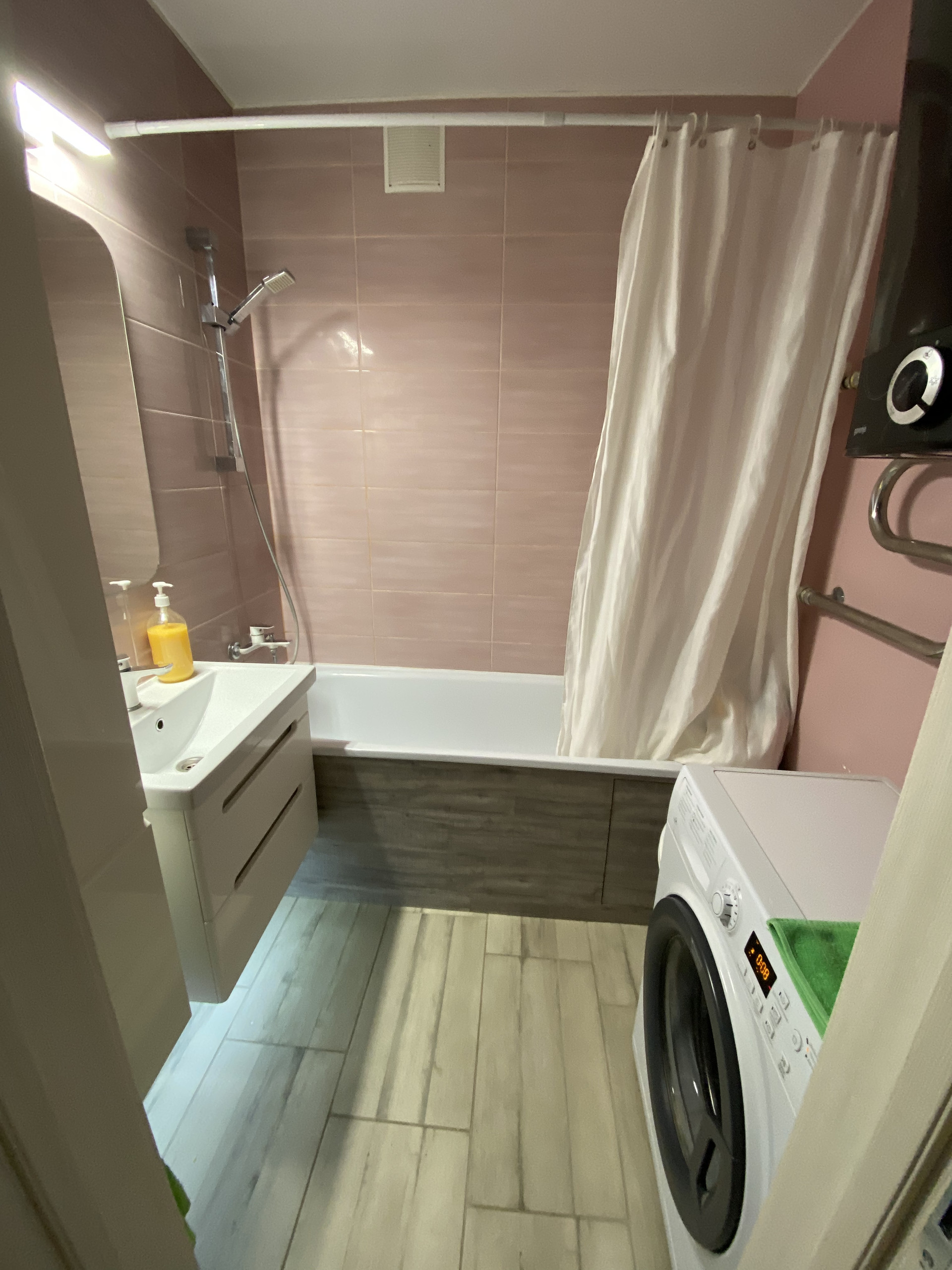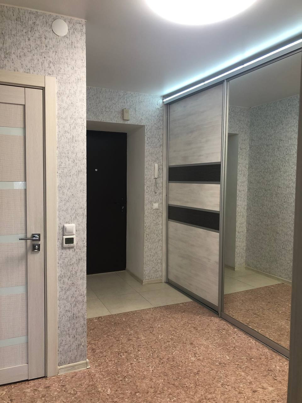 В ванной и санузле теплый пол, так же теплый пол на входе в квартиру для сушки обуви. Установлены проходные выключатели и декоративная подсветка. Качественная сантехника именитых брендов
