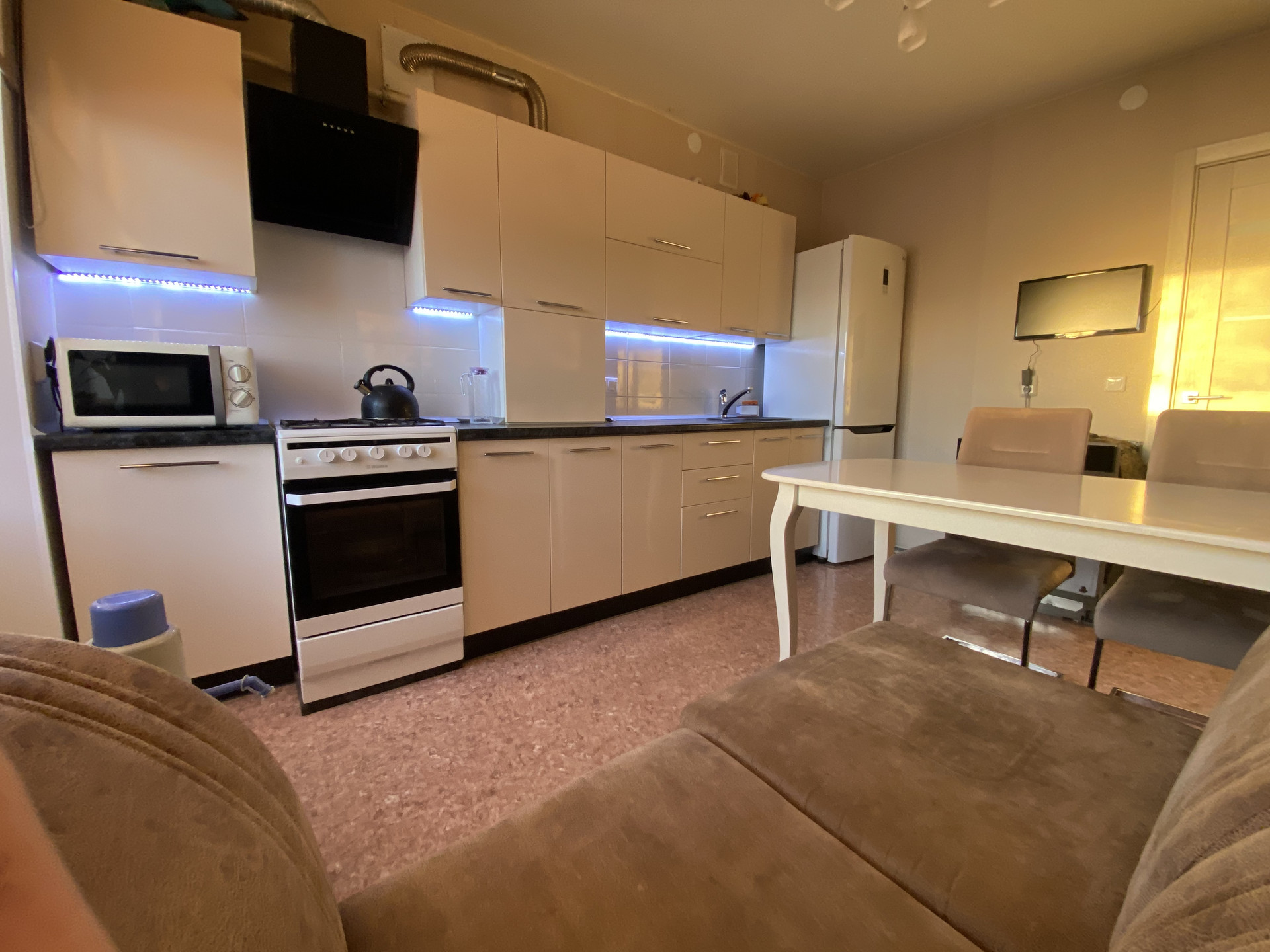 При продаже в квартире остаётся кухонный гарнитур с бытовой техникой, большой встроенный шкаф в прихожей, водонагреватель накопительный, мебель в ванной и в спальной комнате, сплит система