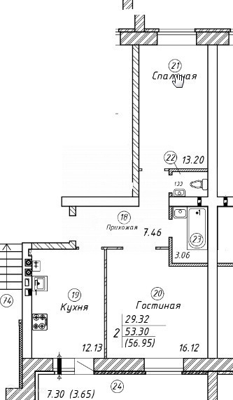 · Зал прямоугольной формы 16,5 кв.м. и большая 2 комната 13,5 кв.м. где может быть и детская и спальня!