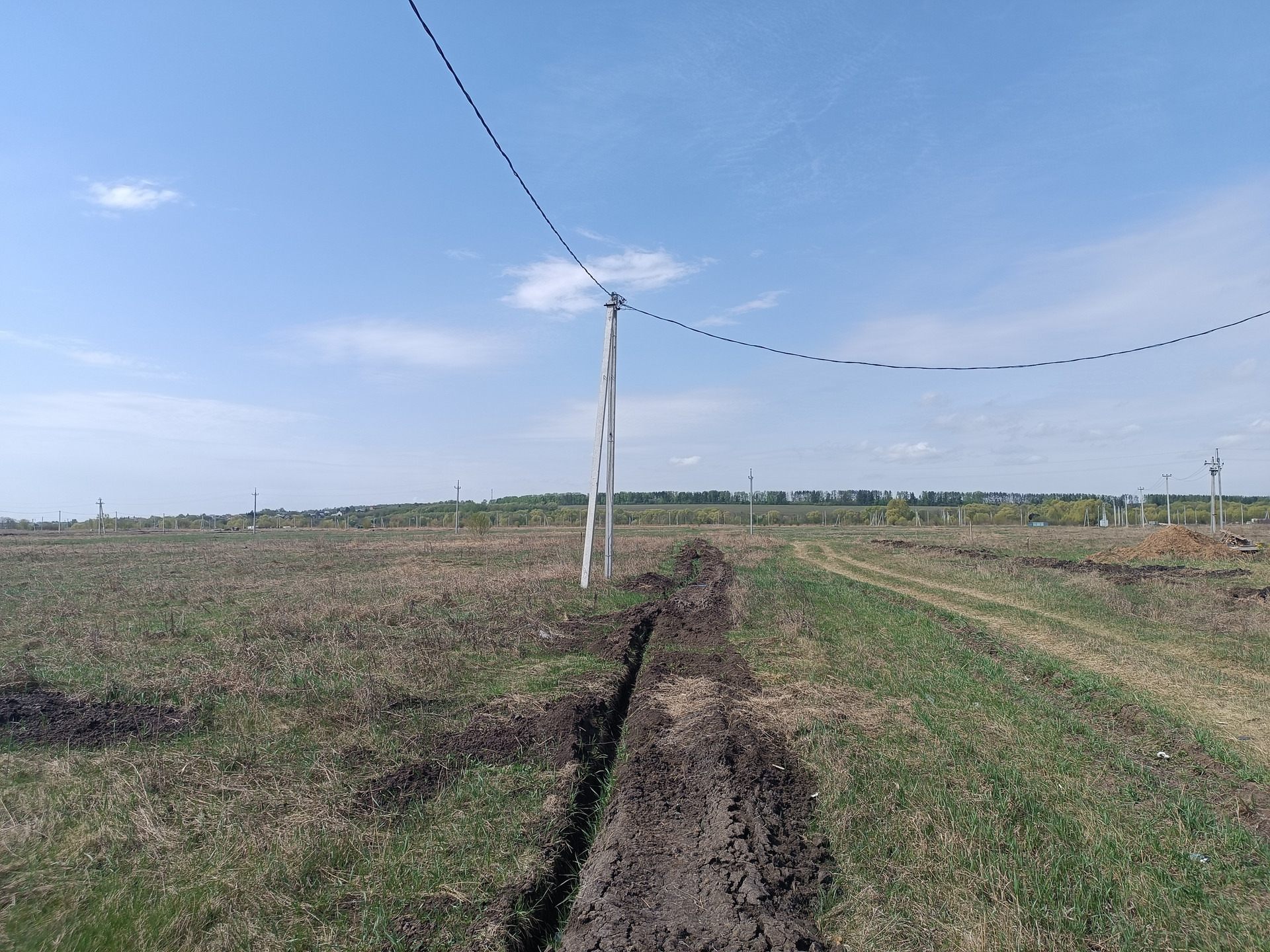 Электричество и Газ вдоль участка.