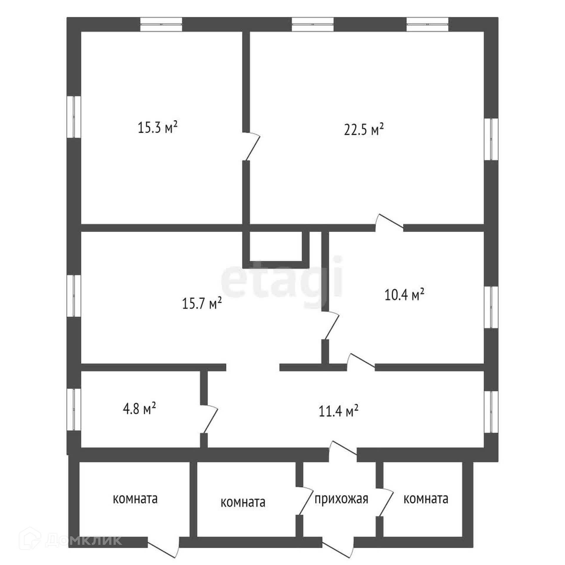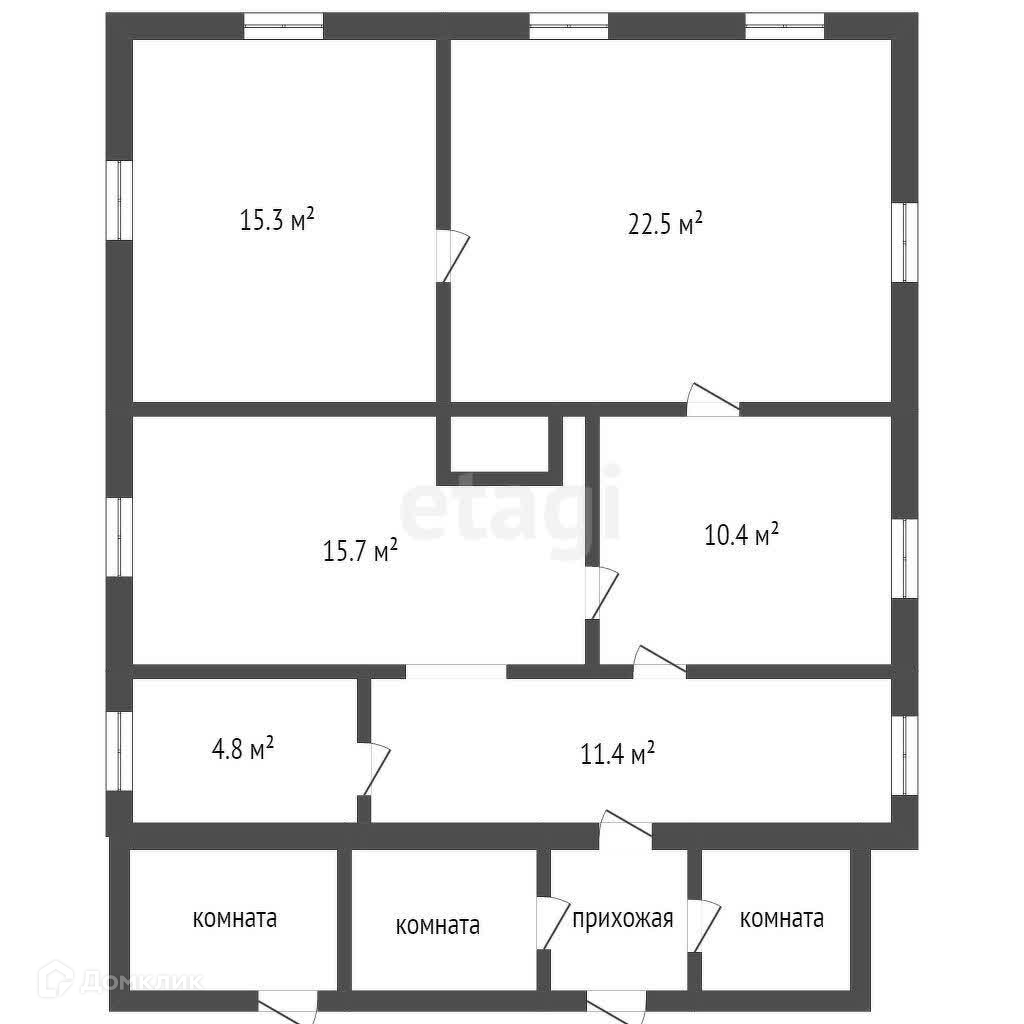 В доме кухня и четыре комнаты.