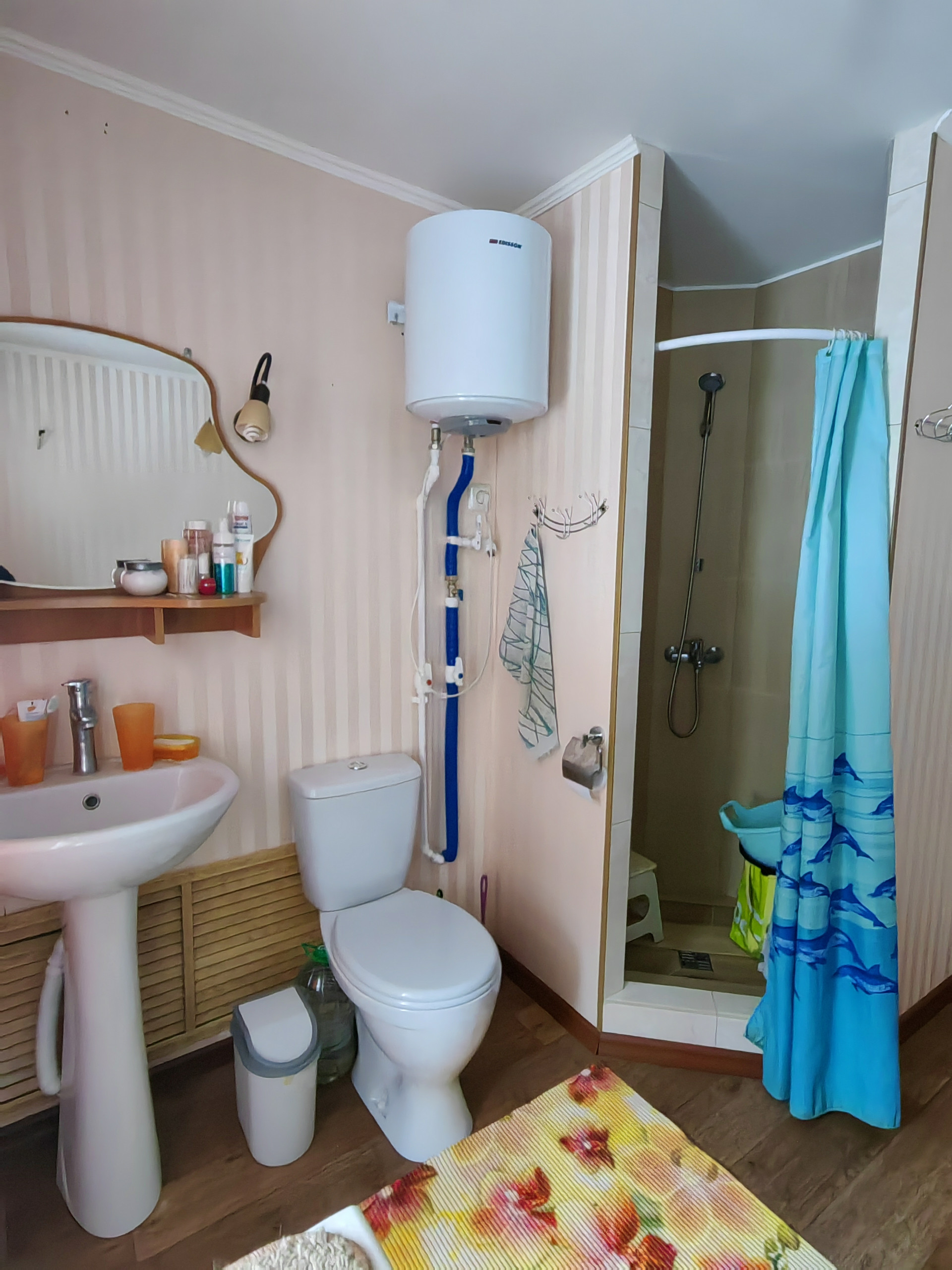 С/у совмещен с зоной отдыха (душ, установлены все приборы учета, остается водонагреватель, диван)