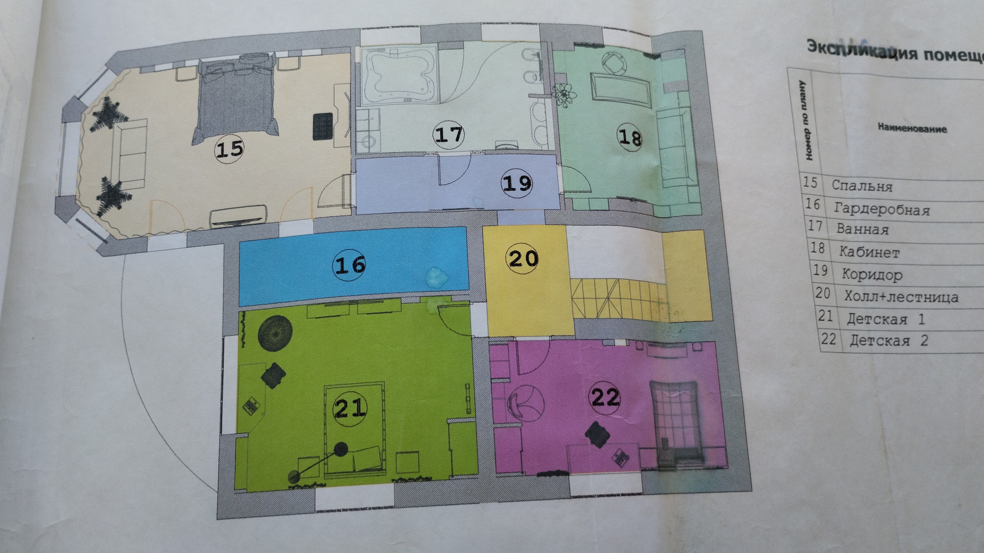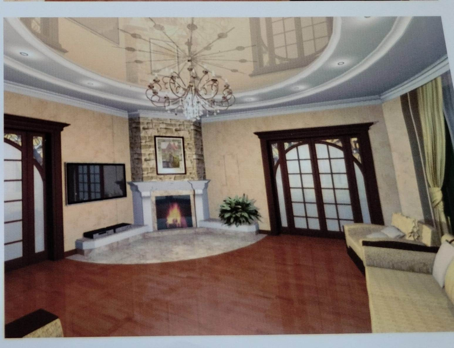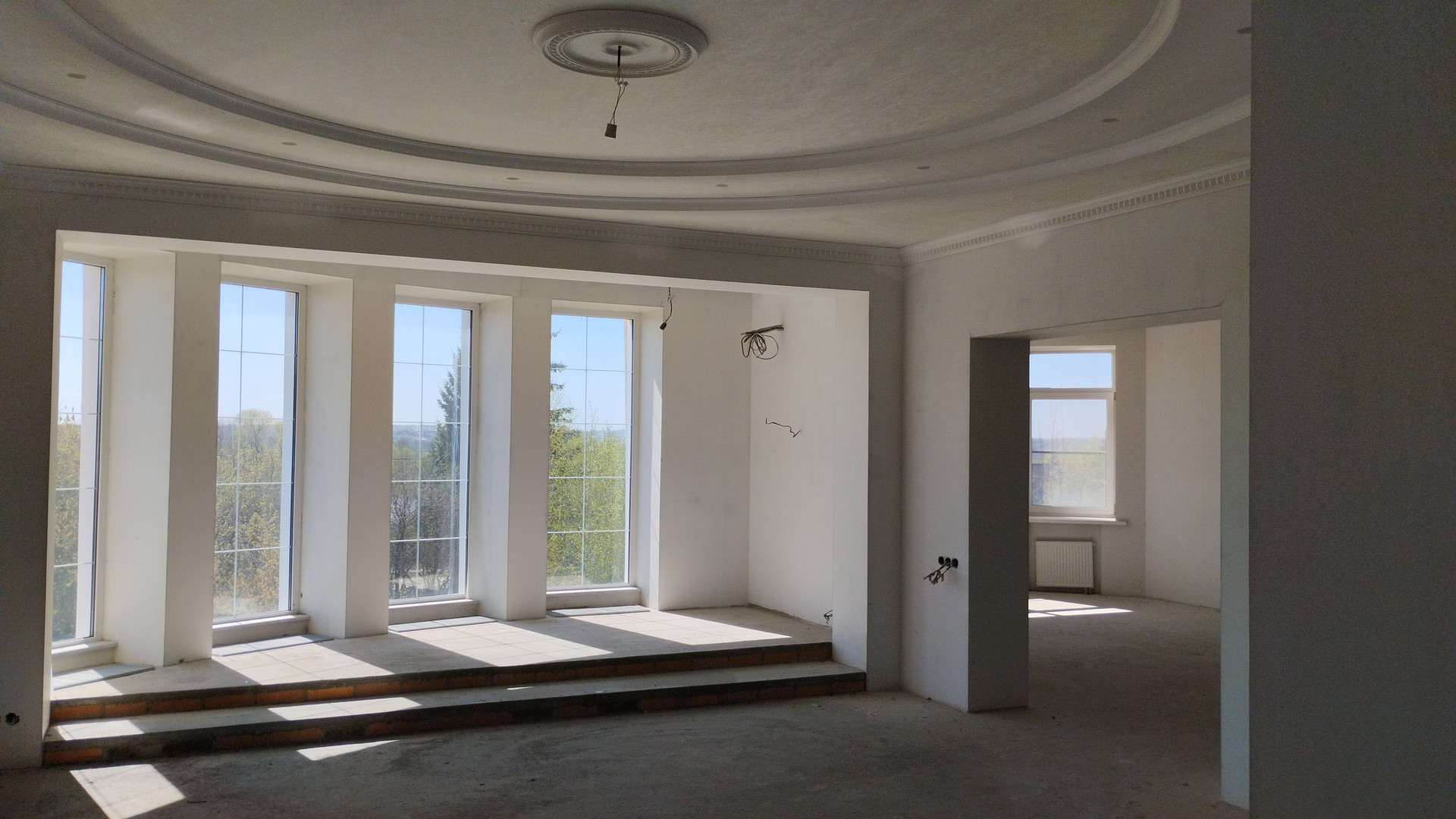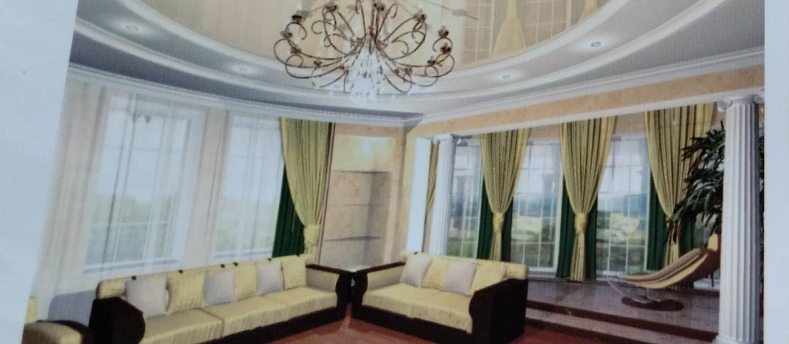 На сегодняшний день проект реализован не полностью, возведен и подготовлен под отделку двухэтажный дом, общей площадью 530 кв.м.,с цокольным этажом и возможностью использования чердачного этажа, с пристроенным гаражом на две машины, под которым имеется отдельный подвал, стены выполнены из керамических поризованных блоков Wienerberger и облицованы кирпичом, кровля из черепицы Braаs, внутри помещения готовы под чистовую отделку, декорированы молдингами, лепниной, что придаёт более выразительный завершённый, стильный вид. Выполнена подготовка под установку кондиционеров. Отопление осуществляется от двух напольных котлов. Установлен водонагреватель на 500 литров. В доме два полноценных наземных этажа, на первом этаже: зал, кухня-столовая, гостевая, душевая, гардеробная; на втором: спальня, две детские, кабинет и ванная. В цокольном этаже расположены помимо технических помещений: спортзал, бильярдная, домашний кинотеатр и винный погреб. Также имеется чердачное помещение свободного назначения.