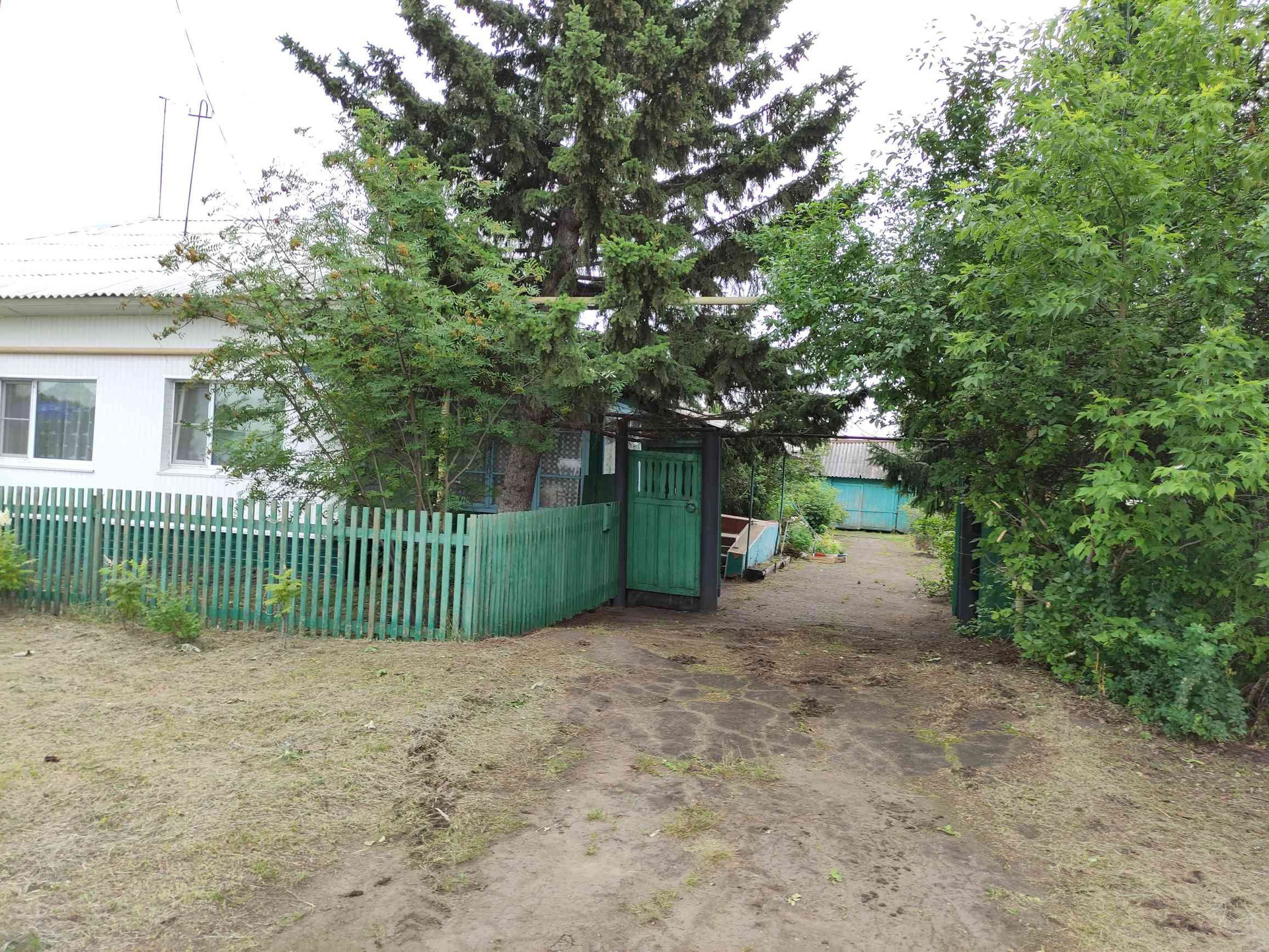 Крыльцо выходит в просторный и солнечный двор с асфальтной дорожкой, клумбами и палисадником с саженцами. Во дворе имеется колодец из асбестоцементной трубой высотой 4 м и объемом 1 куб.м.
