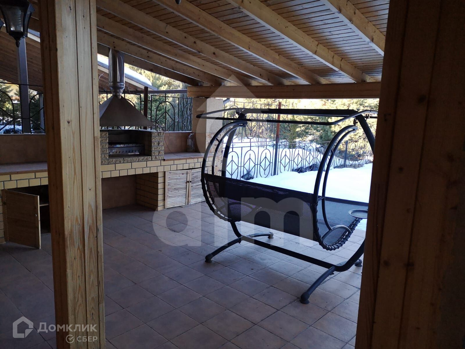 Пристроена большая веранда с мангалом и навес для автомобиля.
