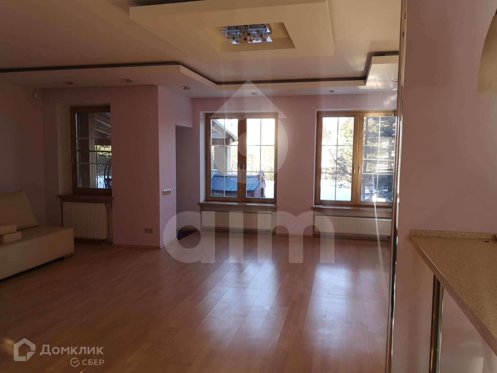Установлены дорогие деревянные окна.
