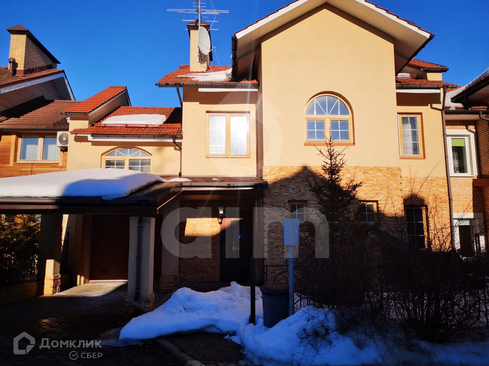 Предлагается к продаже таунхаус площадью 280 кв.м, с ремонтом. Дом находится на возвышенности. Участок облагорожен и засажен деревьями, установлена детская площадка.