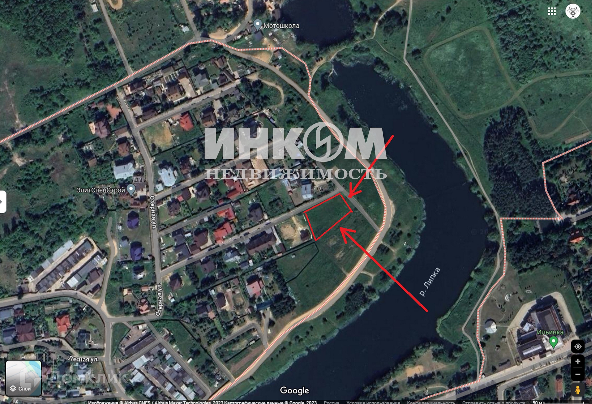 Земельный участок в селе Петрово-Дальнее с уникальным расположением вблизи прибрежной полосы озера (первая линия), образованного рекой Липкой.