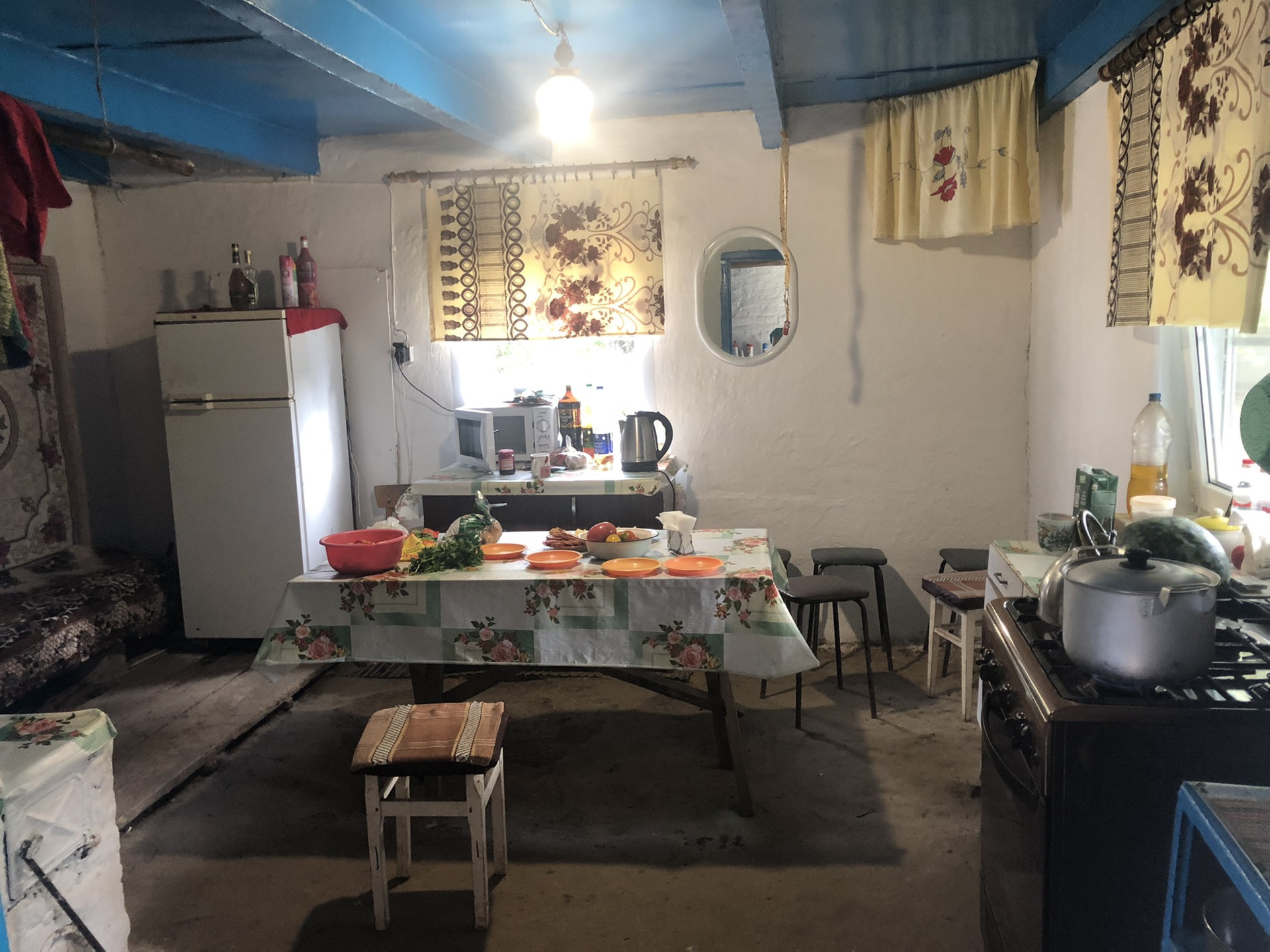 В доме имеется газовое отопление, подведена вода , стоит напольный котёл и водонагревательная колонка, во всем доме стоят пластиковые окна, спутниковое телевидение, интернет с WI-Fi. Летняя кухня и  душ. Ухоженный фруктовый сад, есть яблони, абрикосы, вишня, смородина , клубника. Большой огород. Возле дома имеется участок для посадки  помидор, огурцов и прочего, чего вашей душе угодно. Расположен на хорошей, красивой территории. Рядом находятся продуктовые магазины, школа, администрация. Зимой дом  хорошо держит тепло, летом прохладно, что не нужен даже кондиционер. Можно заходить и сразу жить. Продаёт собственник. Рассматривается вариант оплаты с ипотекой, в приоритет - наличный расчёт. На руках все документы. Все интересующие вопросы задавать по телефону