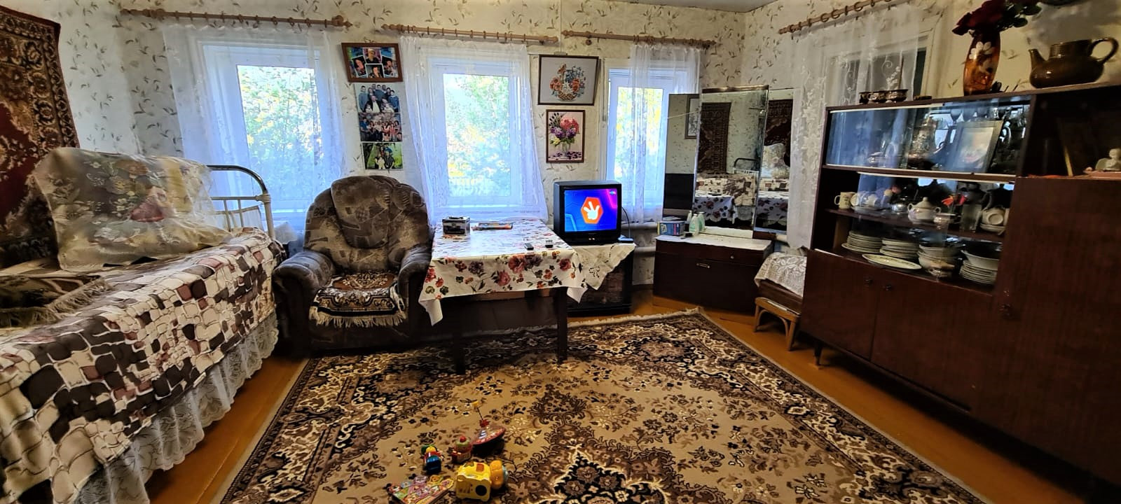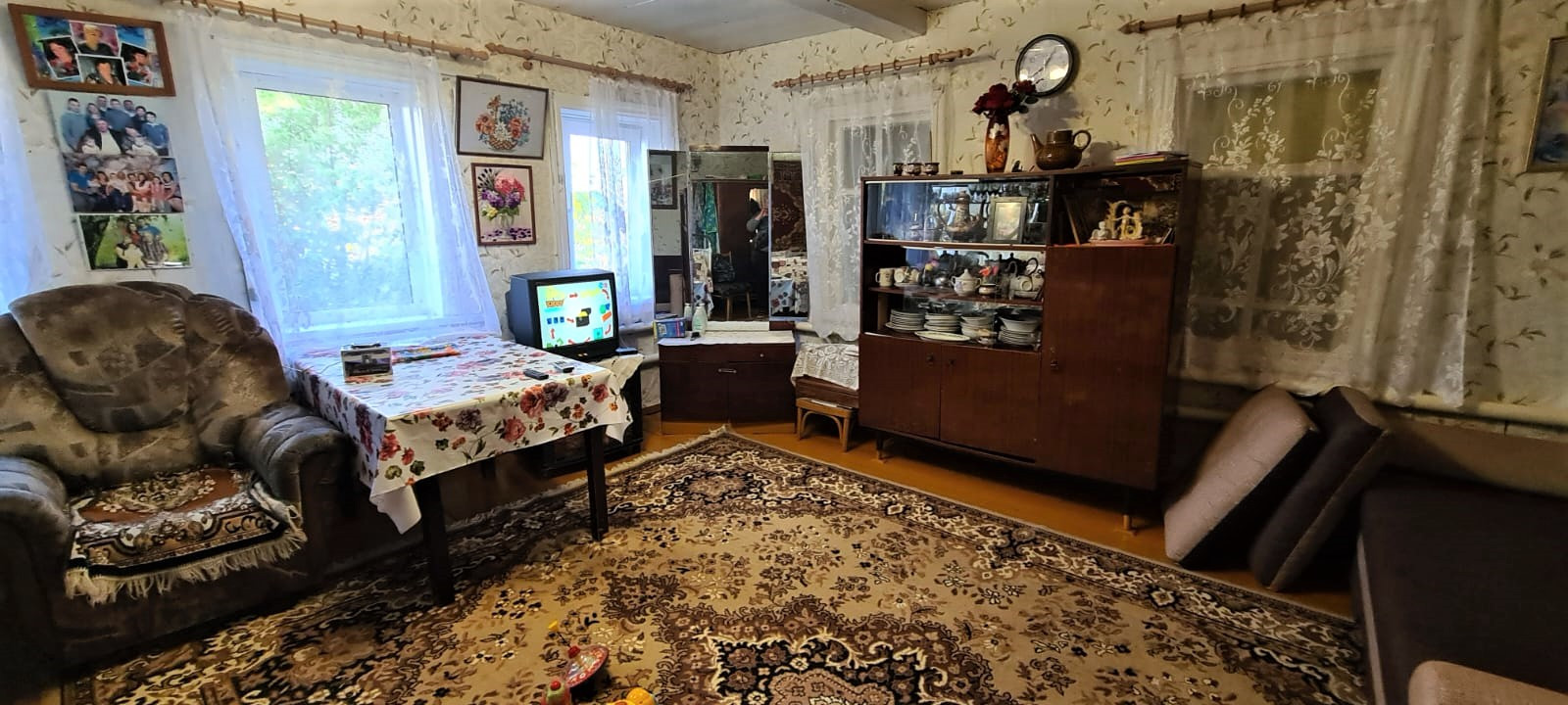 Бревенчатый дом, пластиковые окна, есть летник, веранда, баня, гараж, участок земли под посадки, центральное водоснабжение, а так же есть колодец. Посажены фруктовые деревья, смородина, малина, крыжовник. Дом на красной линии. Рядом магазин Питер, автовокзал, Дом культуры, почта, сельский совет. Очень хорошие соседи, дорога асфальт, спутниковое тв.