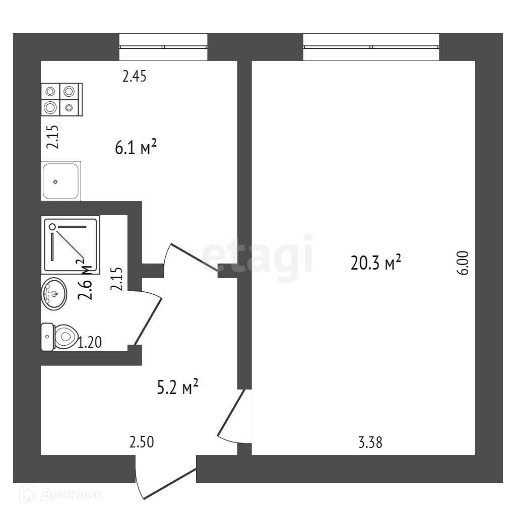 Площадь кухни 6.1 м2