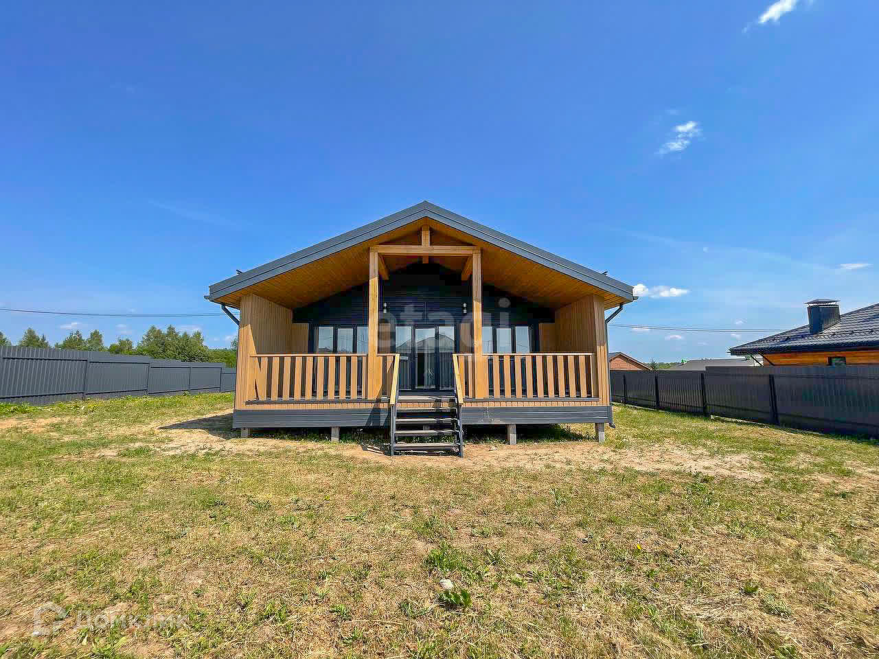 Сам дом находится на участке правильной прямоугольной формы (площадь уточненная, выполнено межевание) в живописном месте, где рядом есть небольшое озеро и лесной массив. От дома до центра города на автомобиле можно добраться за 30 минут, до глобуса и всей необходимой инфраструктуры 15 мин