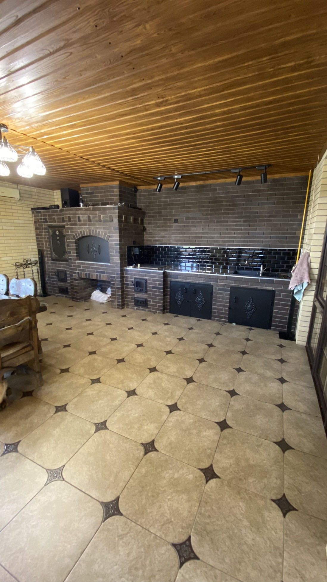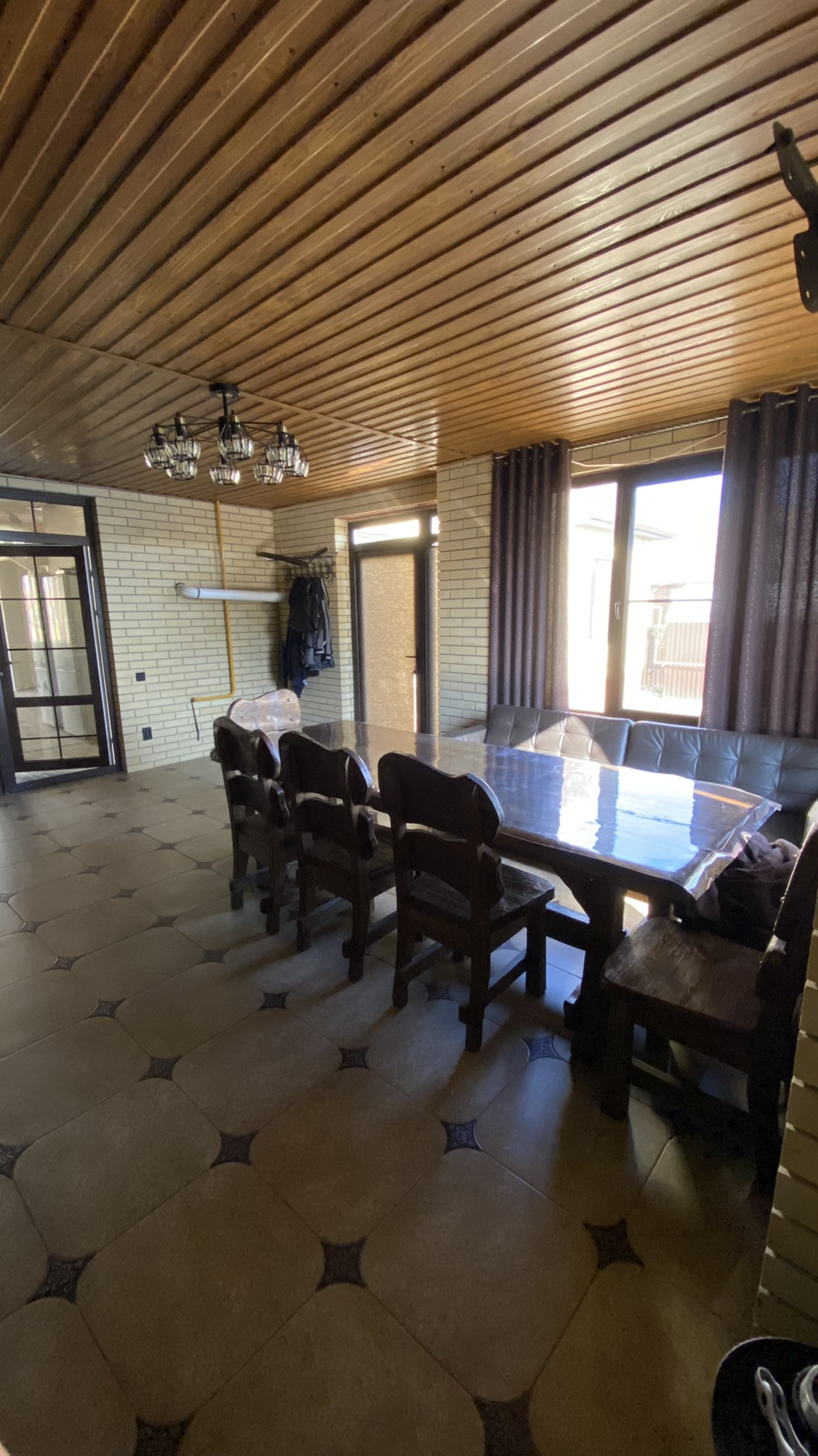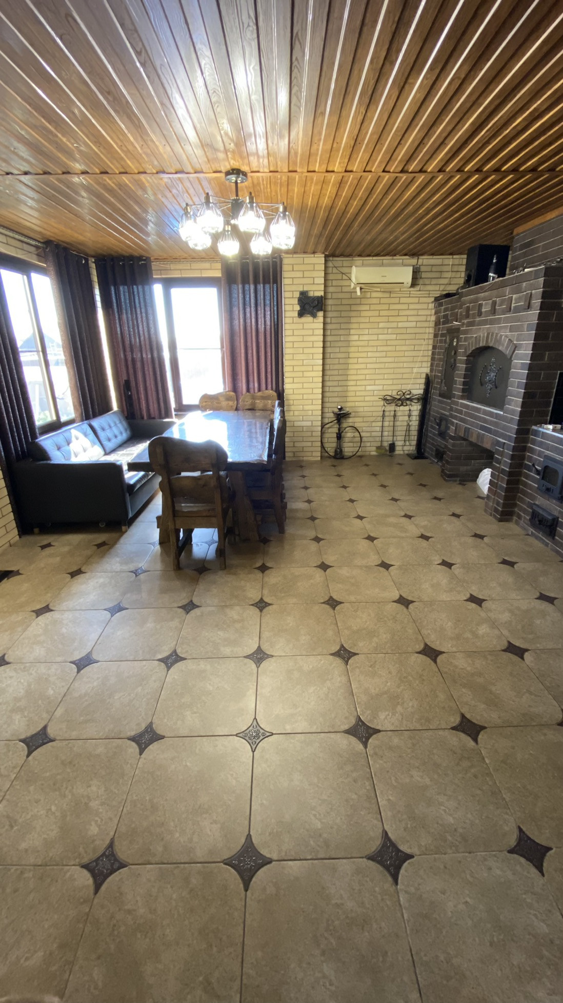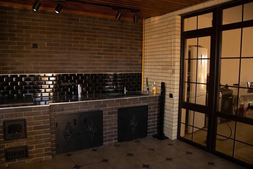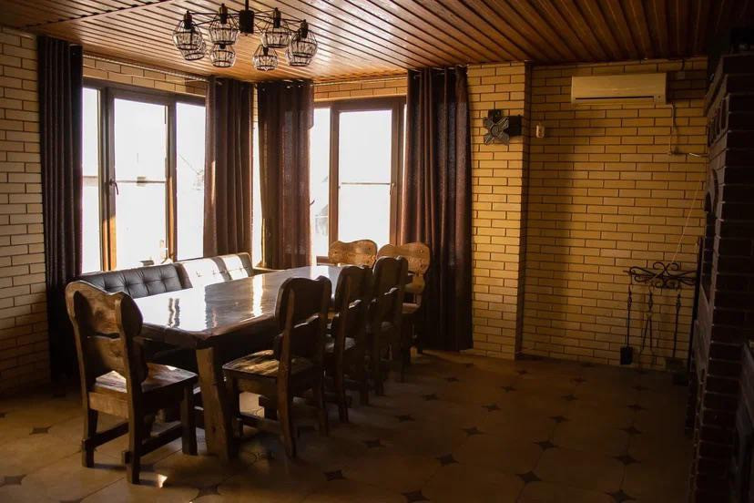 ЖЕМЧУЖИНА ЭТОГО ДОМА - ПЕРВОКЛАССНАЯ МАНГАЛЬНАЯ КУХНЯ - СТОЛОВАЯ ! МАЙКОПСКИЙ ПРОЕКТИРОВЩИК ВОПЛОТИЛ В РЕАЛЬНОСТЬ СУПЕР ИДЕЮ И ОБЪЕДИНИЛ РУССКУЮ ПЕЧЬ , КОПТИЛЬНЮ ГОРЯЧЕГО И ХОЛОДНОГО КОПЧЕНИЯ , АВТОМАТИЧЕСКИЙ ВЕРТЕЛ ! МАНГАЛЬНАЯ ЗОНА 90 см ШИРИНА ! В ПОДАРОК покупателю остается обеденная группа ( шикарный стол и стулья из осины ! ) , а так же диван из натуральной телячьей кожи !