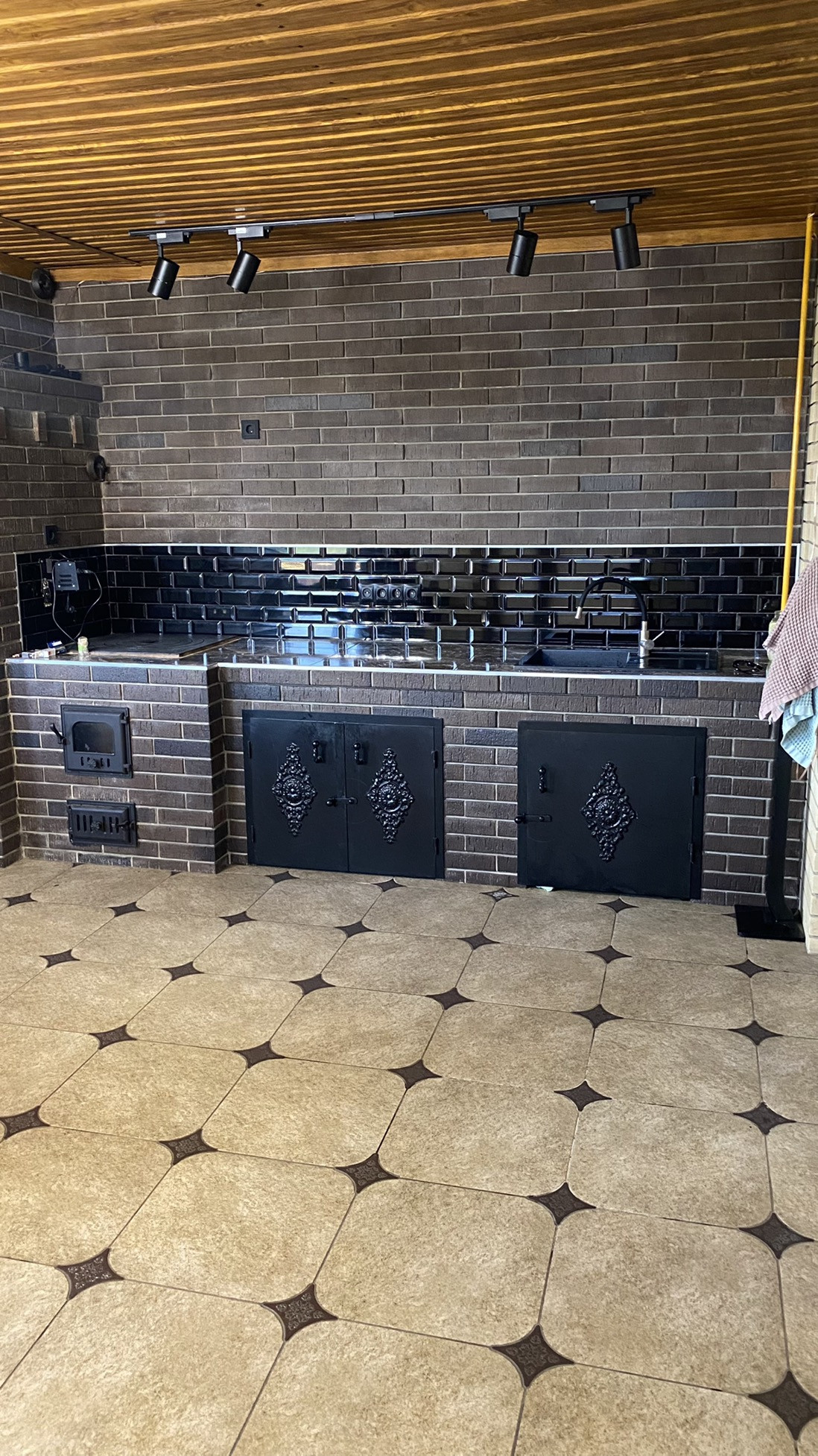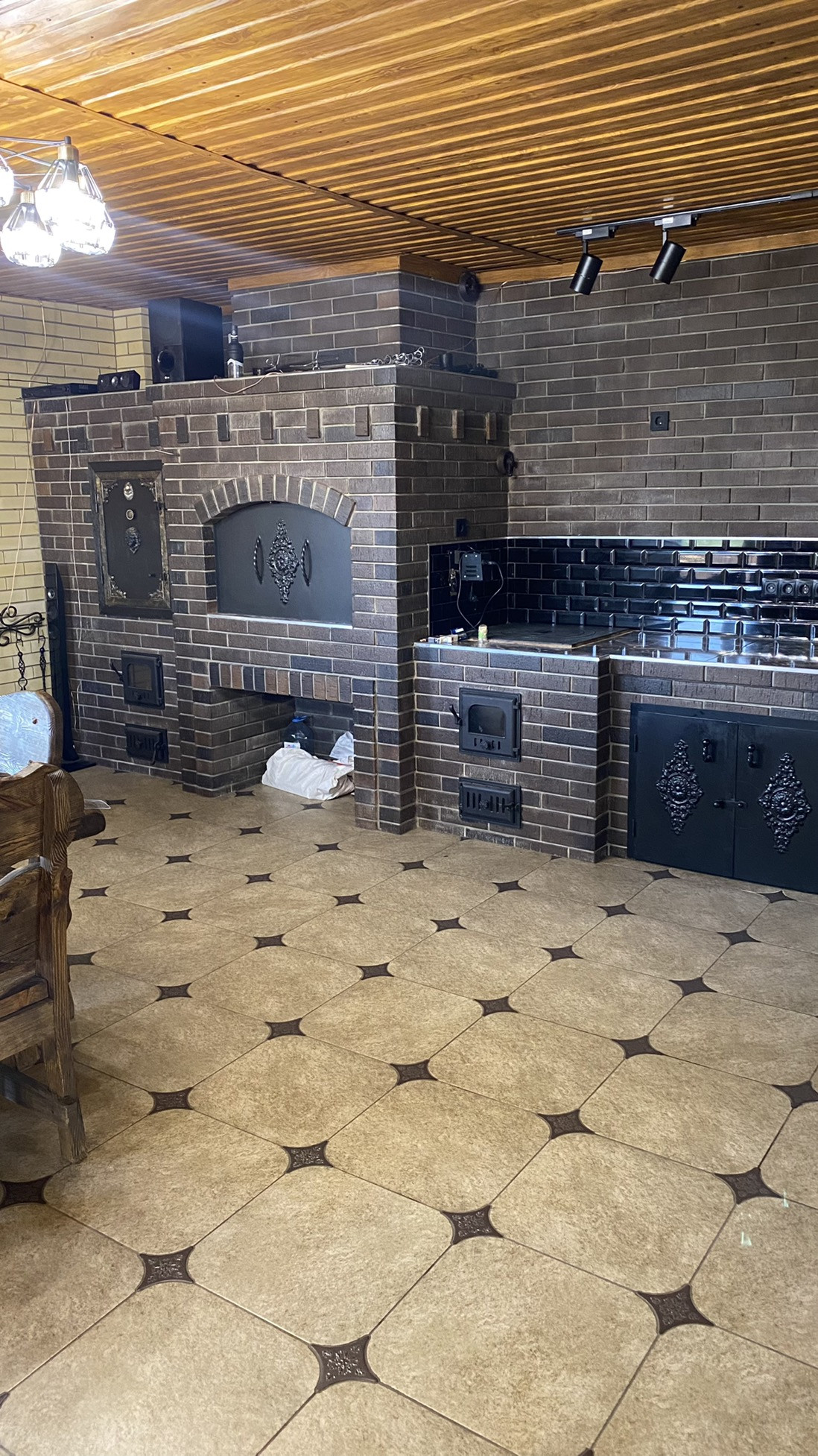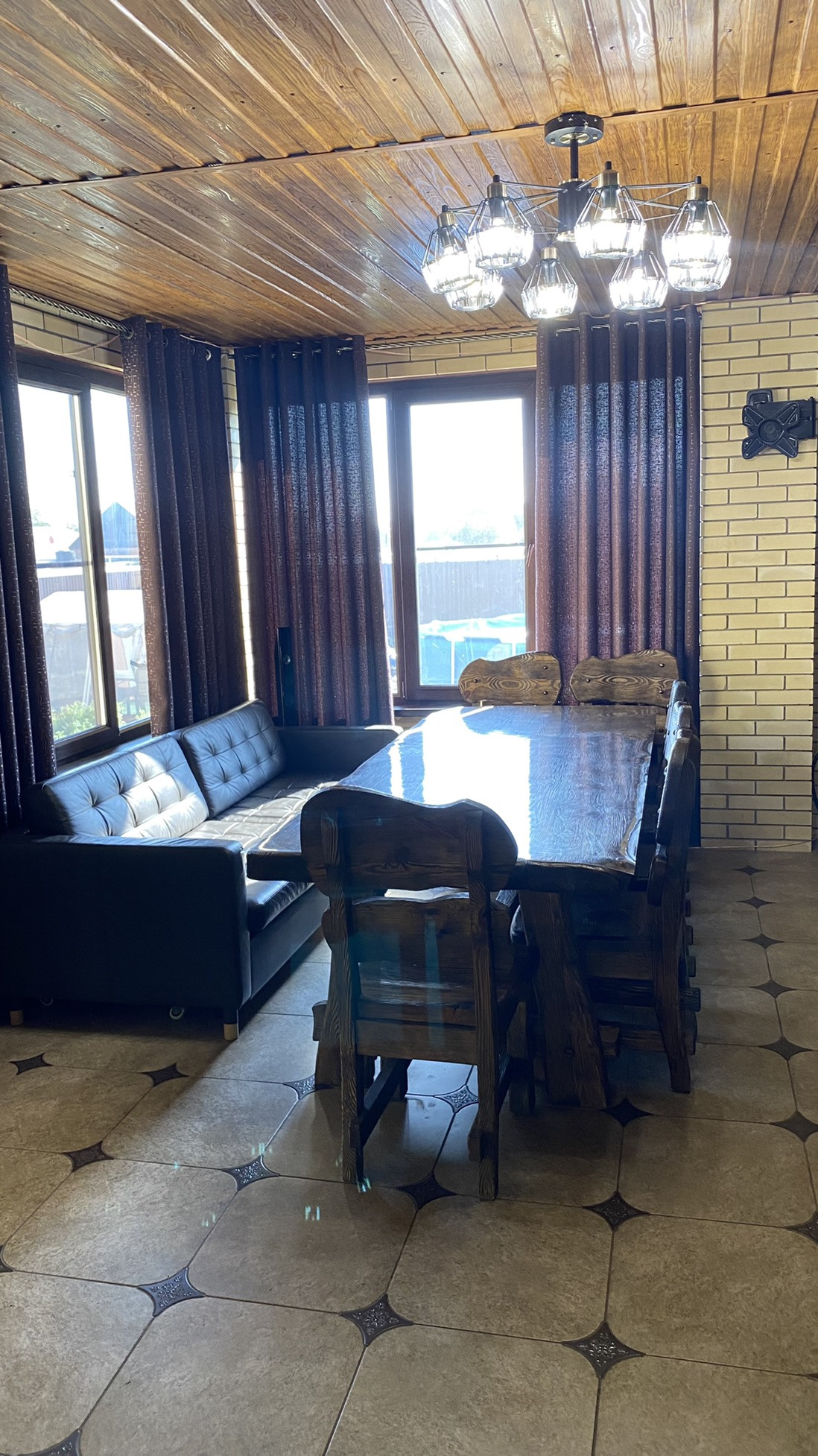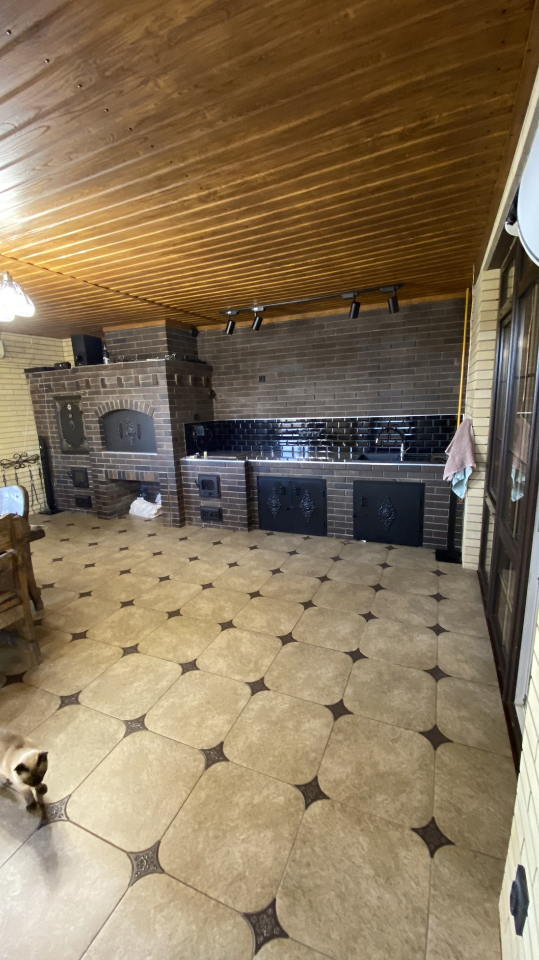ЖЕМЧУЖИНА ЭТОГО ДОМА - ПЕРВОКЛАССНАЯ МАНГАЛЬНАЯ КУХНЯ - СТОЛОВАЯ ! МАЙКОПСКИЙ ПРОЕКТИРОВЩИК ВОПЛОТИЛ В РЕАЛЬНОСТЬ СУПЕР ИДЕЮ И ОБЪЕДИНИЛ РУССКУЮ ПЕЧЬ , КОПТИЛЬНЮ ГОРЯЧЕГО И ХОЛОДНОГО КОПЧЕНИЯ , АВТОМАТИЧЕСКИЙ ВЕРТЕЛ ! МАНГАЛЬНАЯ ЗОНА 90 см ШИРИНА ! В ПОДАРОК покупателю остается обеденная группа ( шикарный стол и стулья из осины ! ) , а так же диван из натуральной телячьей кожи !
