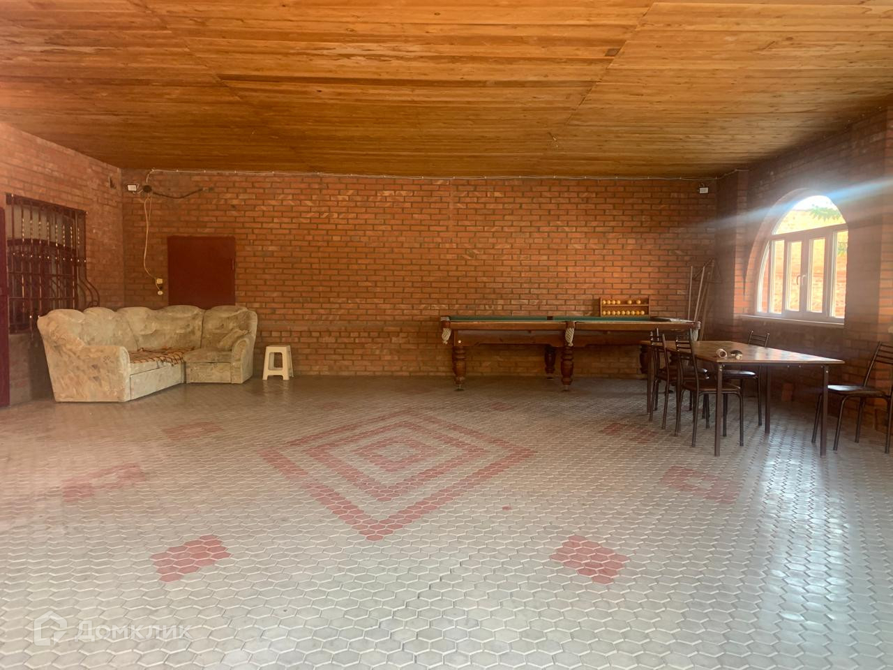 Двор дома вымощен плиткой, имеется 2 гаража, один на два машиноместа. Во дворе есть погреб, зона отдыха и зона барбекю, вольер, Под уличный бассейн залит фундамент. По периметру двора забор из кирпича.