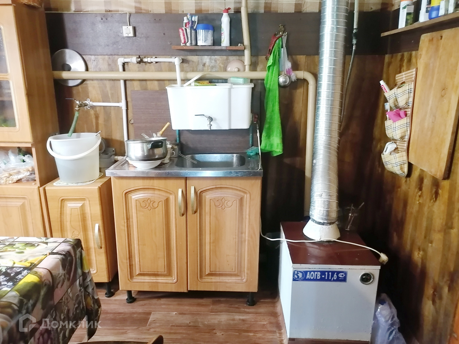 В доме одна большая комнаьа, кухня, коридор, чулан (вместо него можно разместить туалет). Отопление газовое от котла, вода (трубы новые полипропиленовые), канализация. Есть летняя кухня, летний душ погреб.