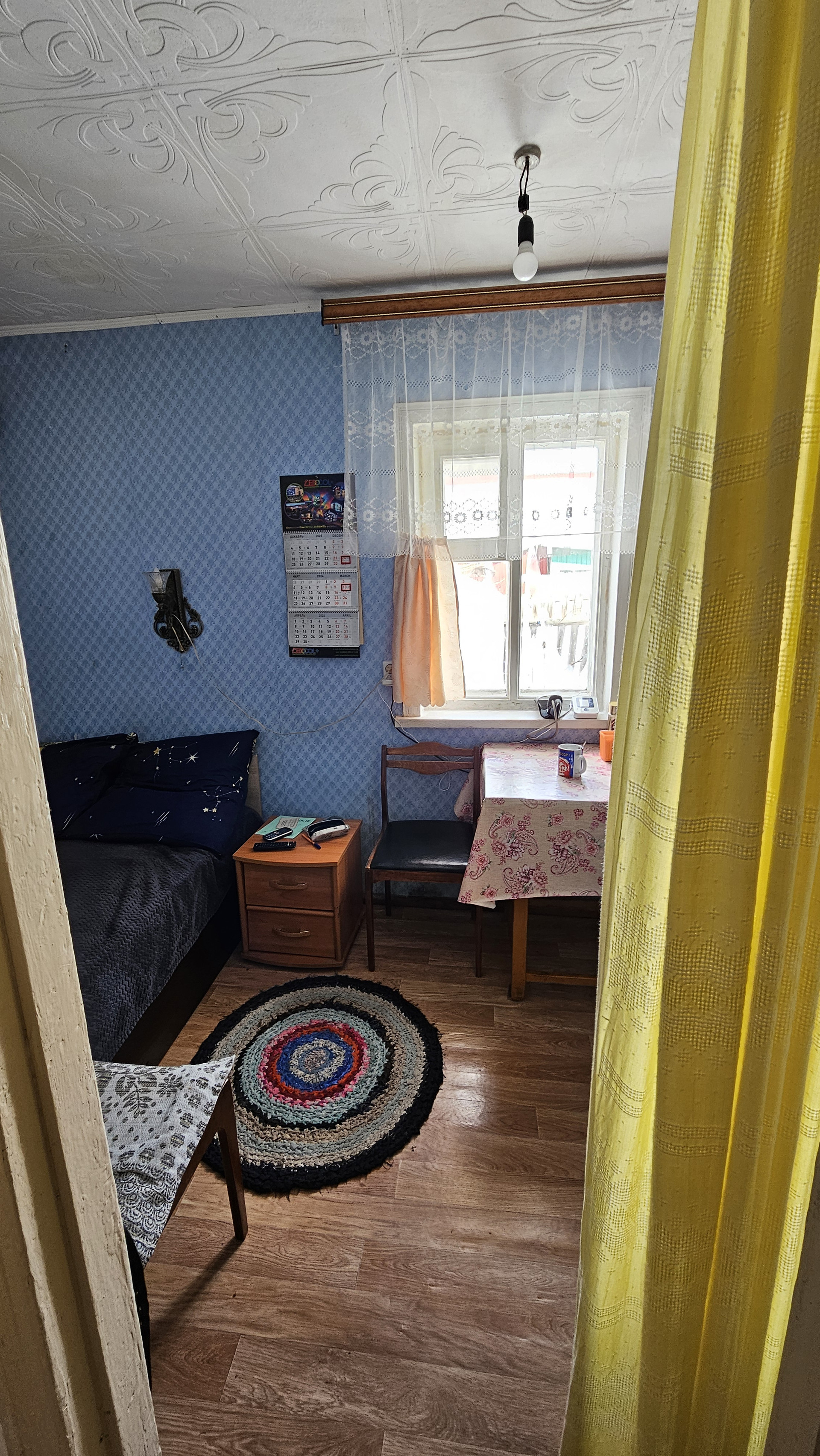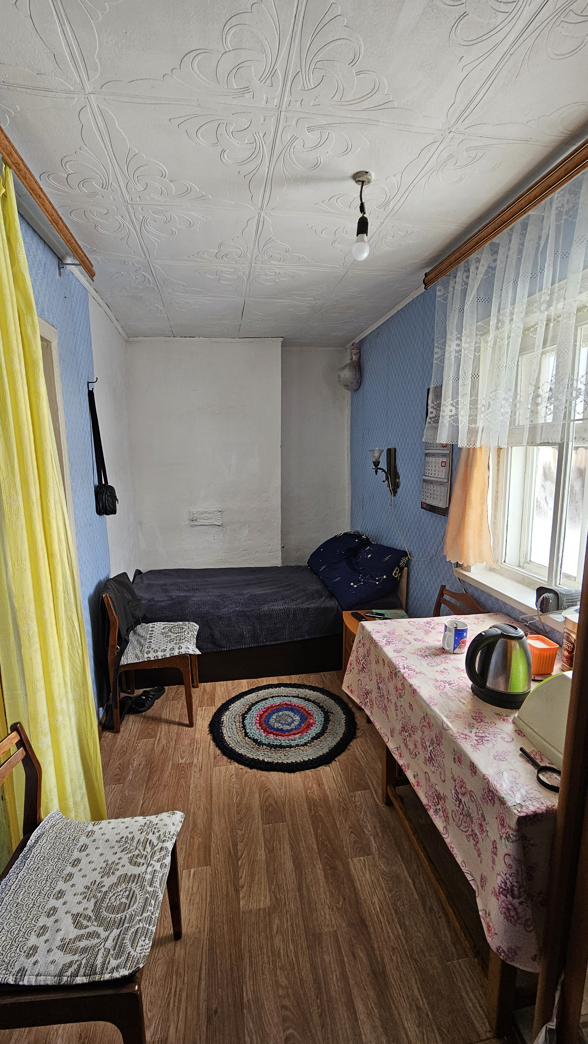 Крыша перекрыта профнастилом.