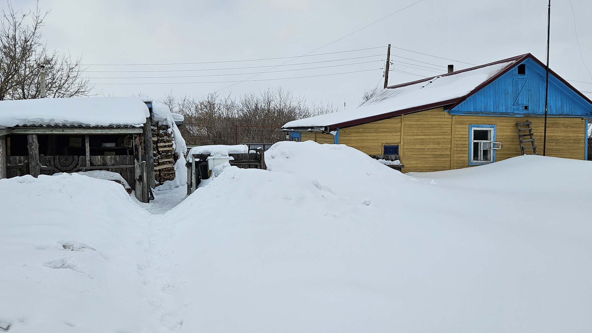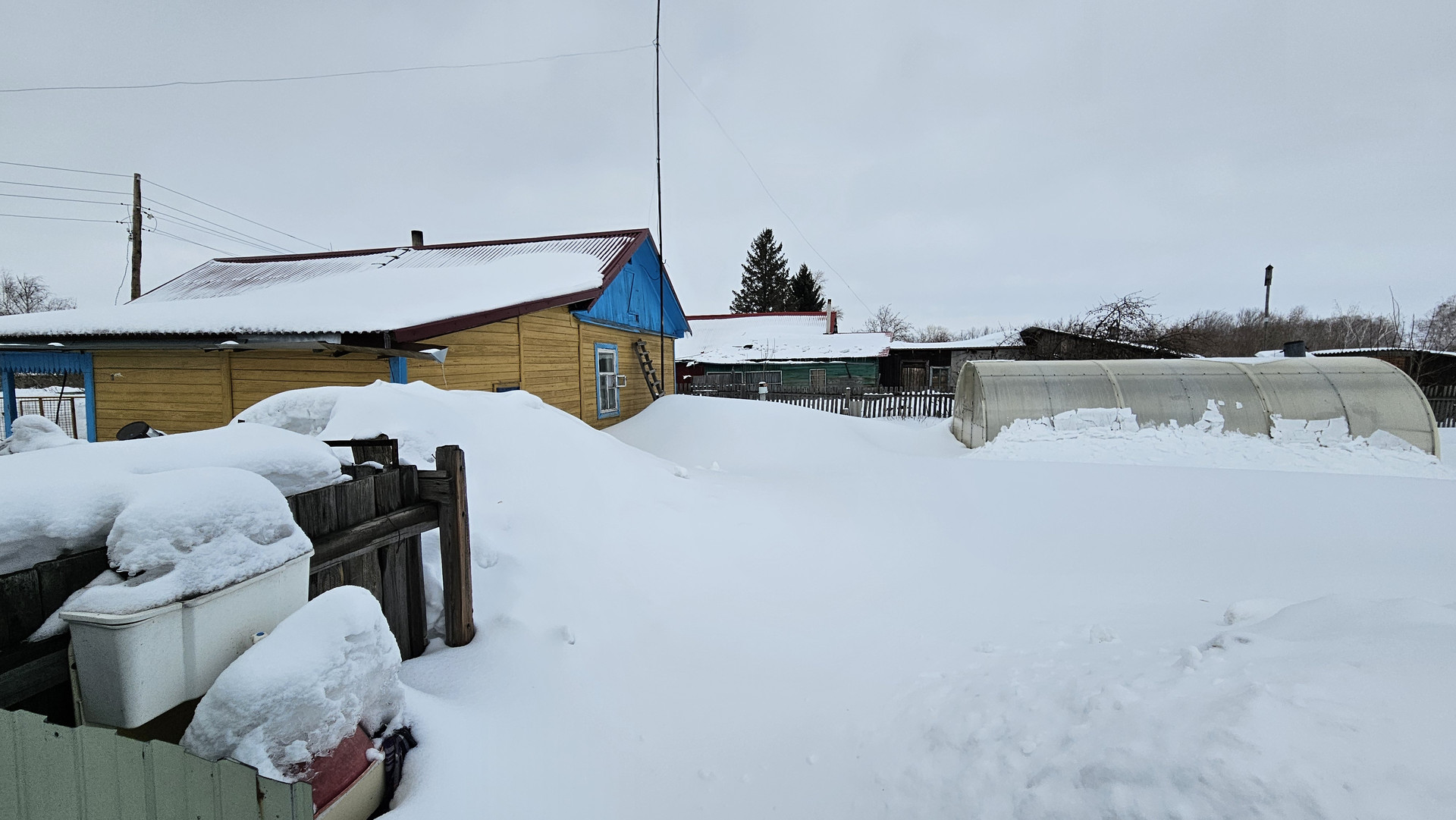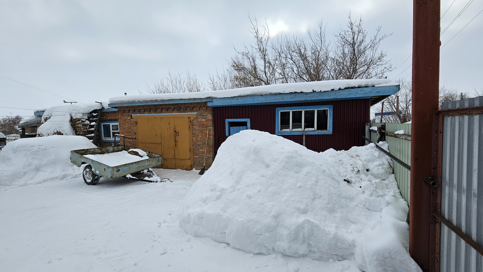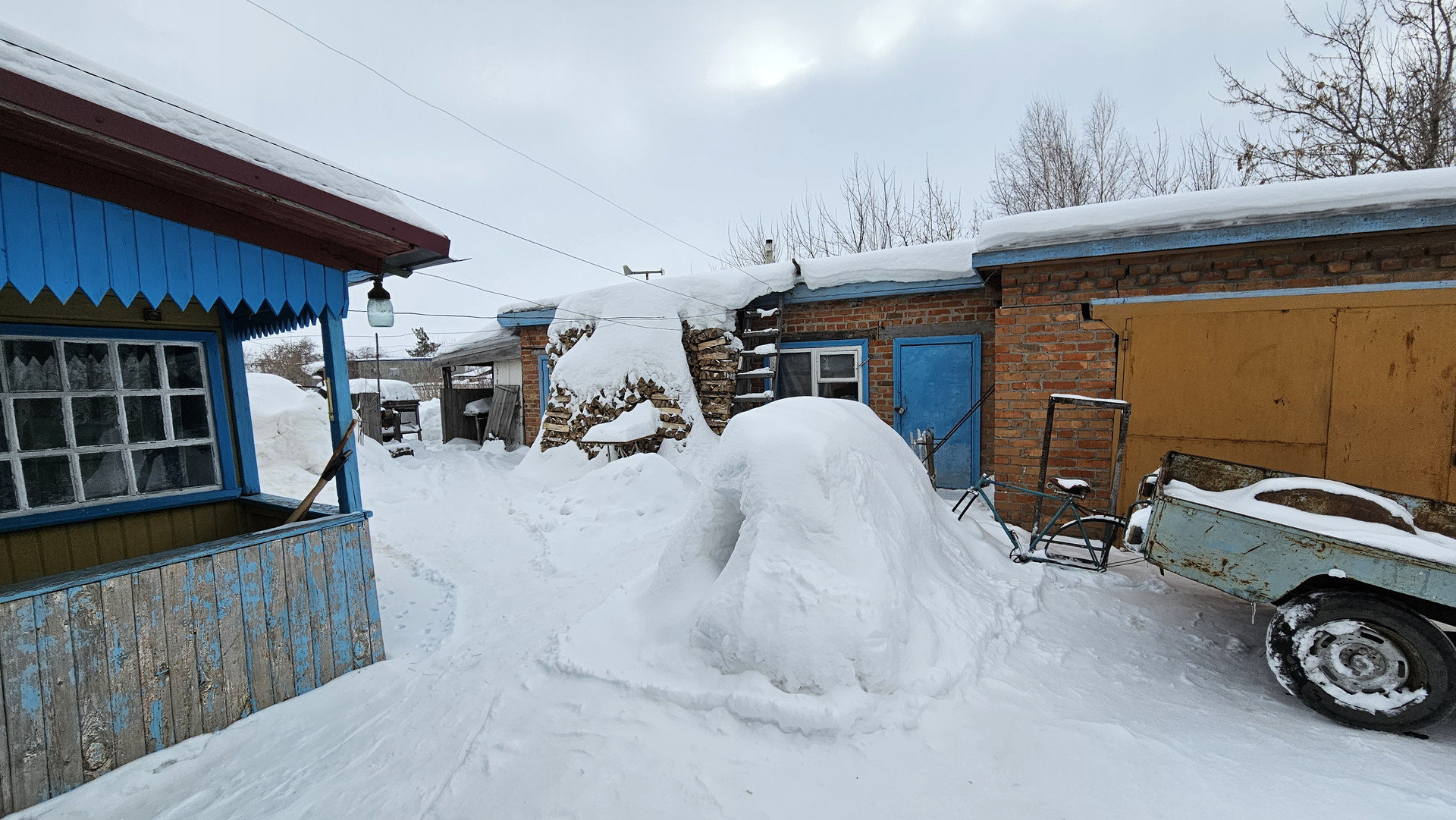 Под одной крышей кирпичные постройки: гараж, баня, дровенник, летняя кухня.