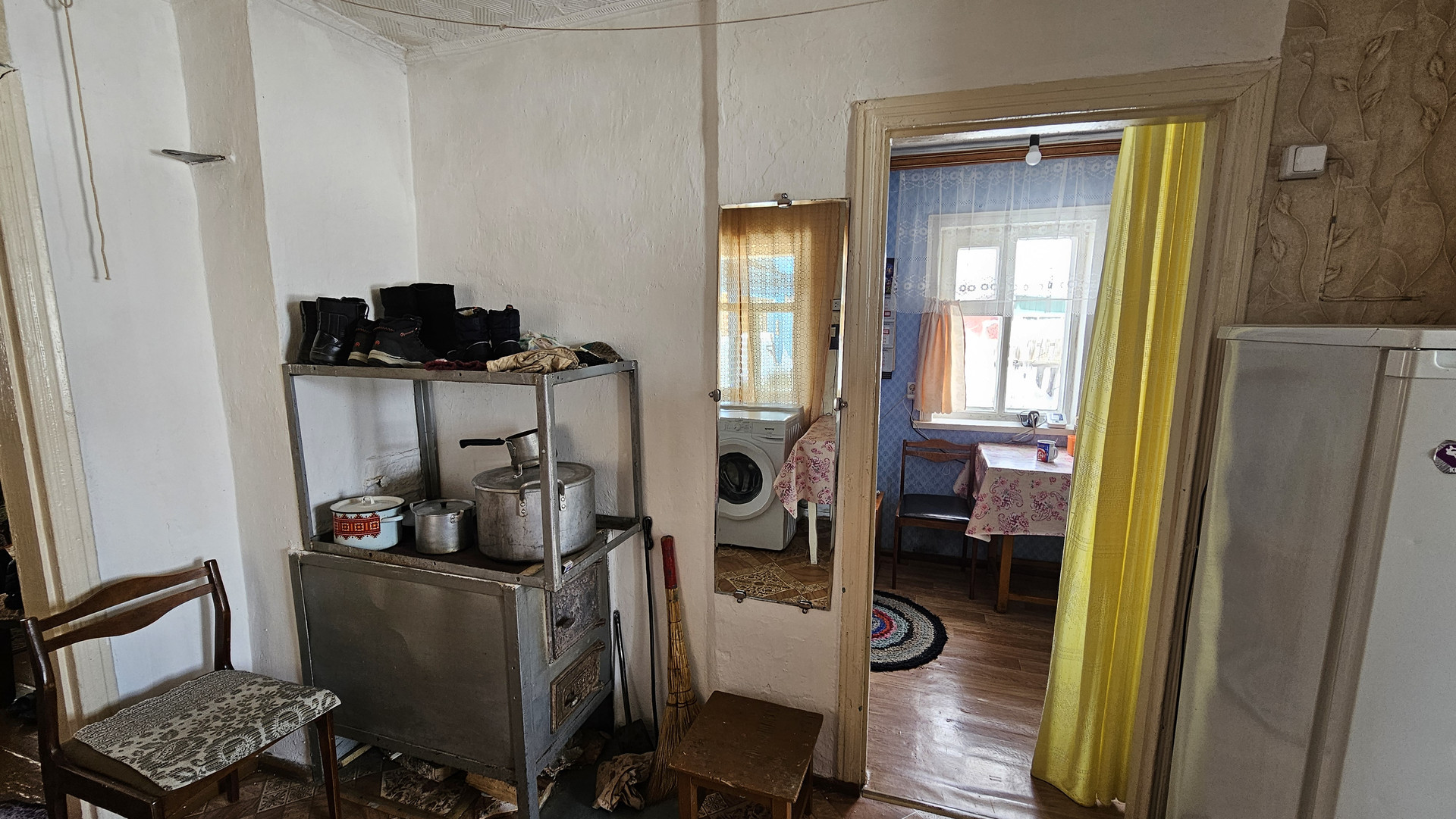 8 кв.м. +веранда,  дом шпальный, обшит вагонкой,  две комнаты и кухня. Печное отопление. Новые деревянные окна.