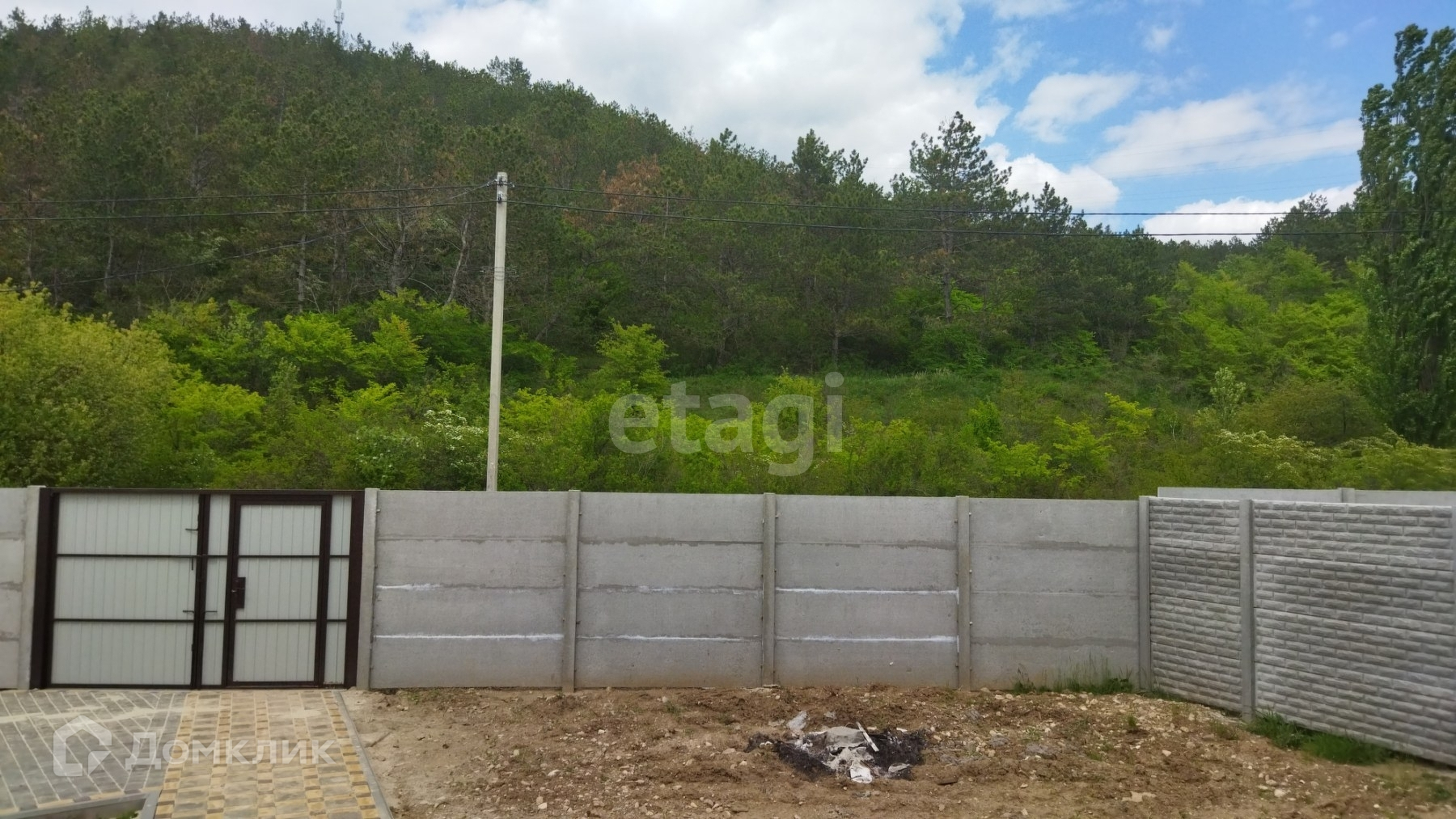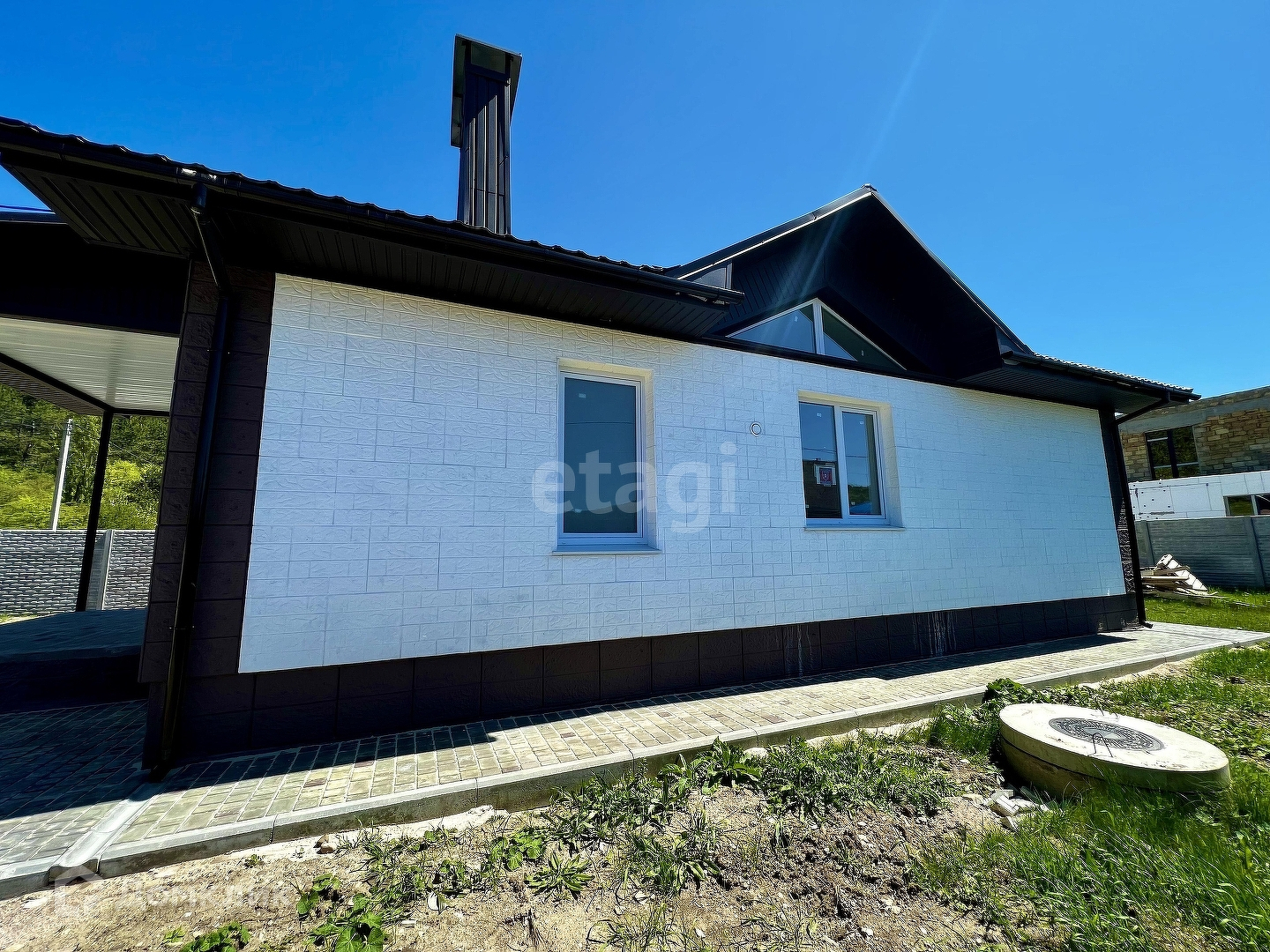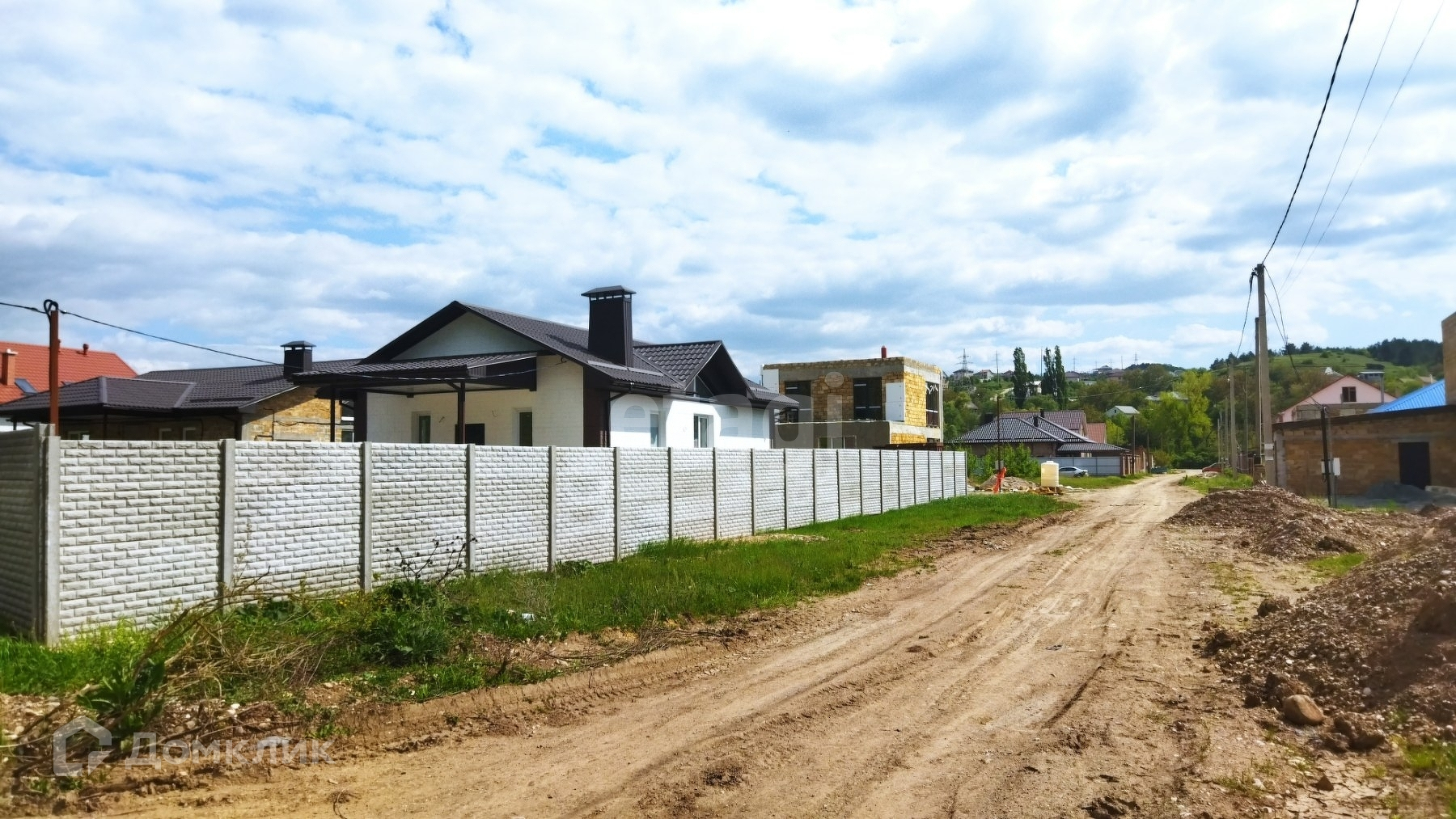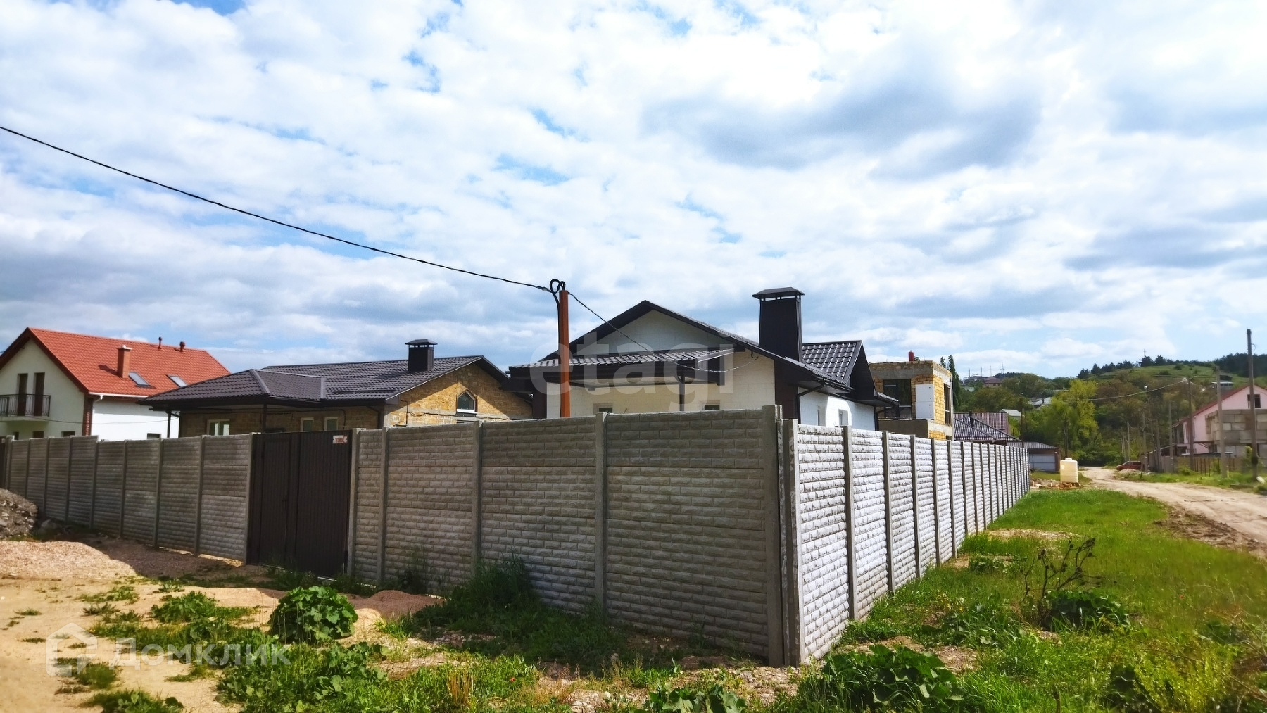 Дом огорожен бетонным забором (еврозабор), во дворе тротуарная плитка. До города 5 км или 5 мин на авто.