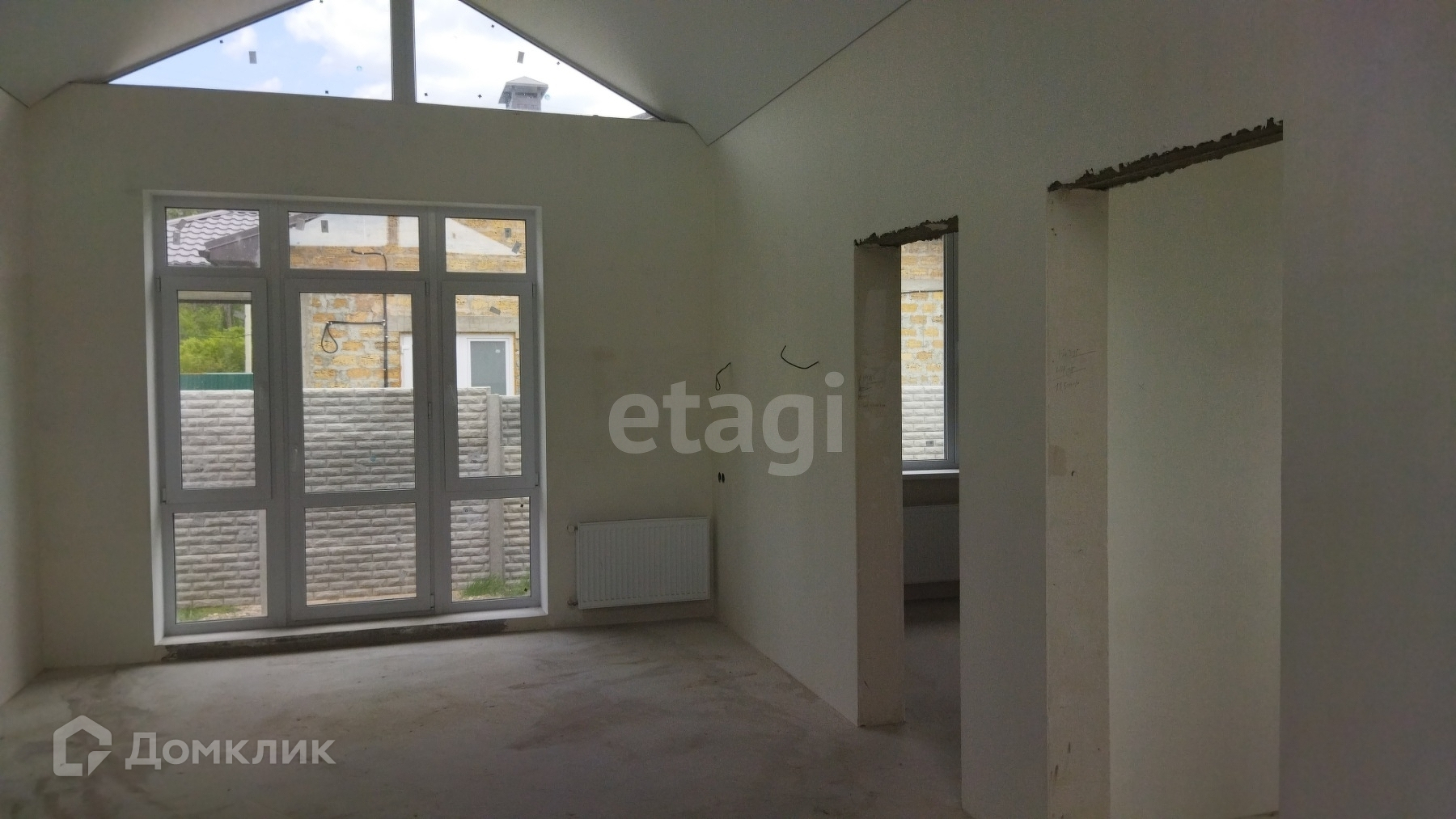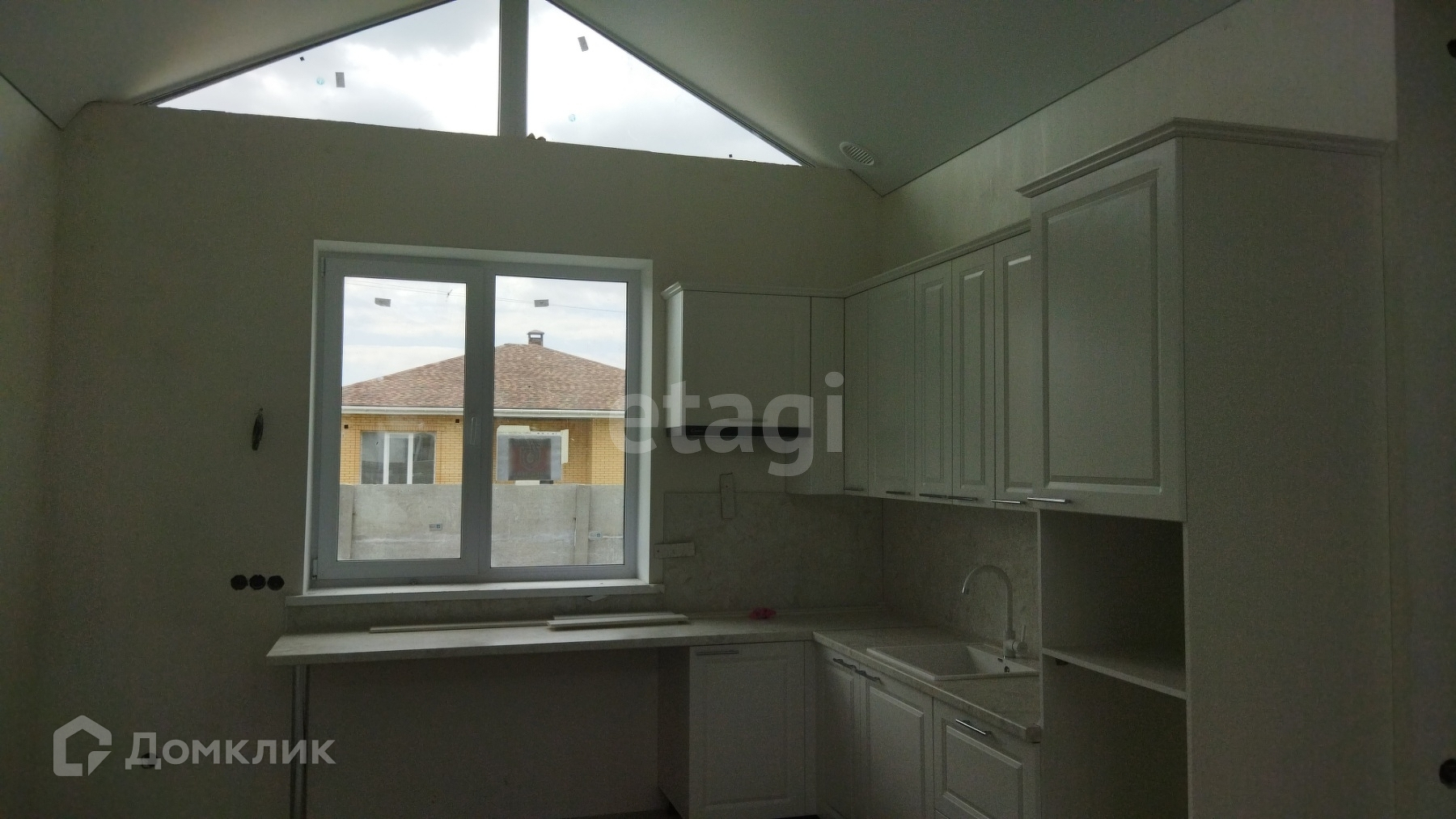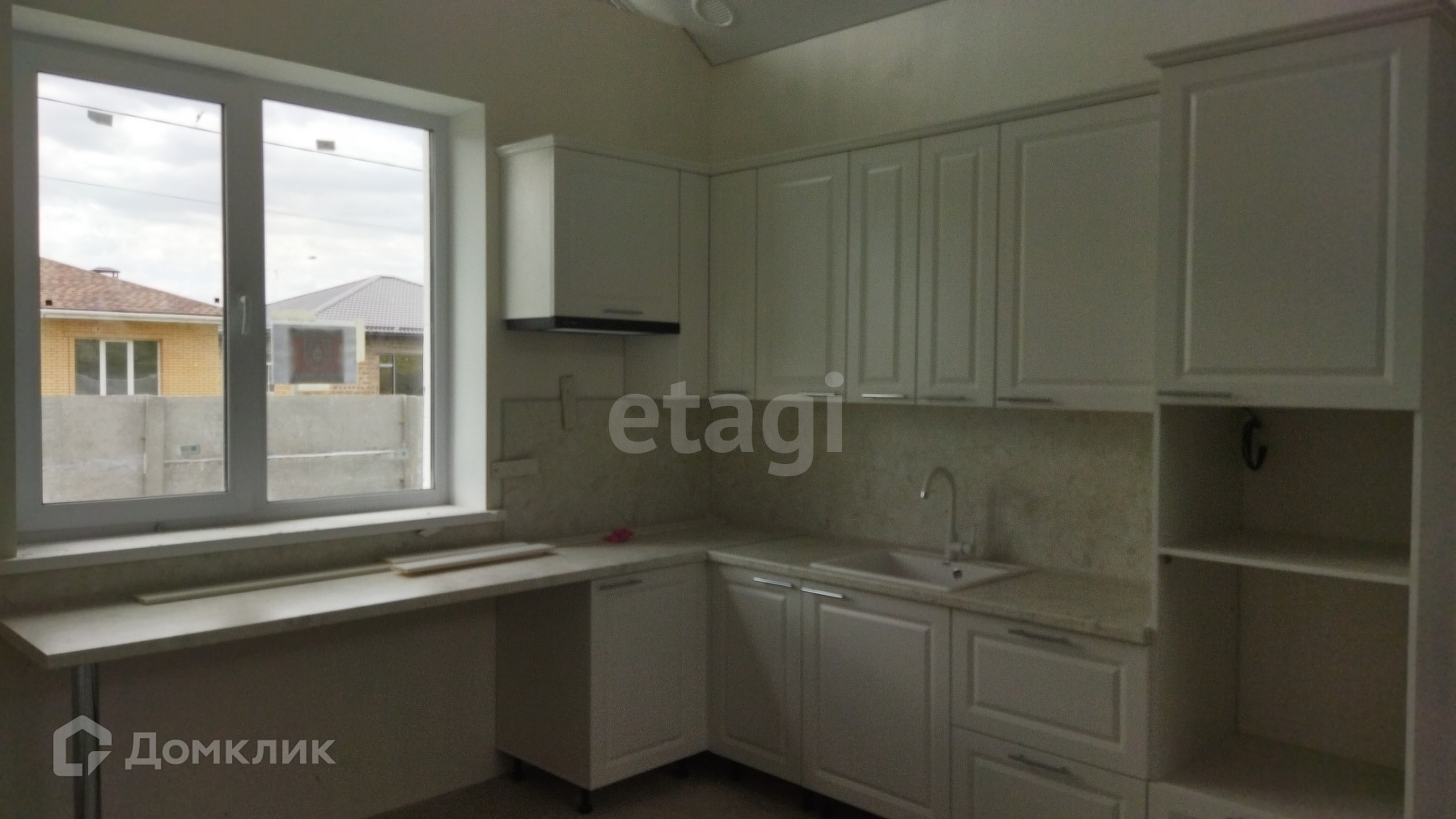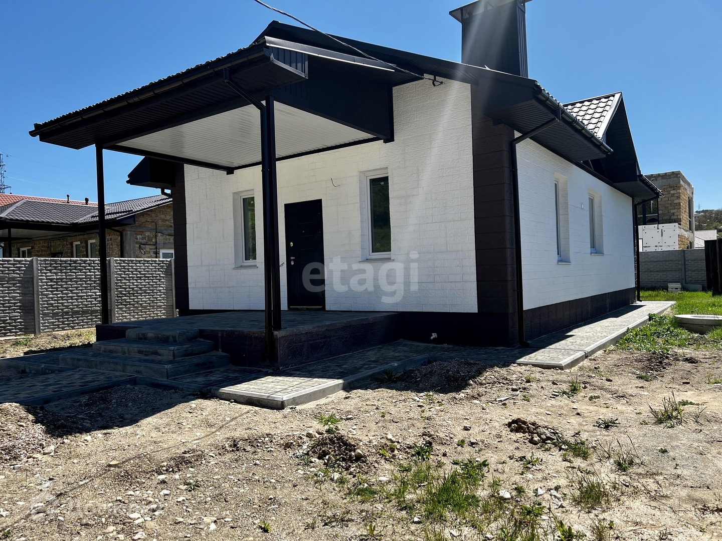 Дом огорожен бетонным забором (еврозабор), во дворе тротуарная плитка. До города 5 км или 5 мин на авто.