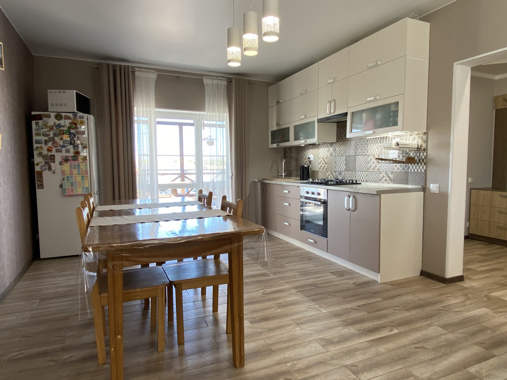 Дом построенный из ракушечника в полный камень. Стены и крыша дополнительно утеплены для обеспечения комфорта и энергоэффективности. Кухня коридор и санузел отапливаются теплым полом, кабинет спальня и гостиная батареями. Отопление в доме основное газовым двухконтурным котлом, резервно установлен трехфазный электро котел и бойлер. Вода централизованная, также установлен бак на 1000л, система повышения давления, и фильтровальная группа. К приятными бонусам относятся: автоматические ворота в гараж и двор, охранная система с датчиками по всем территориям, видеонаблюдение двора, емкости для дождевой воды и система полива, просторные стеллажи в гараже и котельной, веранда 15м2 , небольшое хоз помещение для садового инструмента и дровник, в дом подведено трехфазное электричество и установлены стабилизаторы и защитная автоматика.