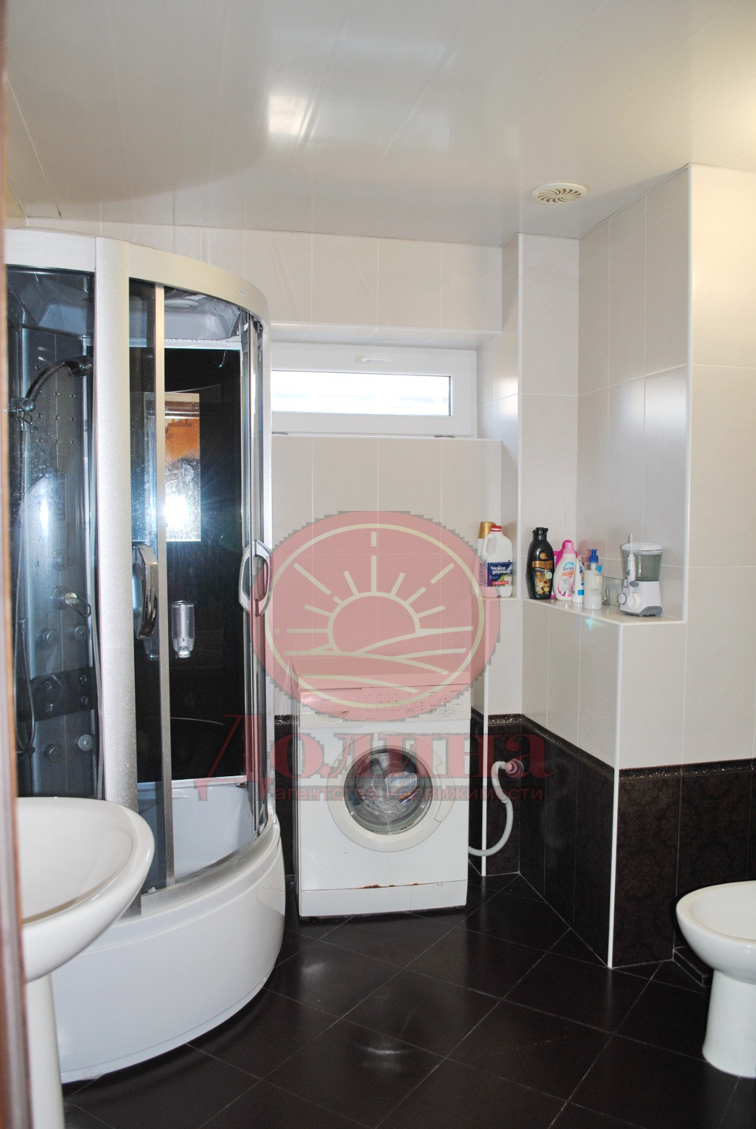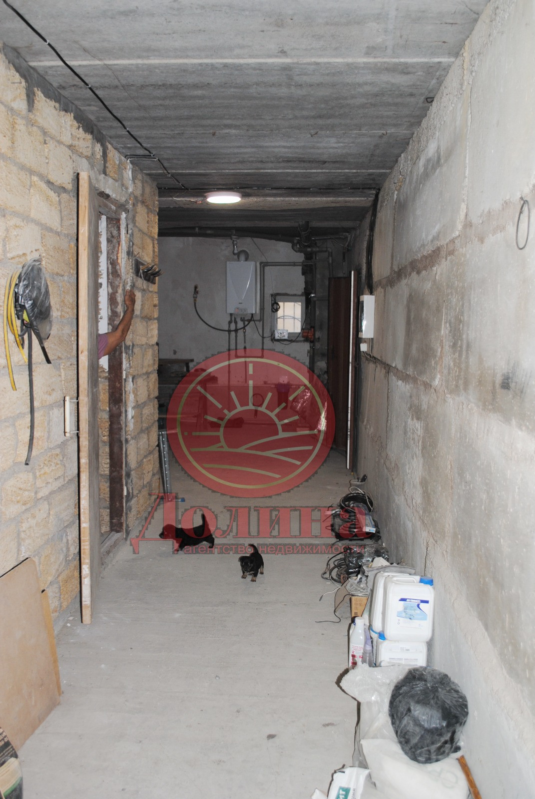 Цокольный этаж включает в себя : открытую прихожую, коридор, 3 больших помещения и гараж на несколько машин с оборудованной системой хранения(металлические полки на всю площадь задней стены и высотой от пола до потолка).Высота потолков в цокольном этаже 2,65м.