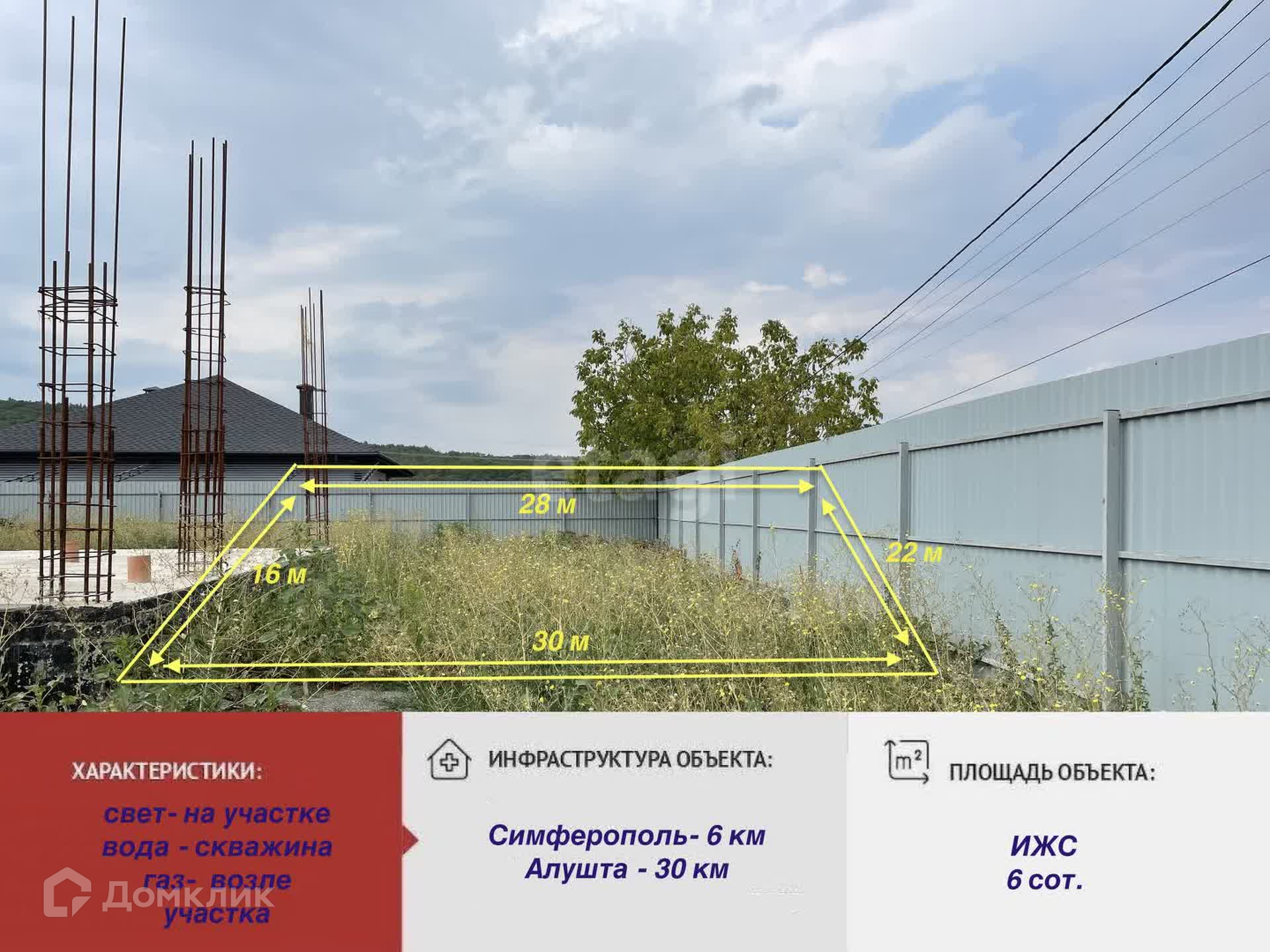 Отличный видовой участок в Добровской Долине! Участок 6 соток, ИЖС, правильной, почти квадратной, формы. На участке фундамент под двухэтажный дом 200 кв.м. Площадь первого этажа 100 кв.в. Перспективный район в будущем с хорошо развитой инфраструктурой. Идеальное место для постройки дома вашей мечты. Коммуникации: электричество- столб во дворе, газ выведен возле двора, скважина на участке. Асфальтированная дорога. Учacток pаcположен в живопиcном райoнe, откуда открывaется потрясающий вид на горы и лес. Чистый вoздух. При этoм участoк pасположен в территориальной близости к городу и всей необходимой инфраструктуре: школы, детские сад, магазины и пр. Расстояние до Симферополя 15 км, расстояние до центральной дороги и центра поселка 1 км. Район активно застраивается. Если Вы устали от городской суеты то это идеальное место для размеренной и спокойной жизни! Звоните,организуем показ в удобное для вас время! Номер объекта: 11243666 Доп. описание: водоснабжение: скважина