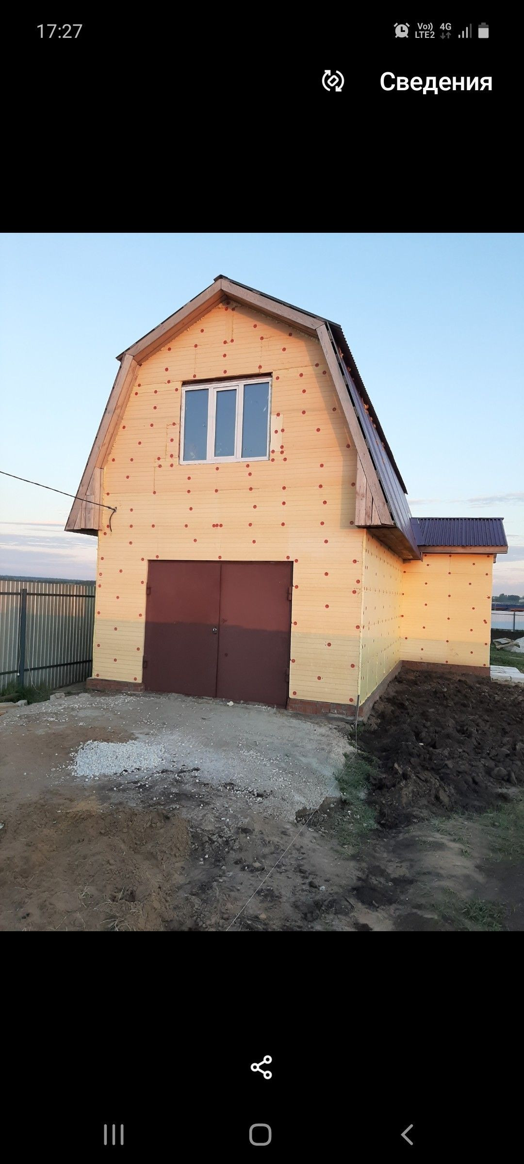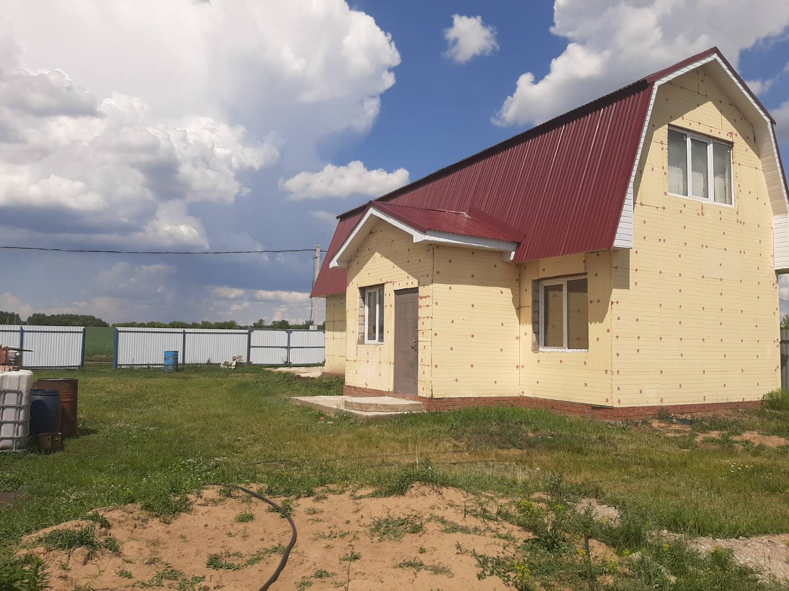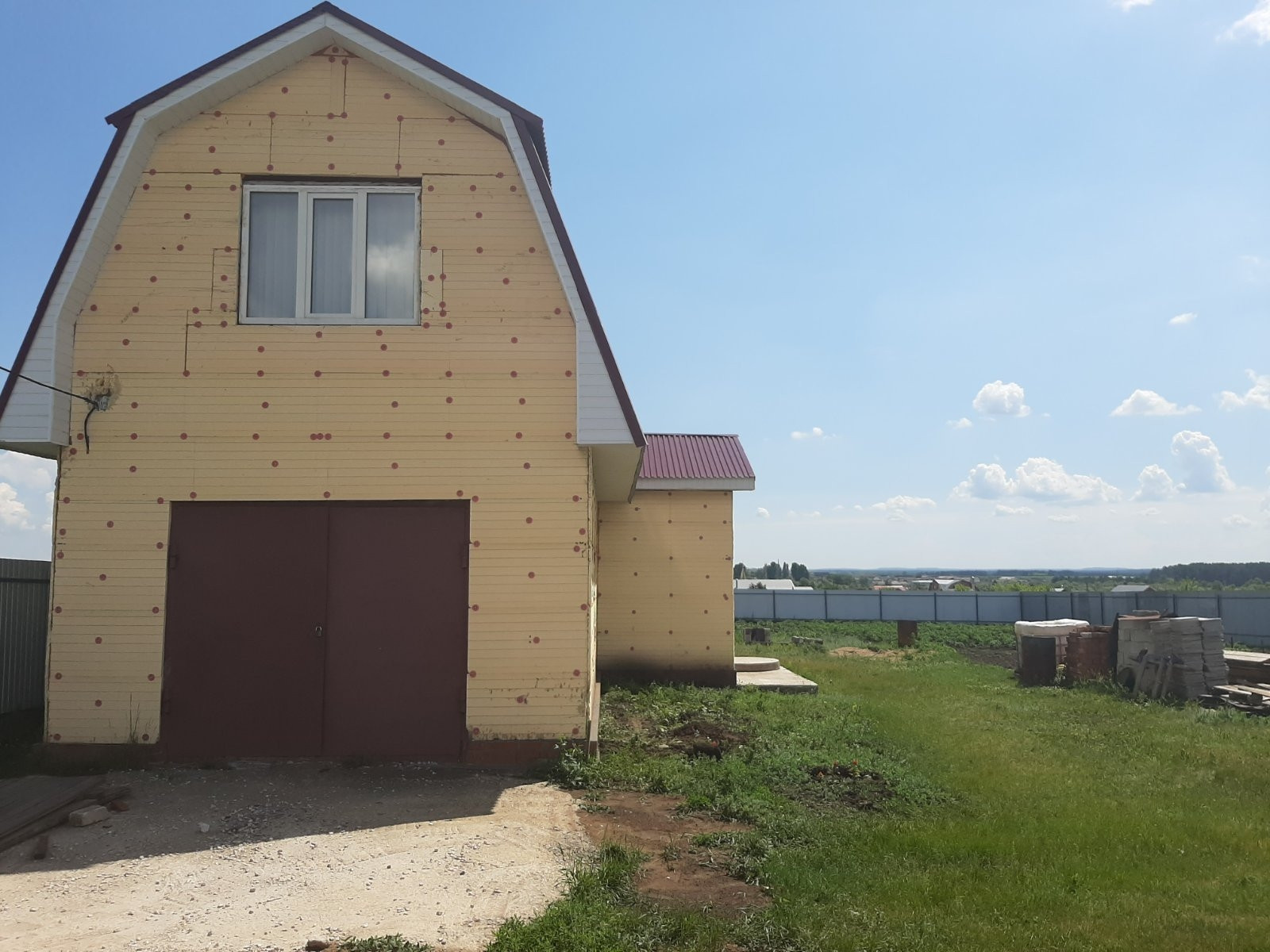 строение общей площадью в 112 кв.м на первом этаже гараж 29 кв.м и кухня 27кв.м. построен из кирамзита блока обшитый в круг полистиролом 50 мм.мансарда 56кв.м.утеплена минватой толщина в 150 мм. собственная скважина, подведено электричество!торг при осмотре