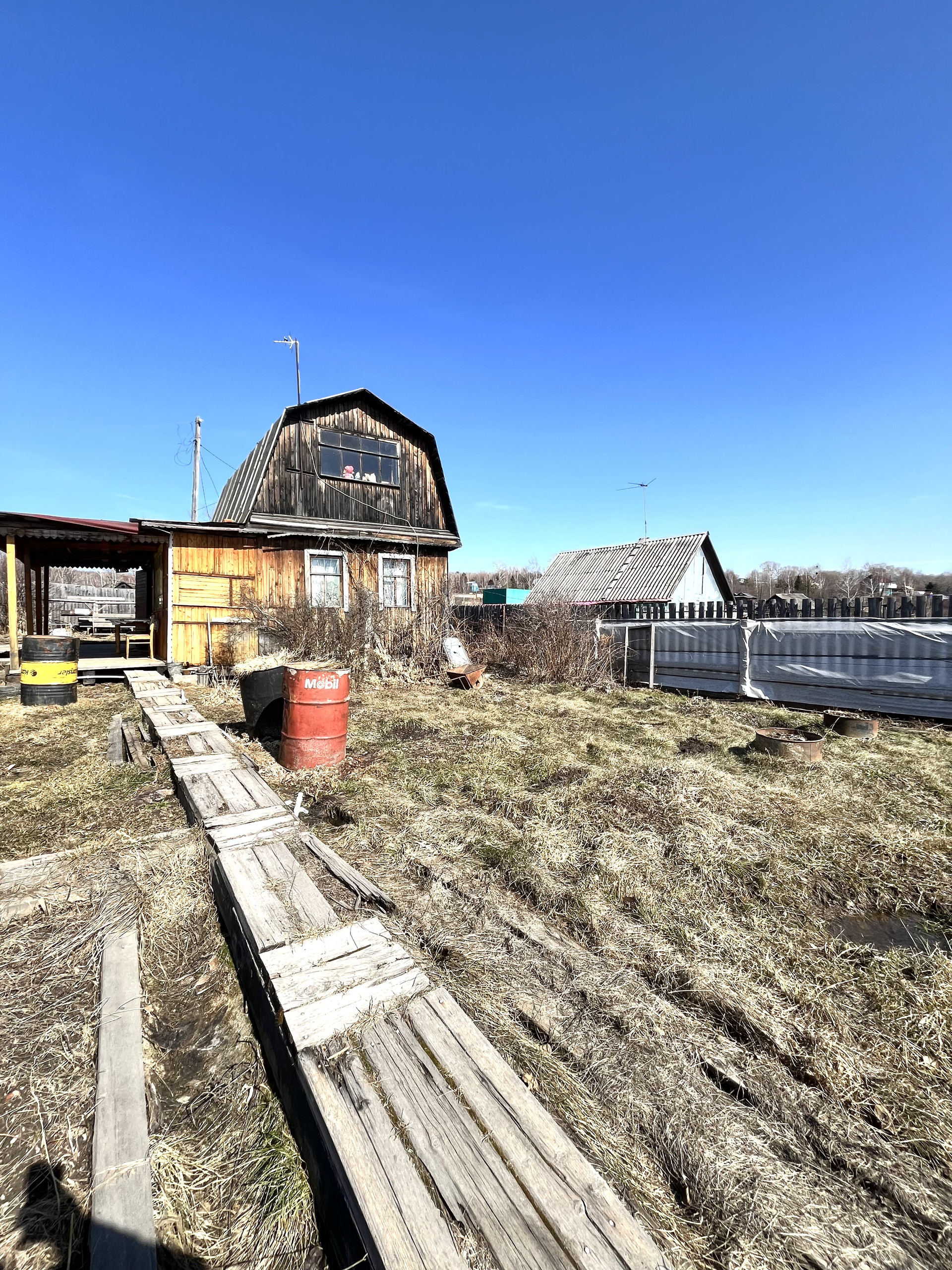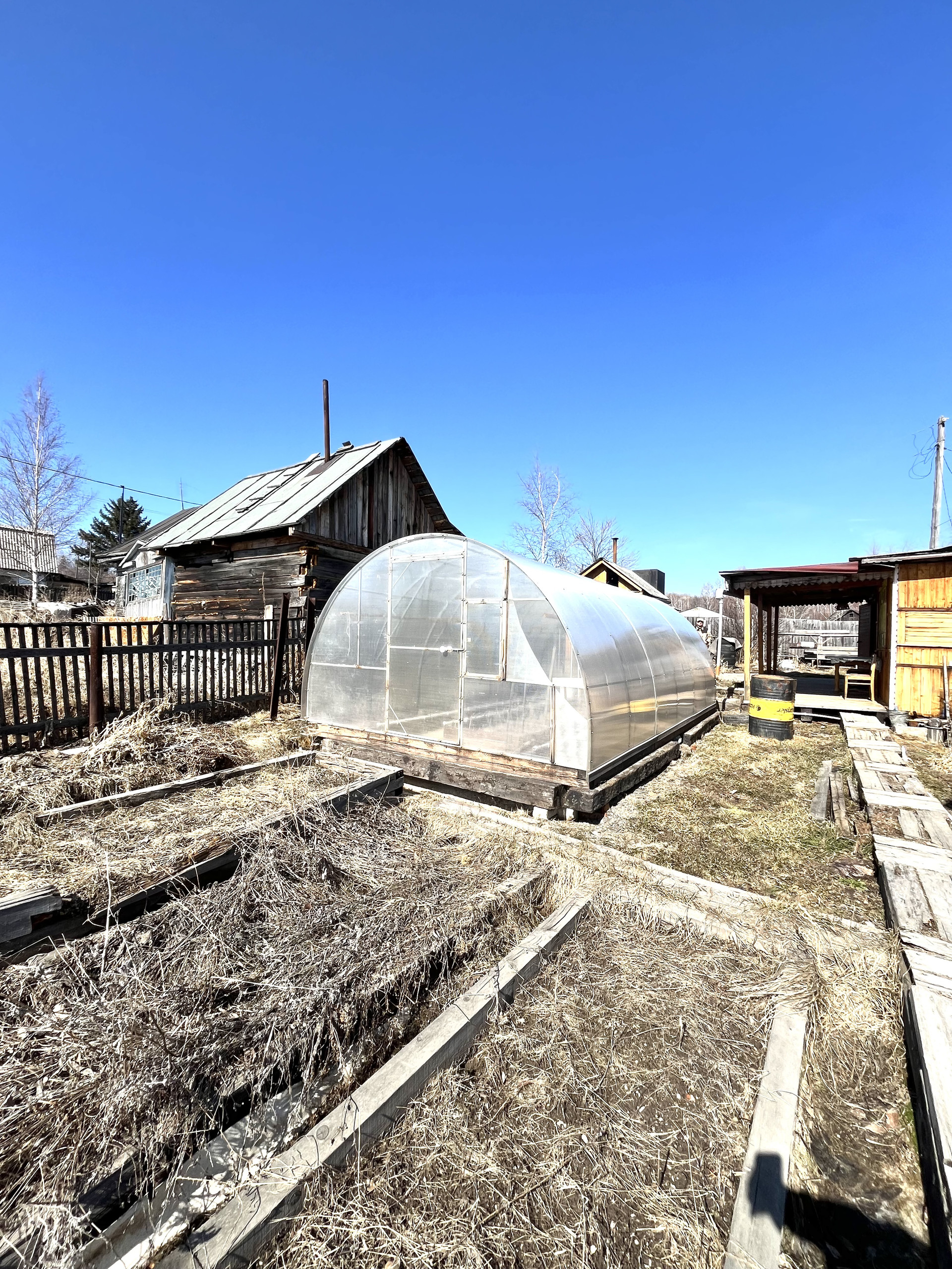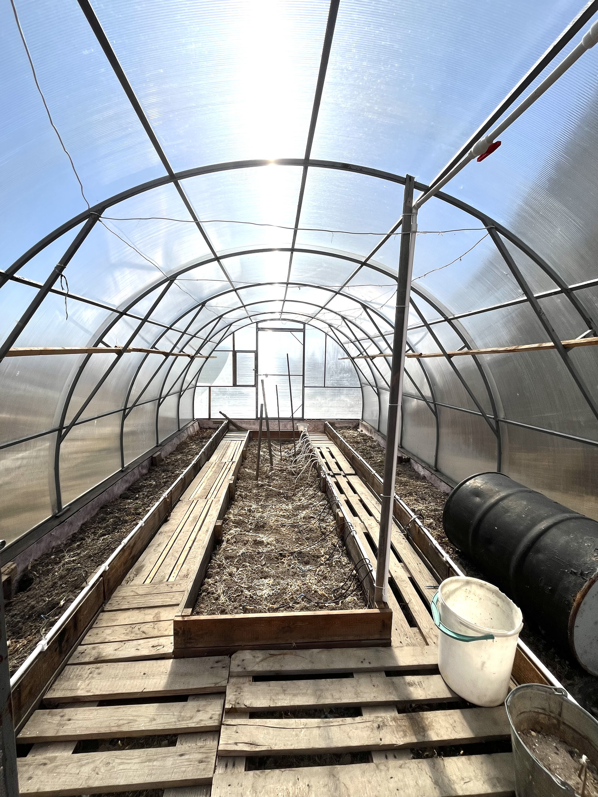 и три резервуара для воды. Установлена теплица площадью 6*3.2