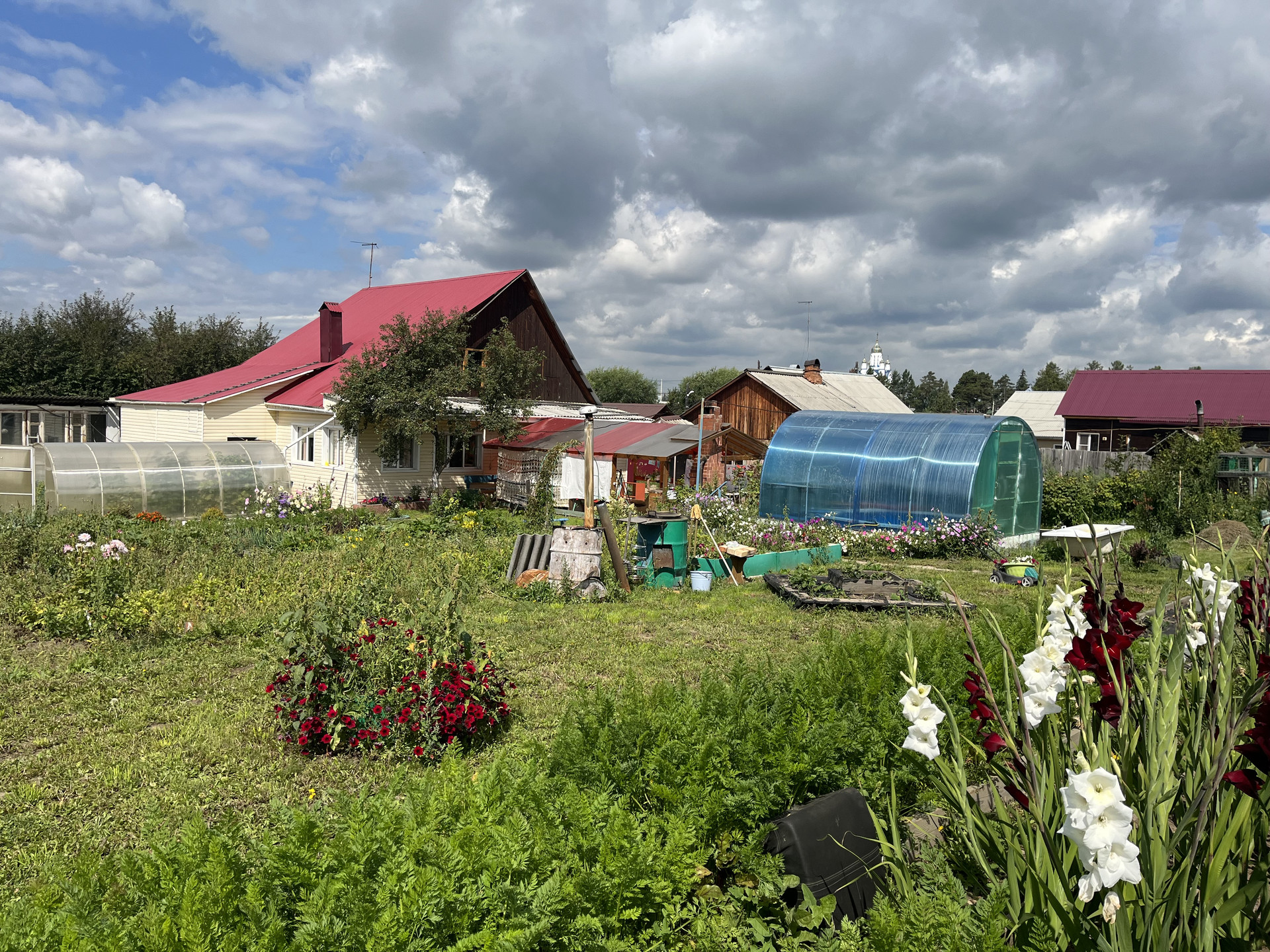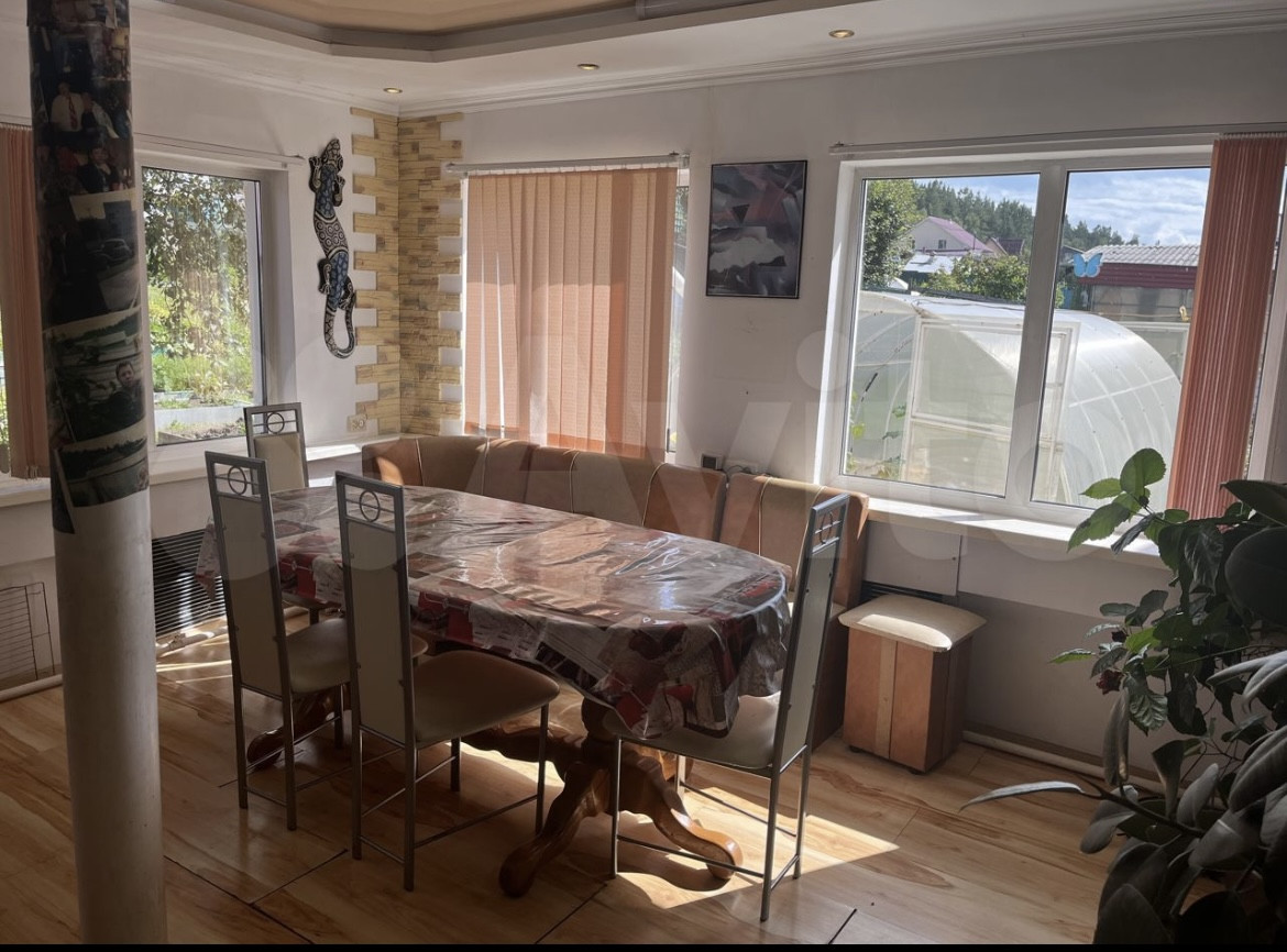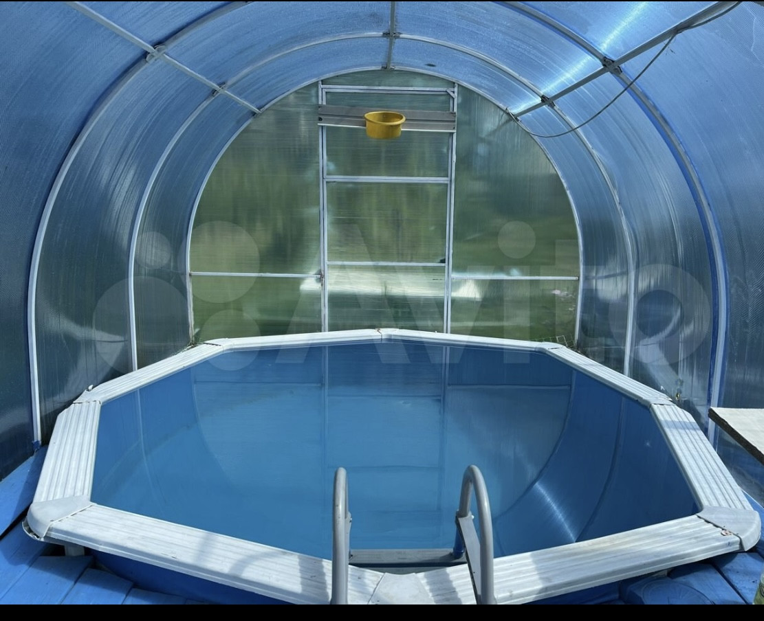 На участке: дом из бруса (4 комнаты, с возможностью расширения на 2 этаж); теплый гараж (подвал); домик для гостей; большая баня (2 этажа); теплый бассейн с подогревом; контейнер 20т; теплицы и хоз. постройки.