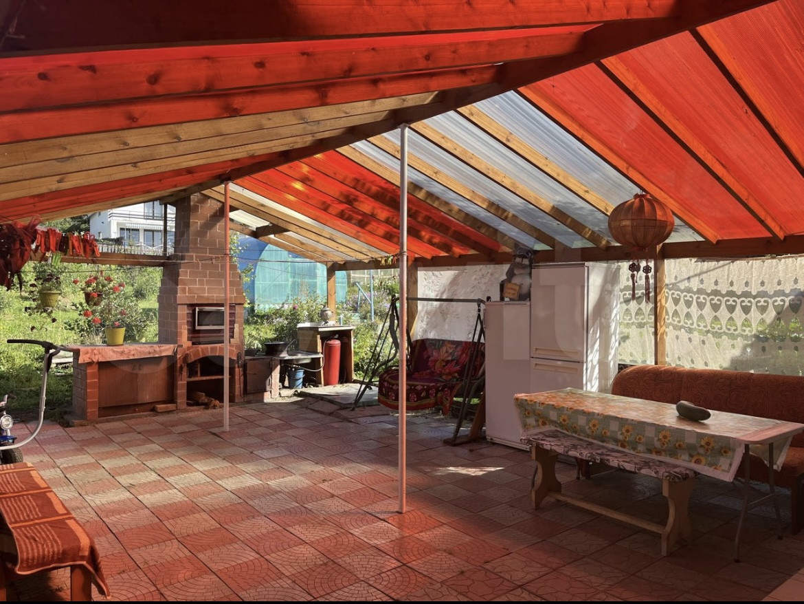 Во дворе крытая веранда с мангалом и казаном. Дом продается со всей мебелью и техникой - заезжай и живи. Участок можно разделить на 2 (8 и 11,5 соток).