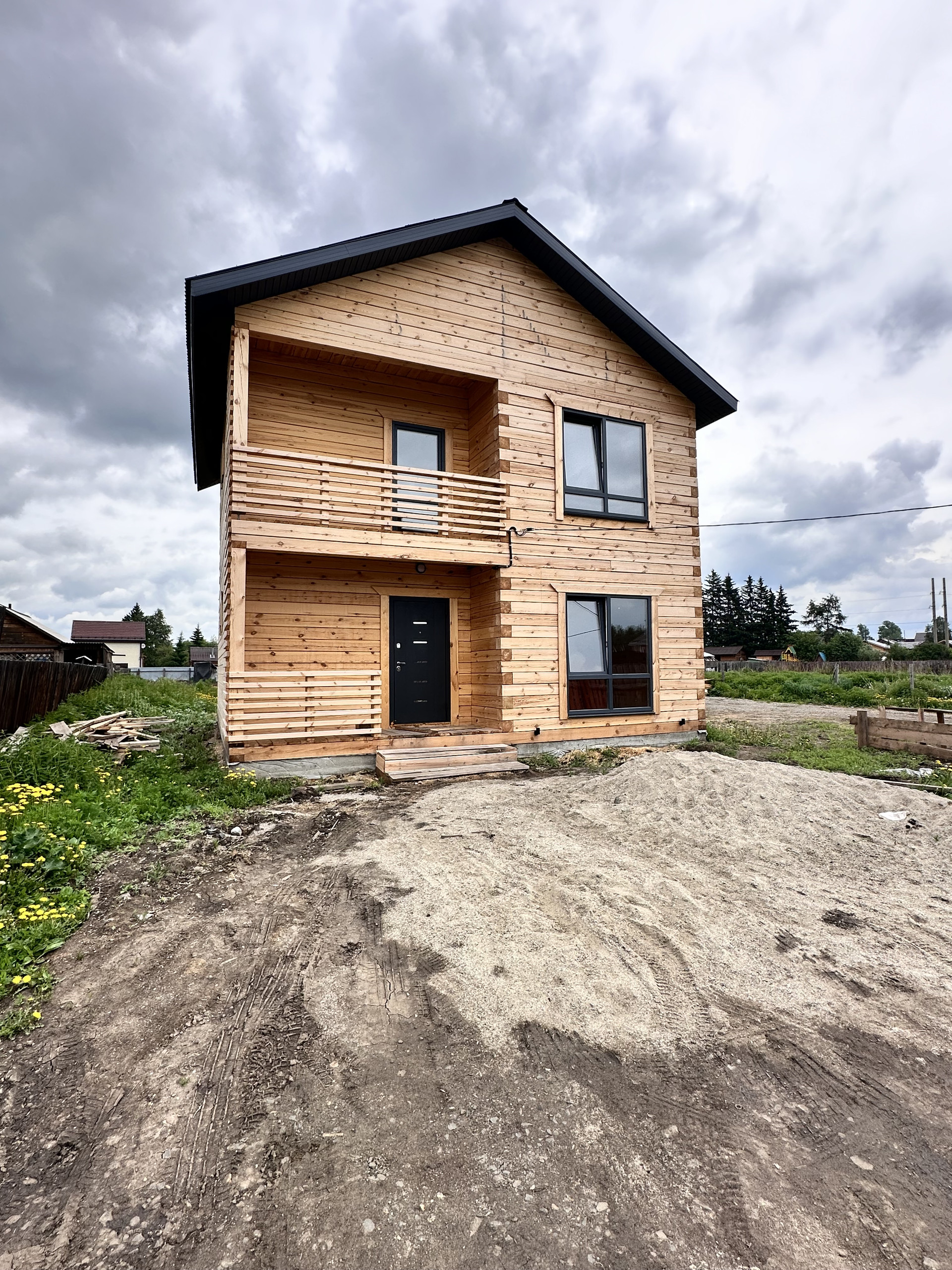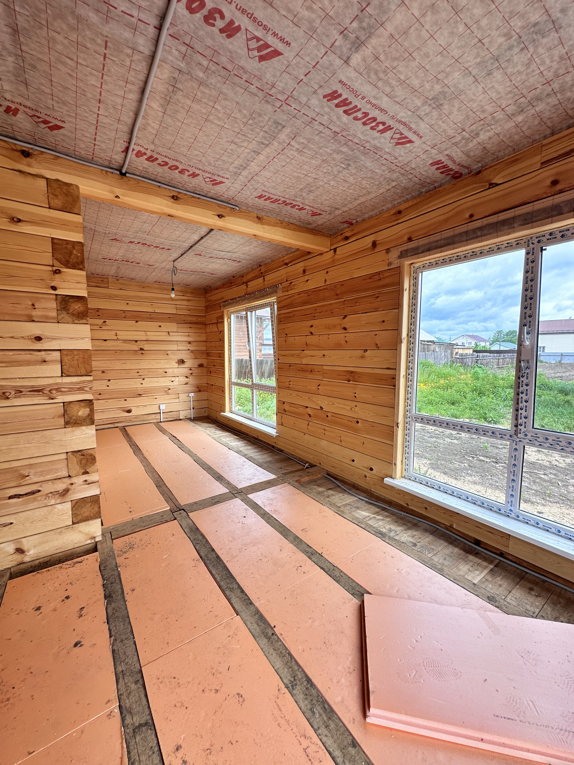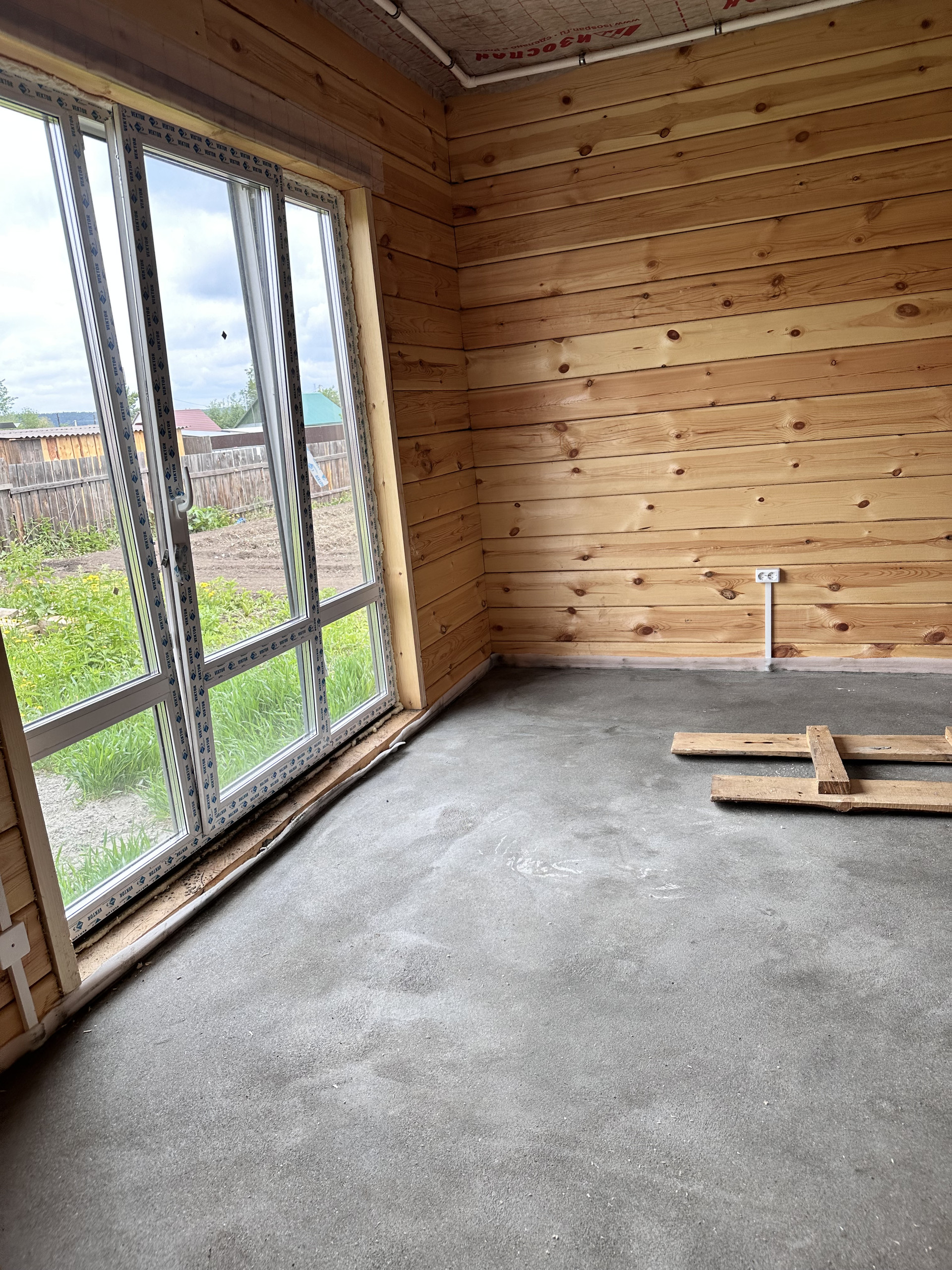 Пол - полусухая стяжка, теплый пол, 2 этаж радиаторы, разводка электрики по дому, панорамные окна в пол, хорошая входная дверь, боллер, лестница