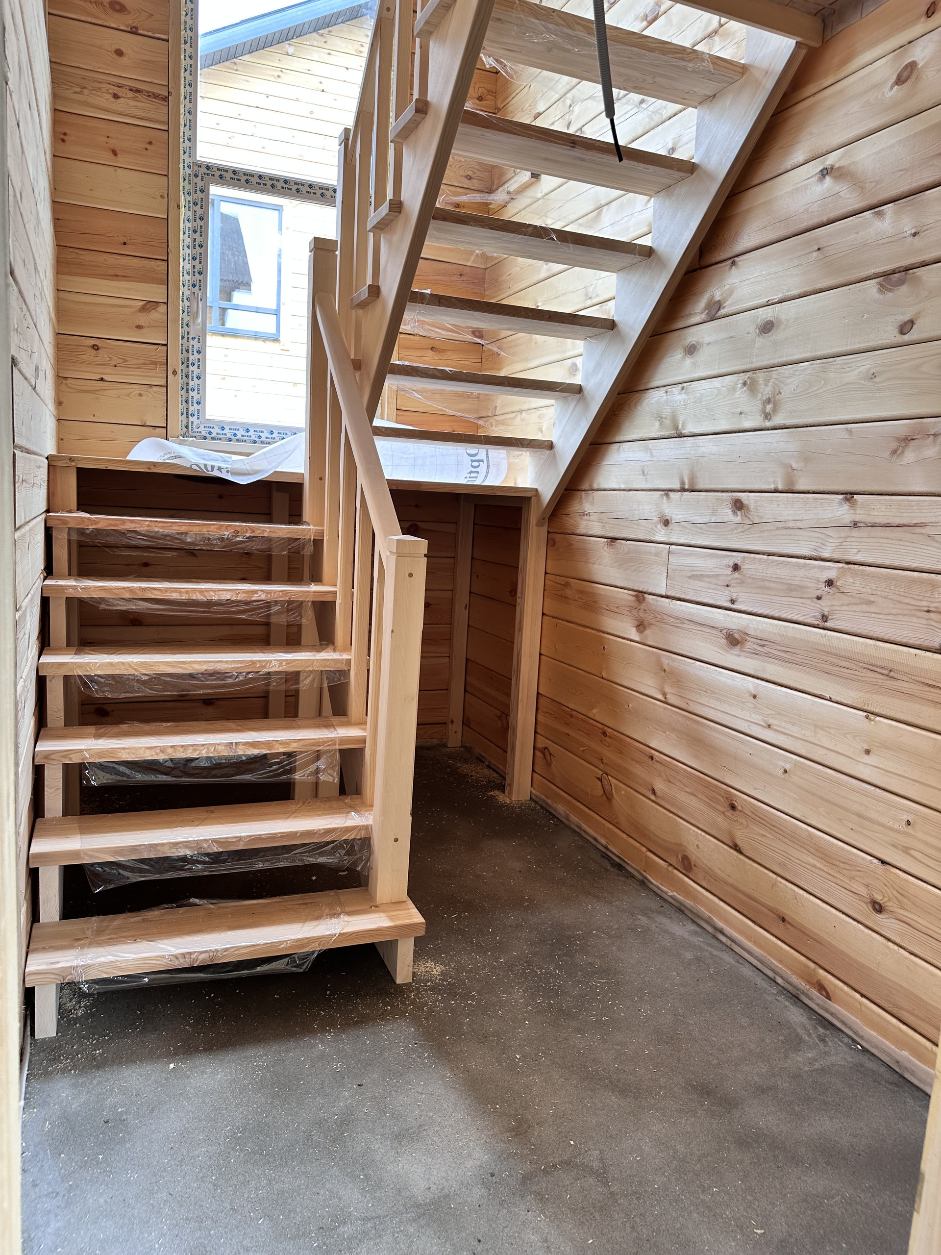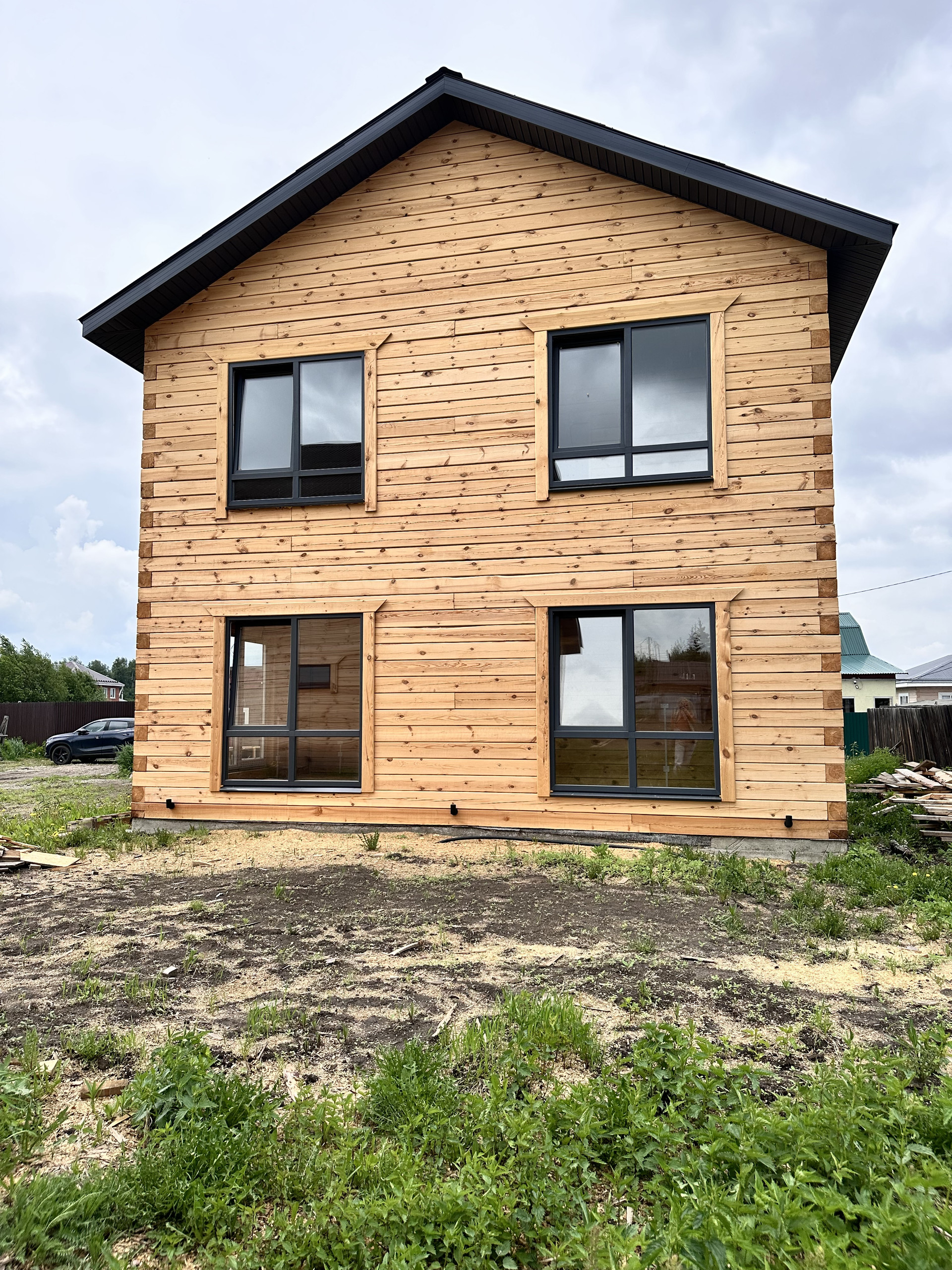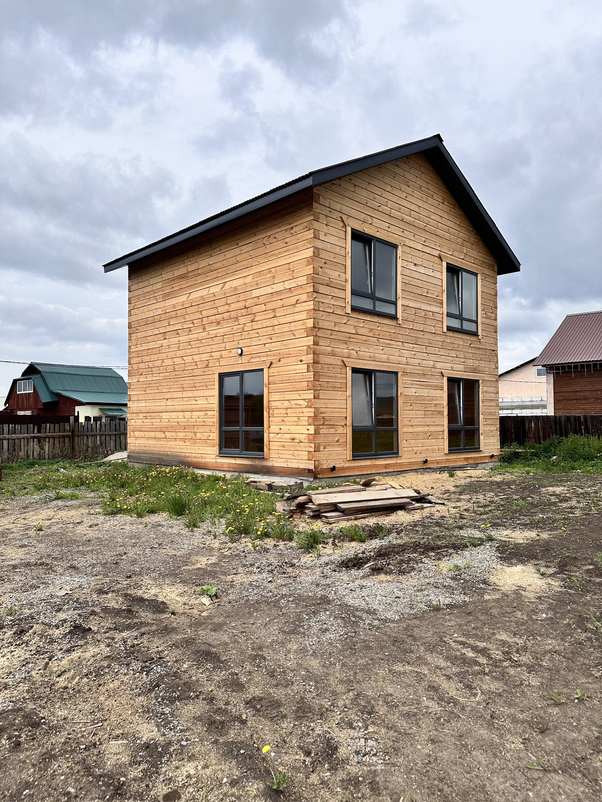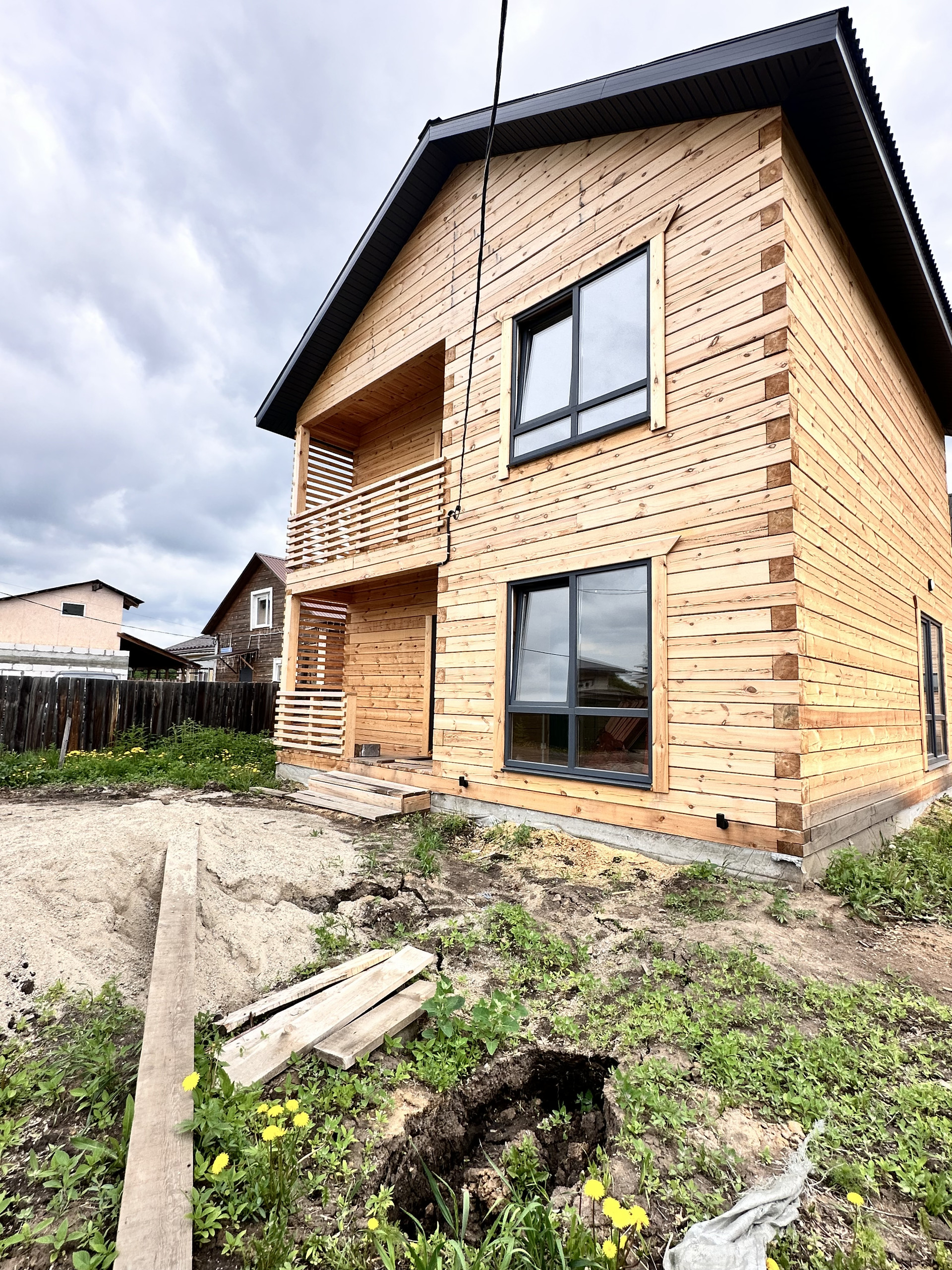 Пол - полусухая стяжка, теплый пол, 2 этаж радиаторы, разводка электрики по дому, панорамные окна в пол, хорошая входная дверь, боллер, лестница