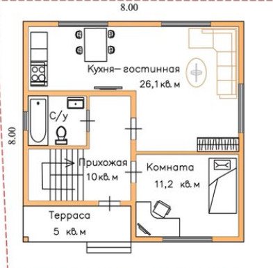 - кухня гостиная на 1 этаже + 1 комната, с/у, место для хранения вещей