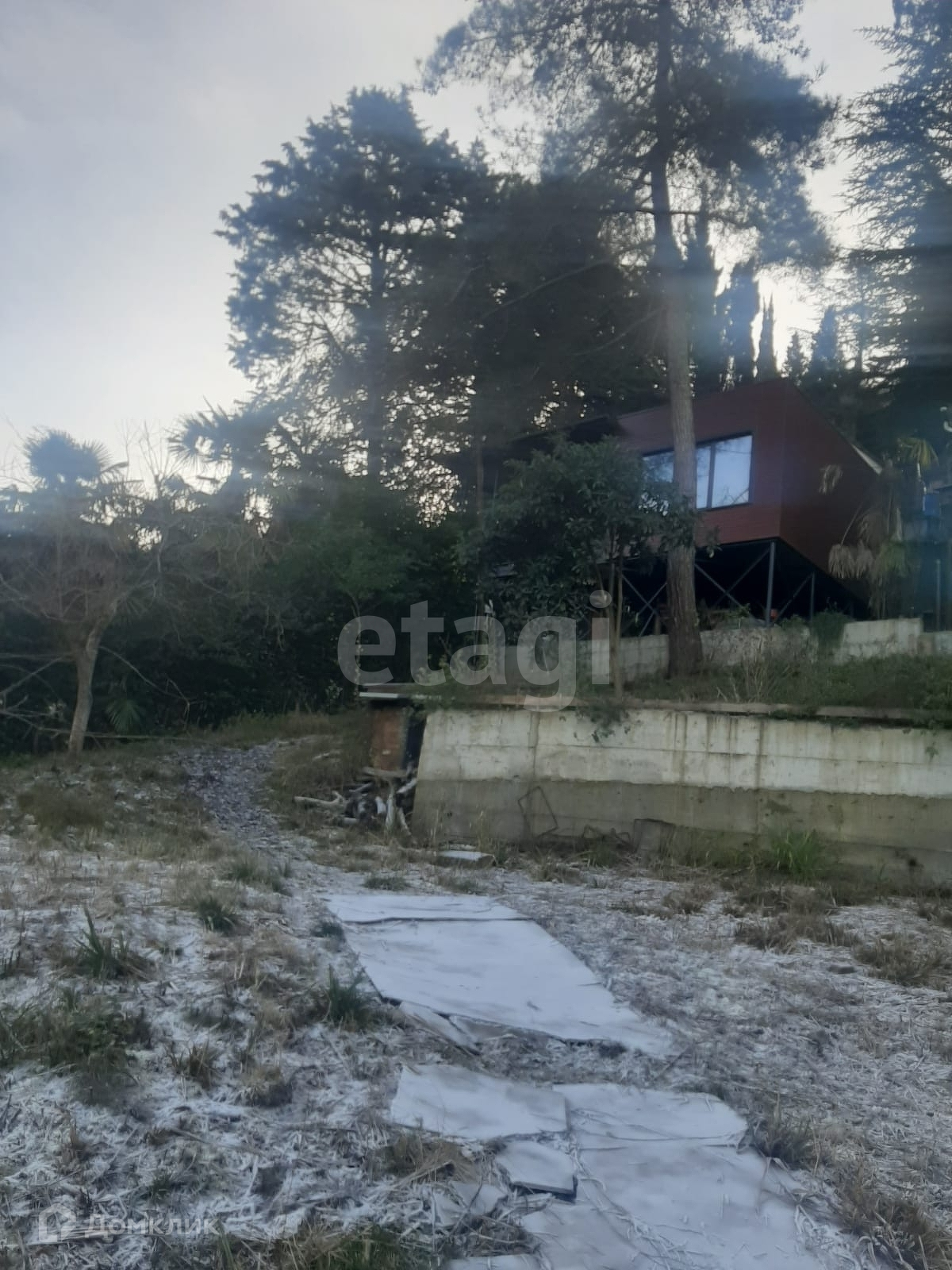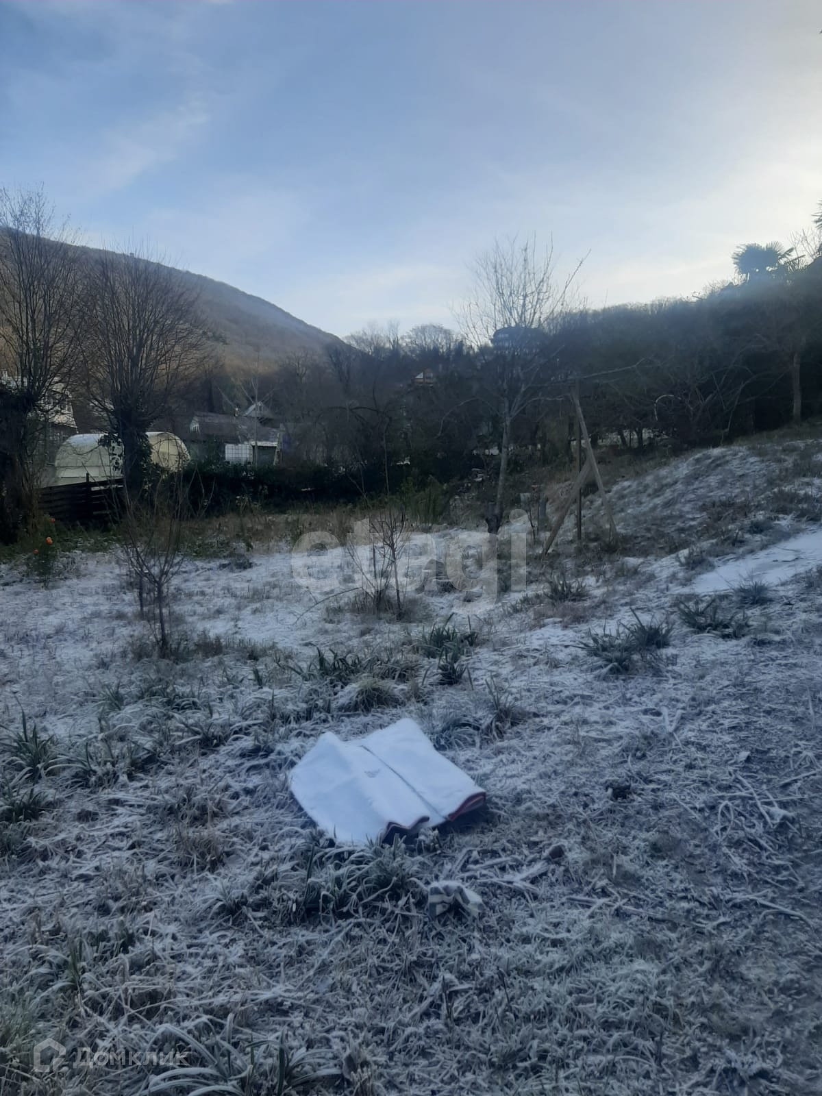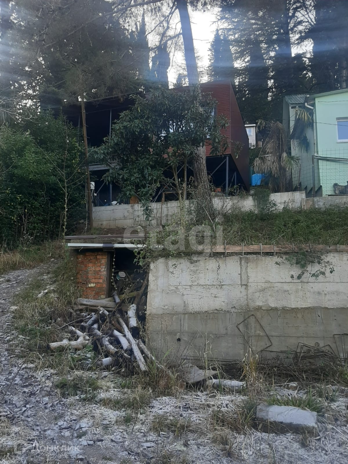 Участок с уклоном, дом стоит наверху участка, шикарный вид на горы. Дом расположен в глубине СТ, защищен от пыли дороги - расположен в 400 м от нее, спуск из бетонки.