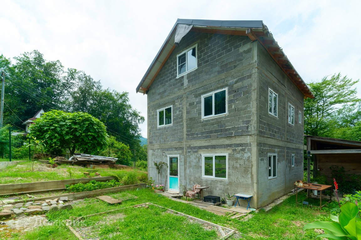Дом построен с учетом норм сейсмоустойчивости. Монолитный каркас, наполнение стен — пеноблоки. Общая площадь 176.3 кв/м. В доме 3 этажа. Функциональная планировка: 1-й этаж — просторная кухня гостиная с выделенной спальней, с\у; 2 этаж - 3 спальни, хоз блок; 3-й мансардный - свободной планировки. В доме выполнен частично чистовой ремонт. Электричество подключено - мощность 15кВт, водоснабжение – (чистая родниковая вода) поступает в дом через накопительный бак. Газоснабжение — в проекте подключения.